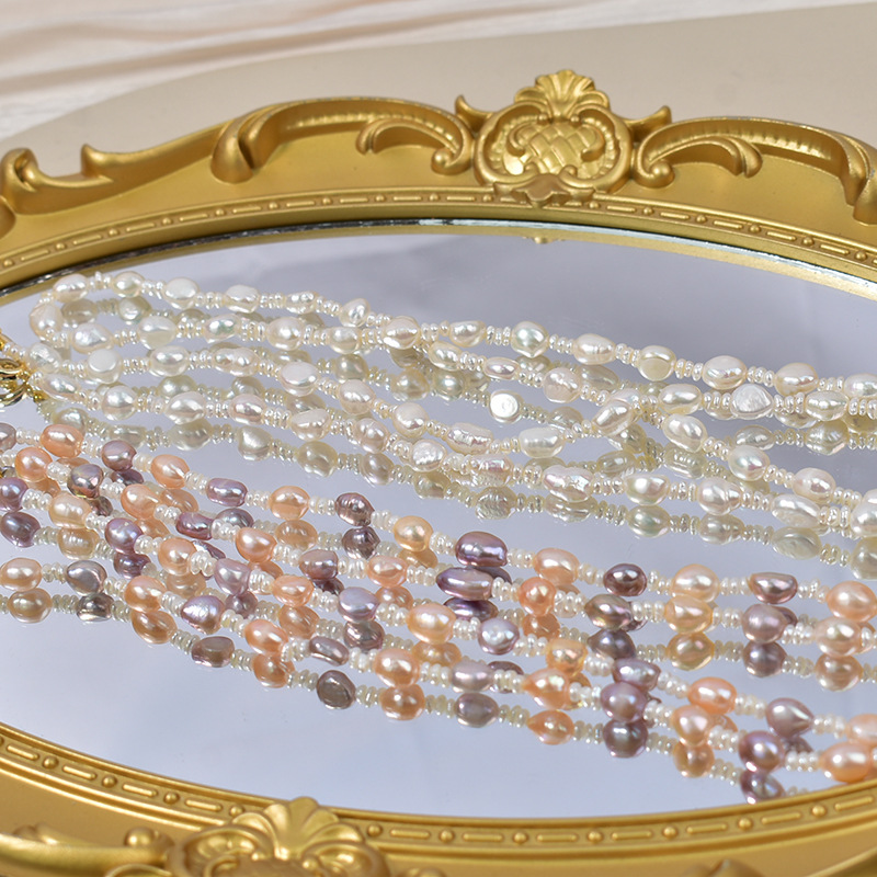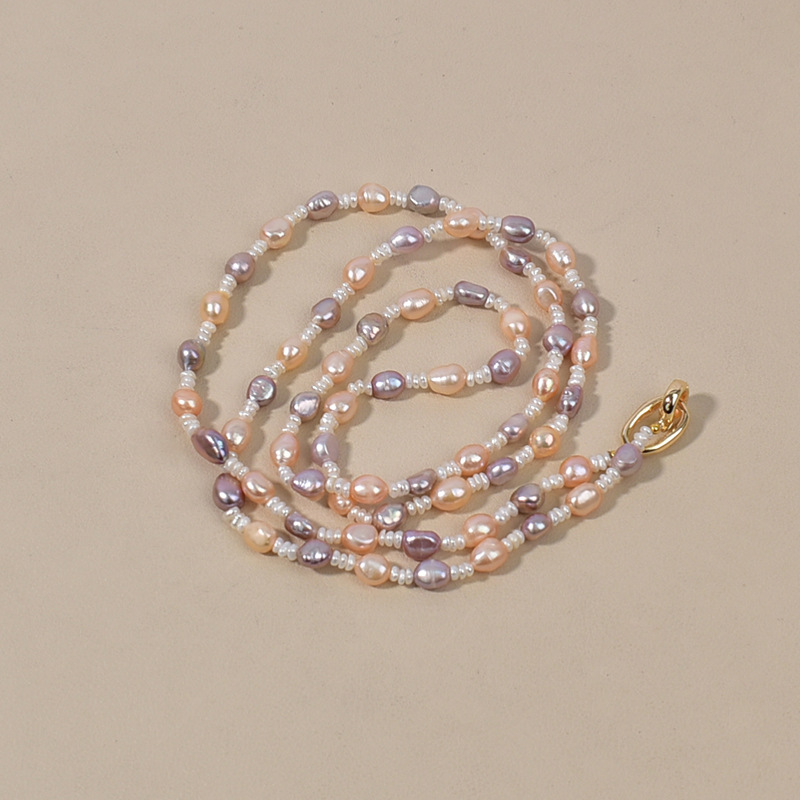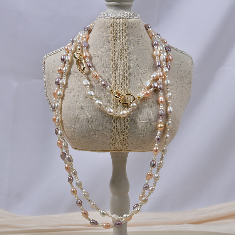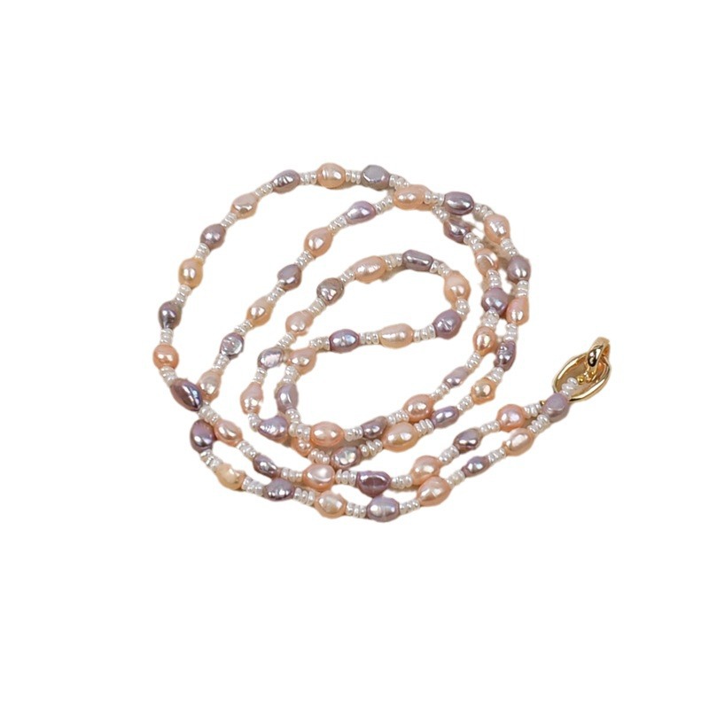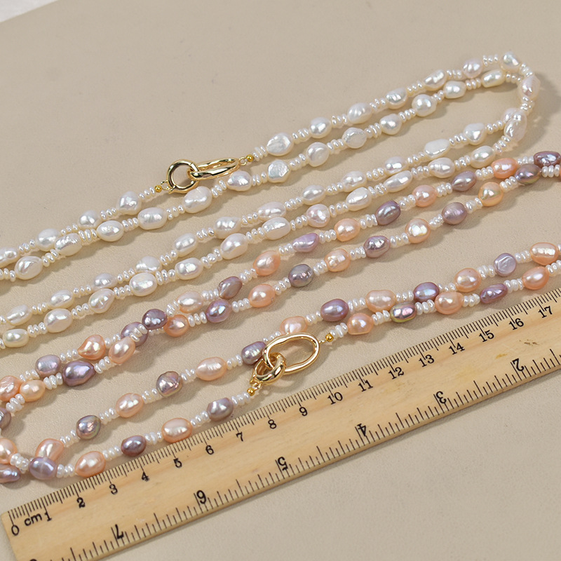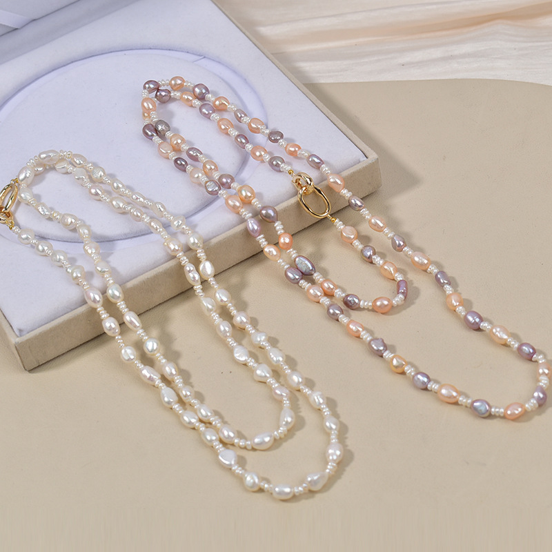 Collier en perles d'eau douce Pull, perle d'eau douce cultivée, avec laiton, Baroque, Placage, bijoux de mode, plus de couleurs à choisir, protéger l'environnement, sans nickel, plomb et cadmium, 7-8mm, Vendu par brin