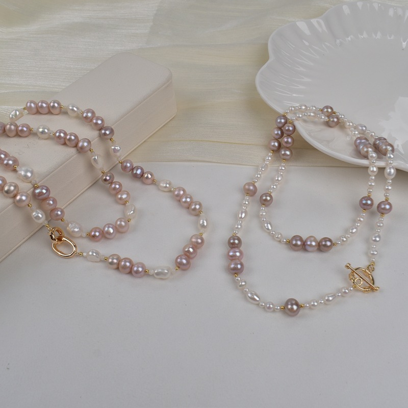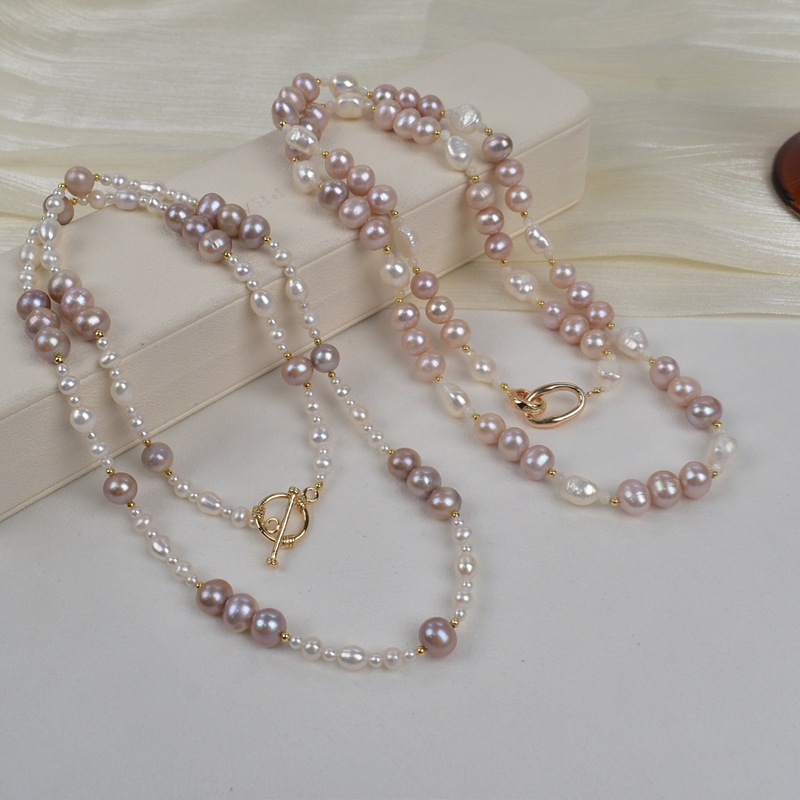 Collier en perles d'eau douce Pull, perle d'eau douce cultivée, Légèrement rond, bijoux de mode, plus de couleurs à choisir, 5-10mm, Vendu par 74 cm brin
