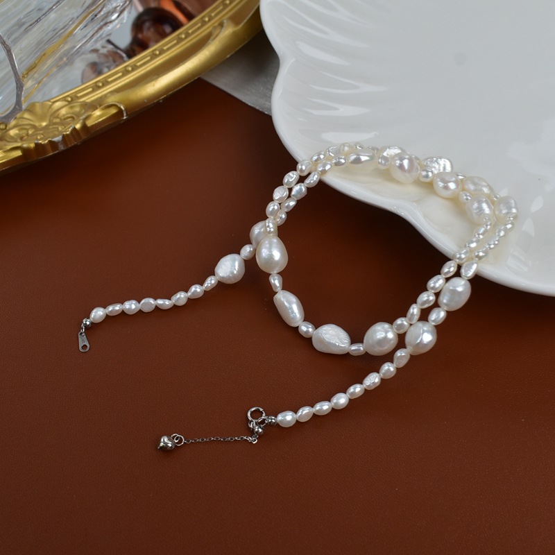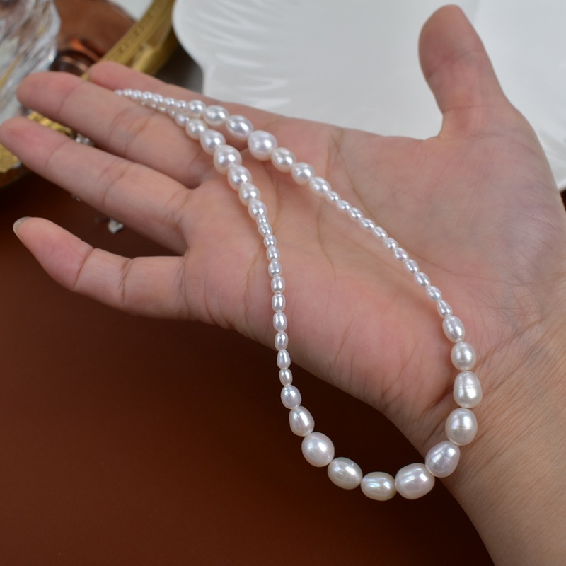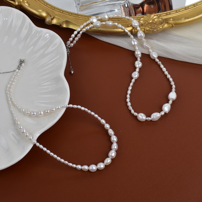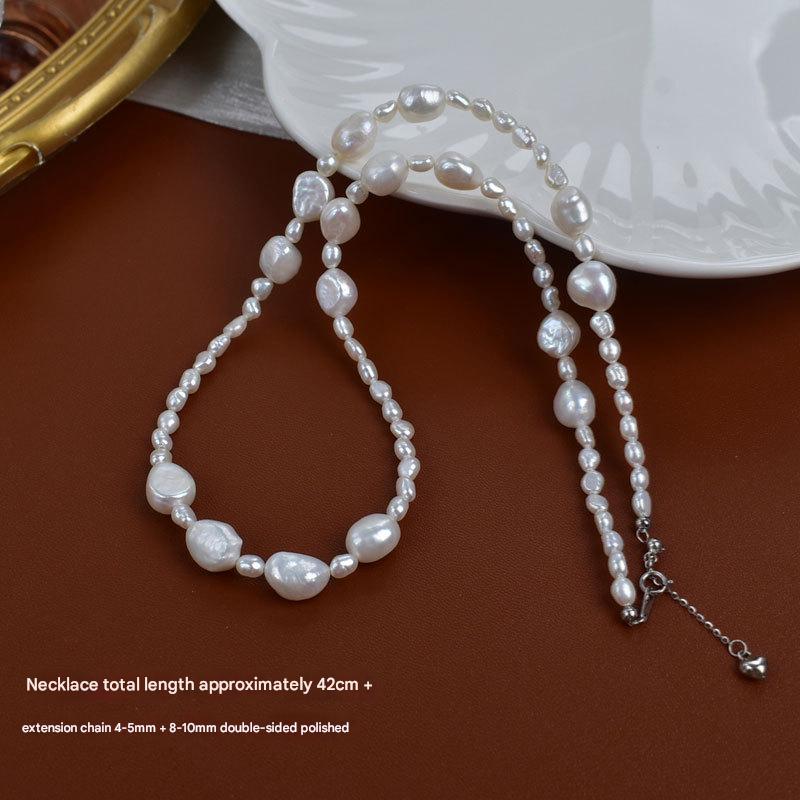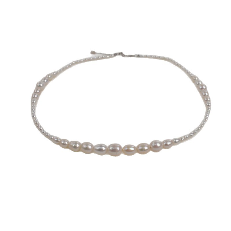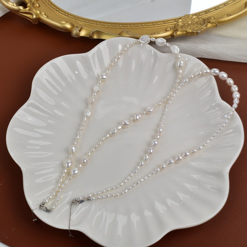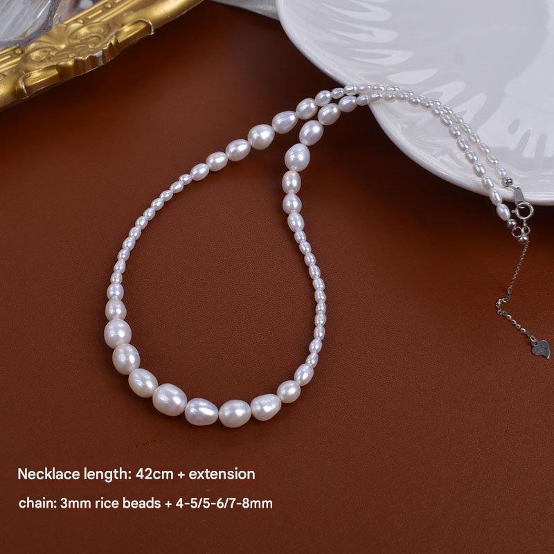 Collier en perles d'eau douce Pull, argent sterling 925, avec perle d'eau douce cultivée, Baroque, bijoux de mode, blanc, 4-5mm, Vendu par PC