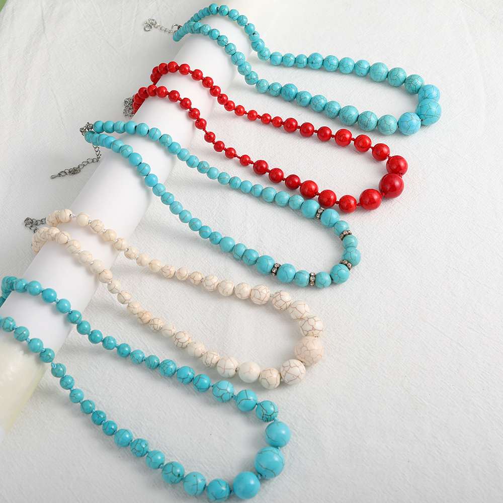 Collier turquoise de mode, Rond, normes différentes pour le choix & pour femme, plus de couleurs à choisir, Longueur 56 cm, Vendu par PC