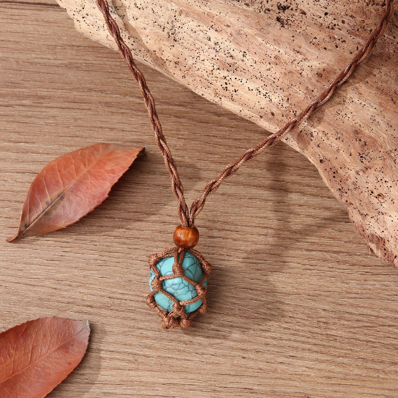 Collier turquoise de mode, corde de cire, avec turquoise & bois, bijoux de mode & unisexe, Vendu par PC