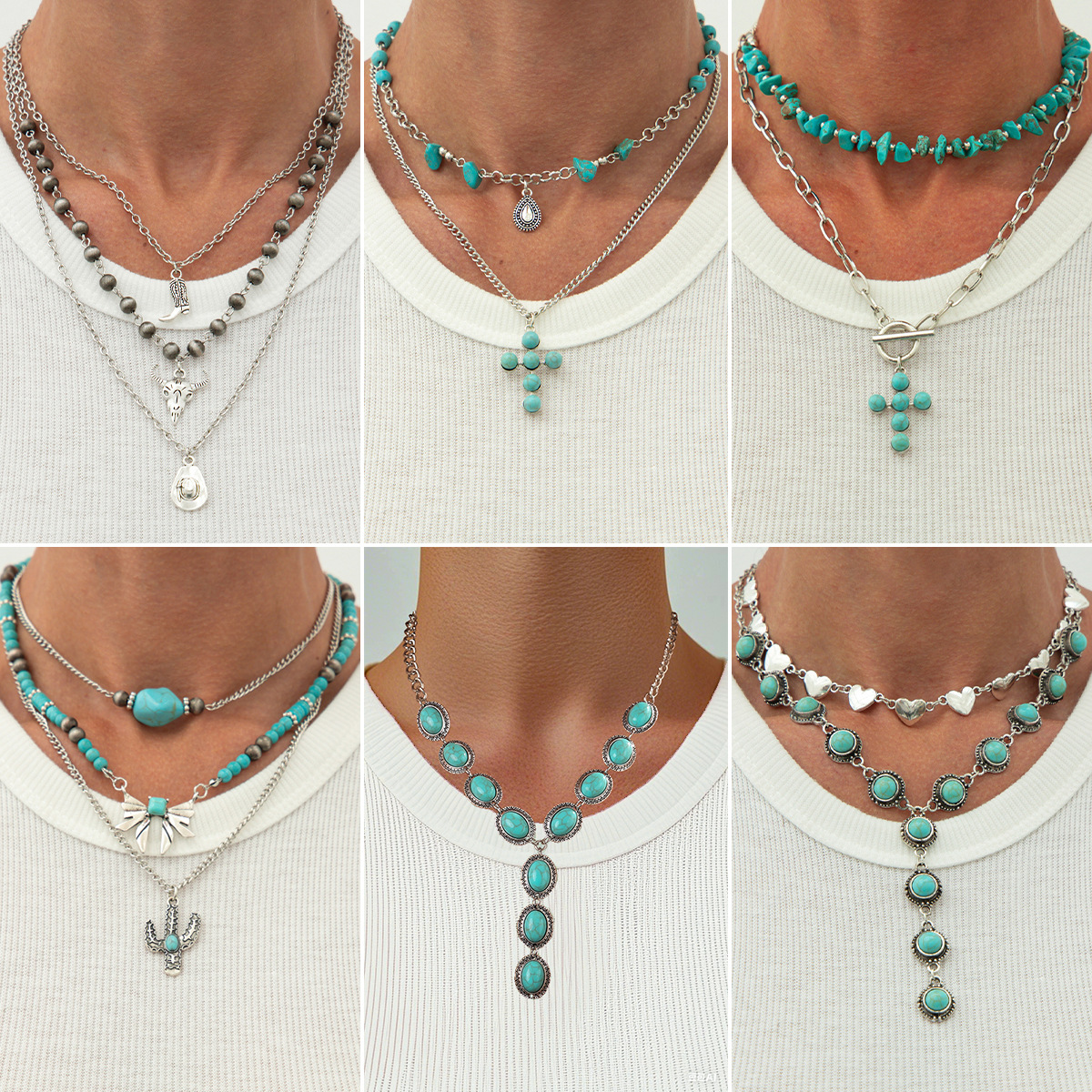 Collier turquoise de mode, alliage de zinc, avec chaîne de fer & turquoise, Placage de couleur d'or, bijoux de mode, plus de couleurs à choisir, Vendu par PC