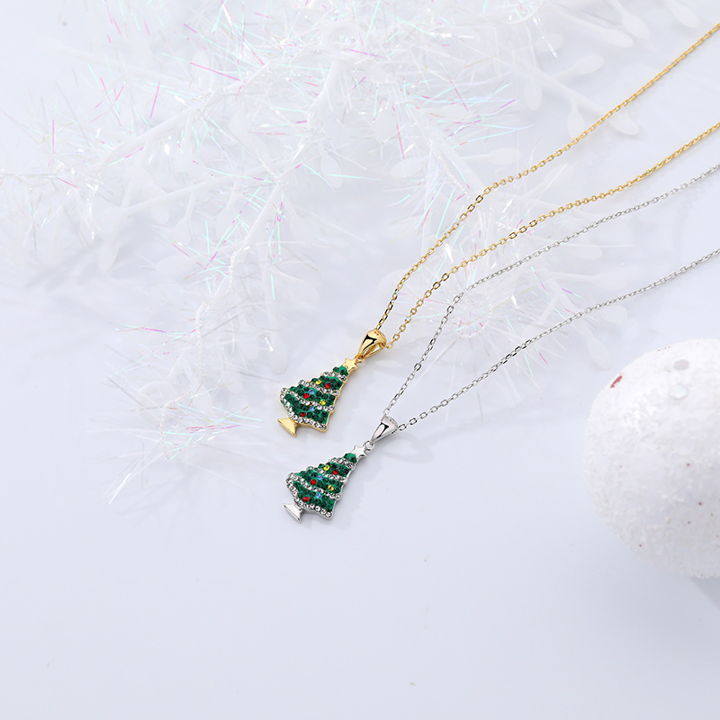 Colliers de Noël, laiton, arbre de noël, Placage, bijoux de mode & pavé de micro zircon, plus de couleurs à choisir, 12x20.50mm, Longueur Environ 40 cm, Vendu par paire