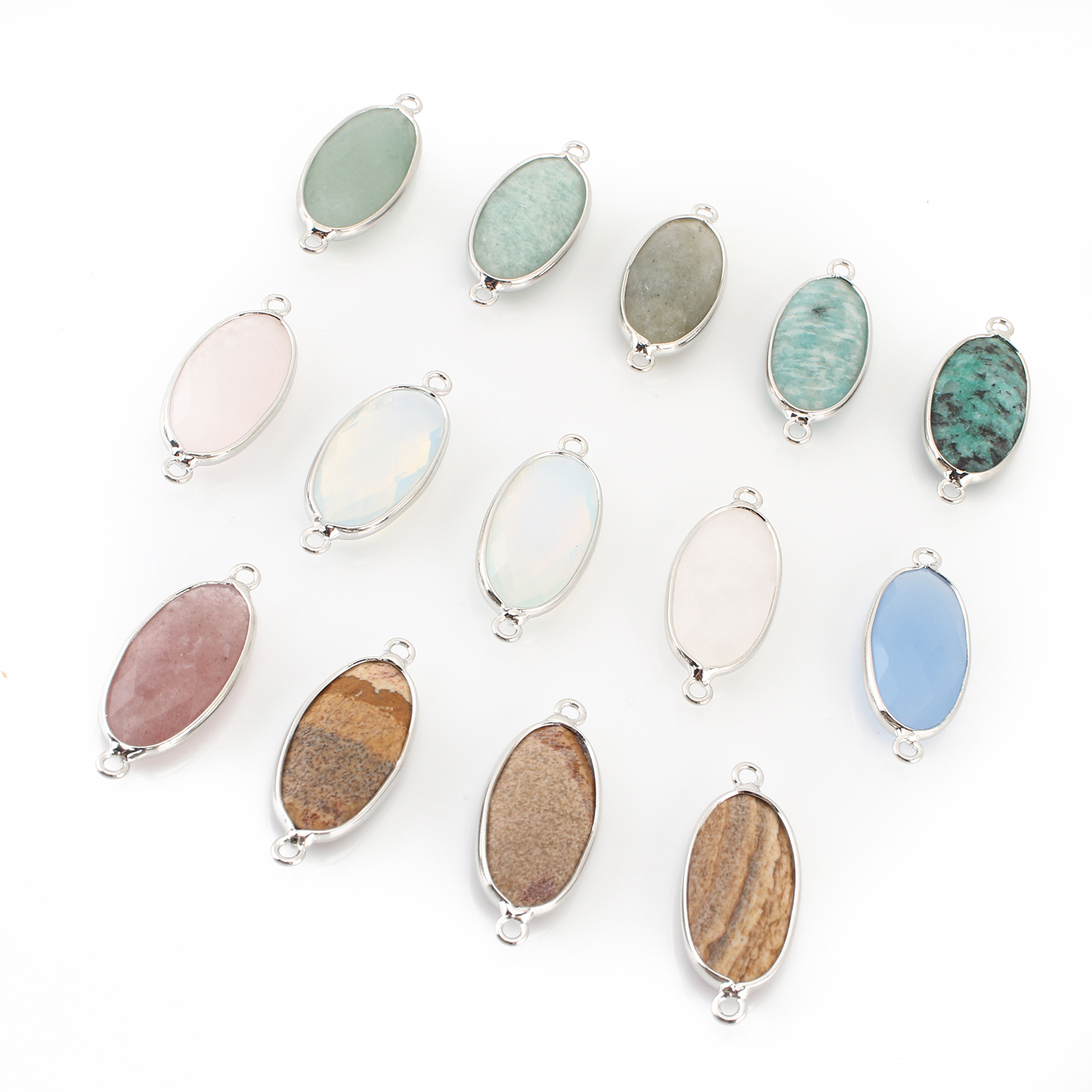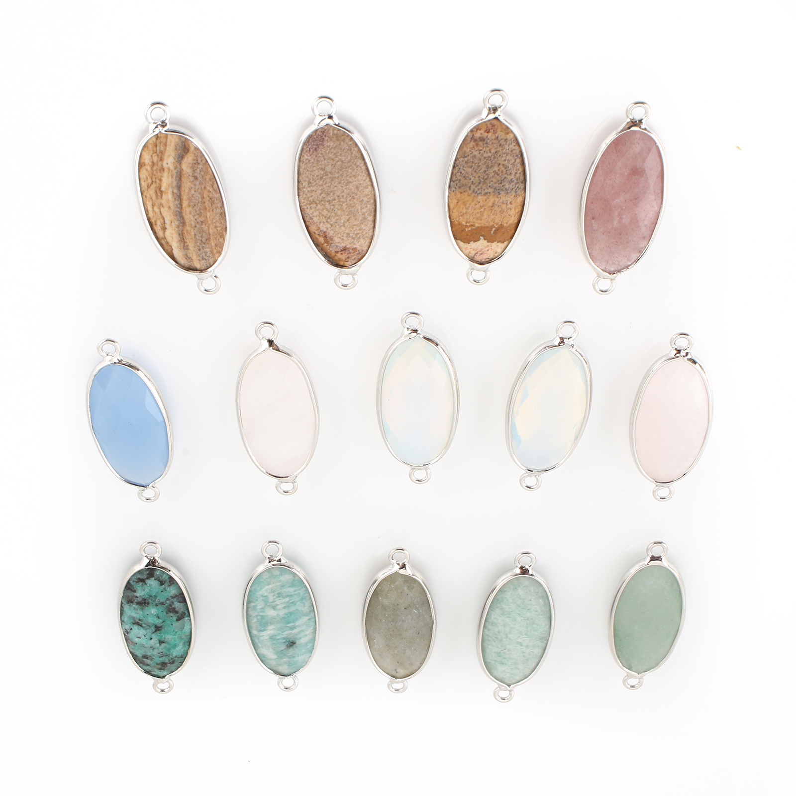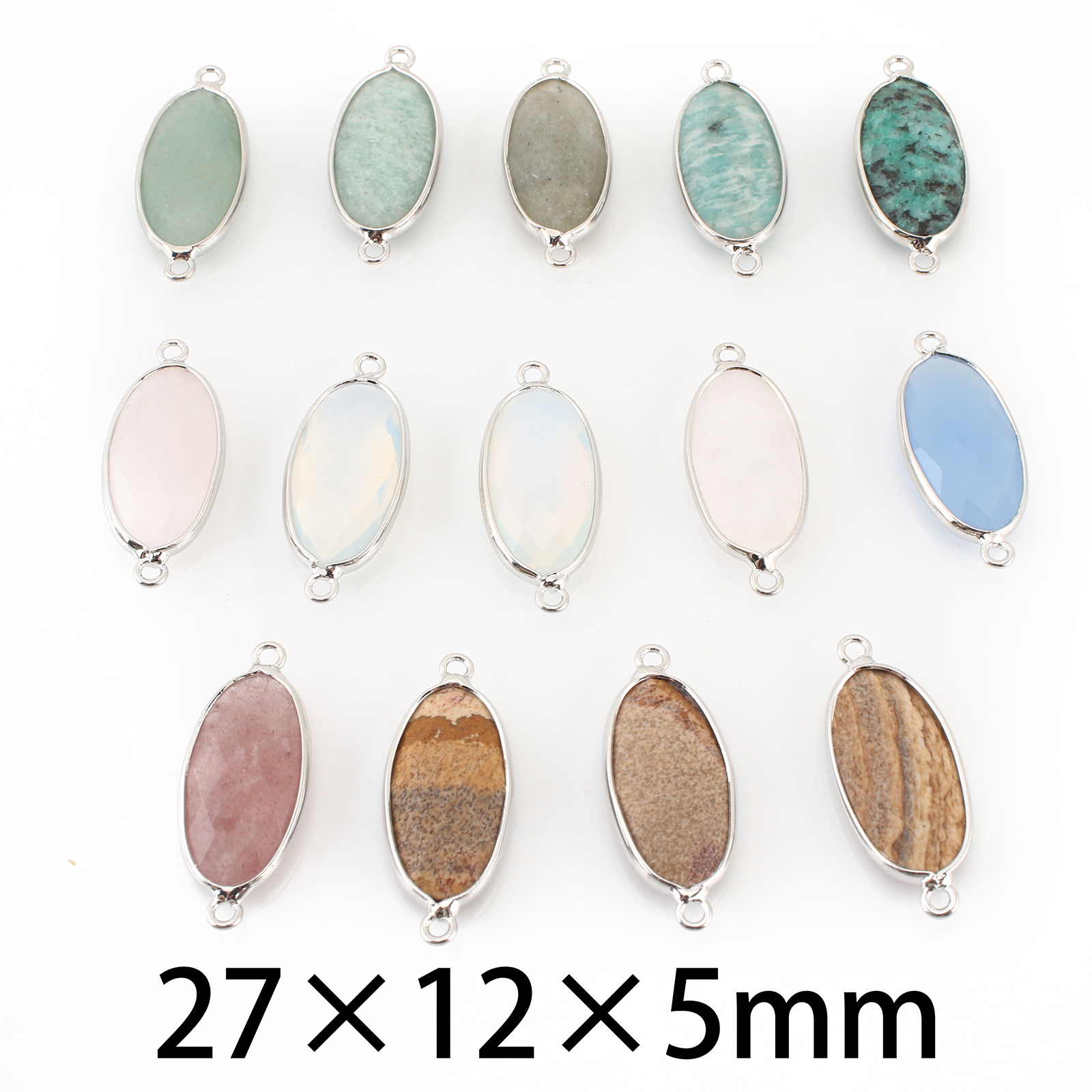 Connecteur de pierre gemme, avec laiton, ovale plat, DIY, plus de couleurs à choisir, 27x12x5mm, Vendu par PC