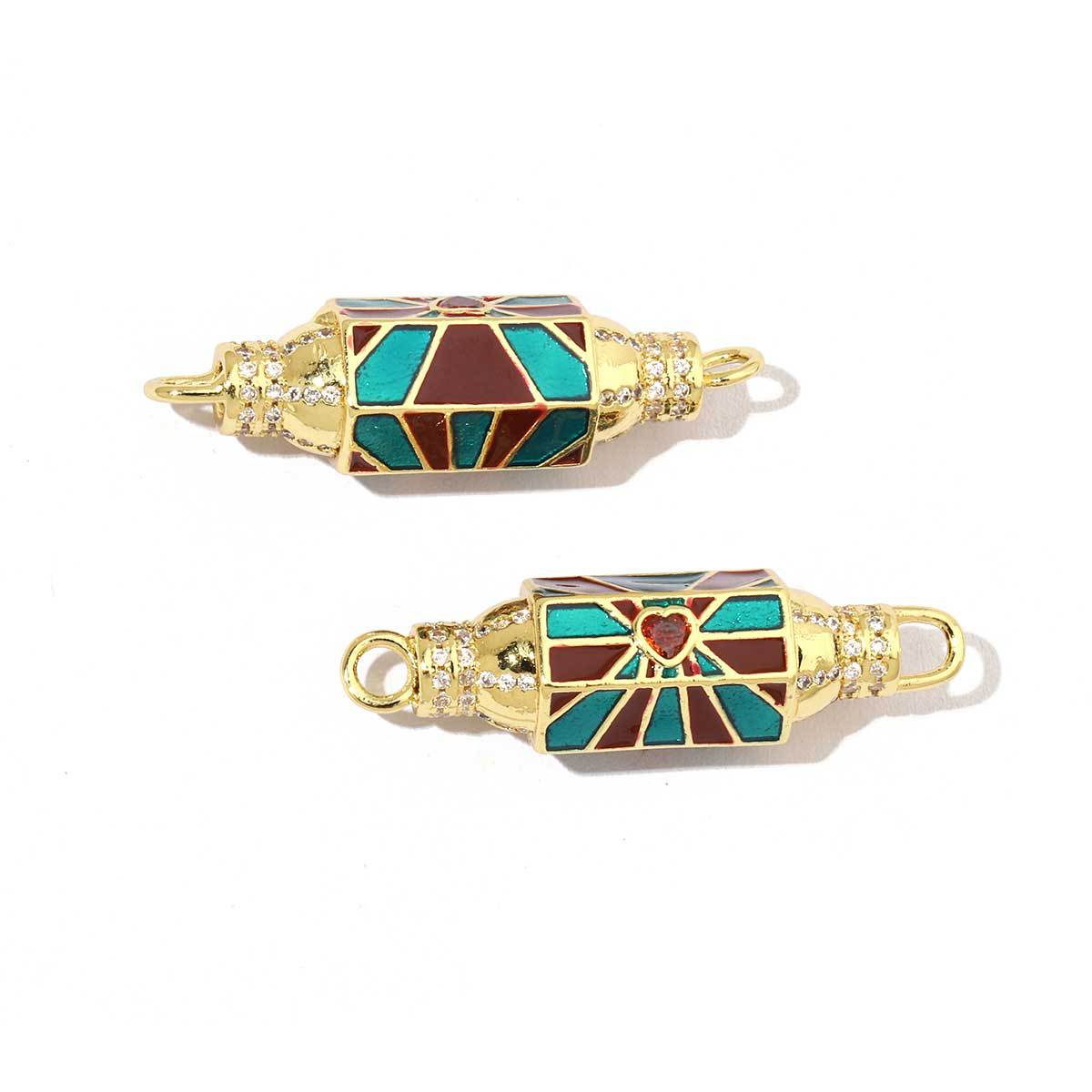 Cubique Pendentif en laiton zircon pavent, cerise, Placage, DIY & pavé de micro zircon, doré, protéger l'environnement, sans nickel, plomb et cadmium, 13.47x3.86x19.18mm, 20PC/sac, Vendu par sac