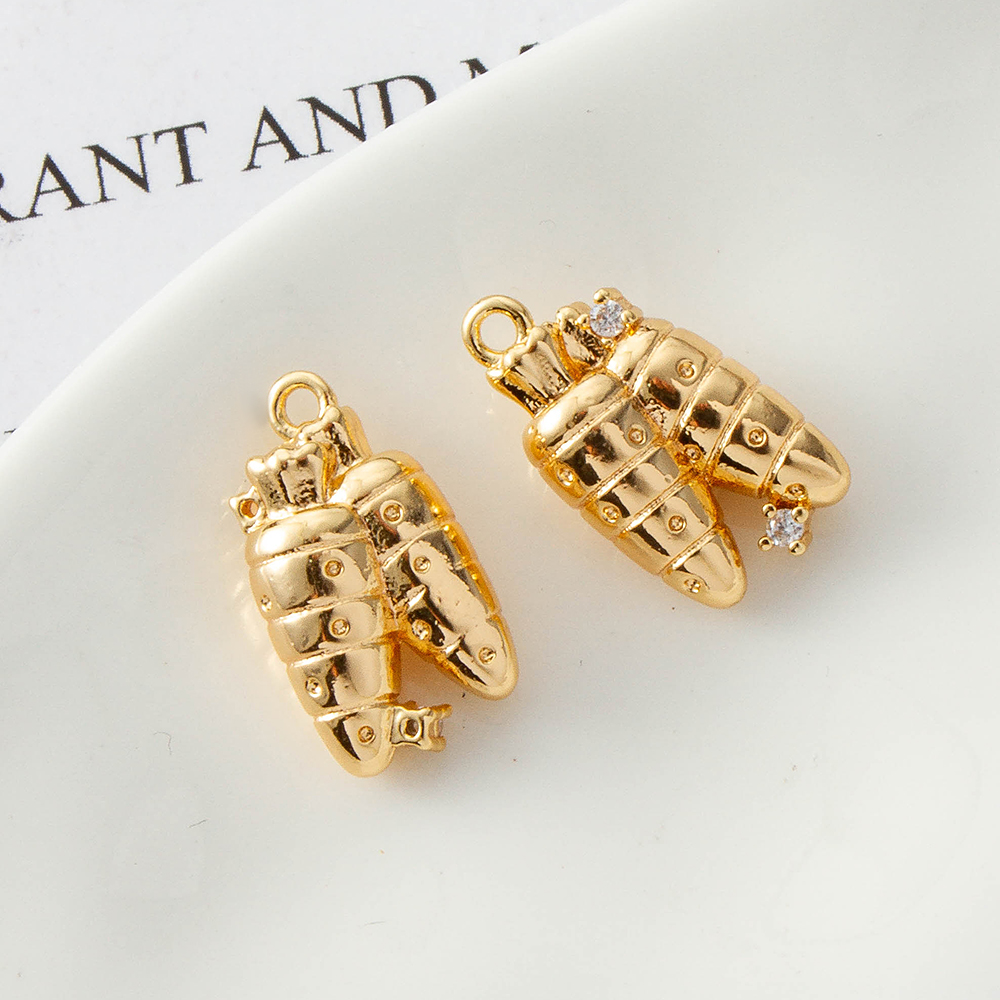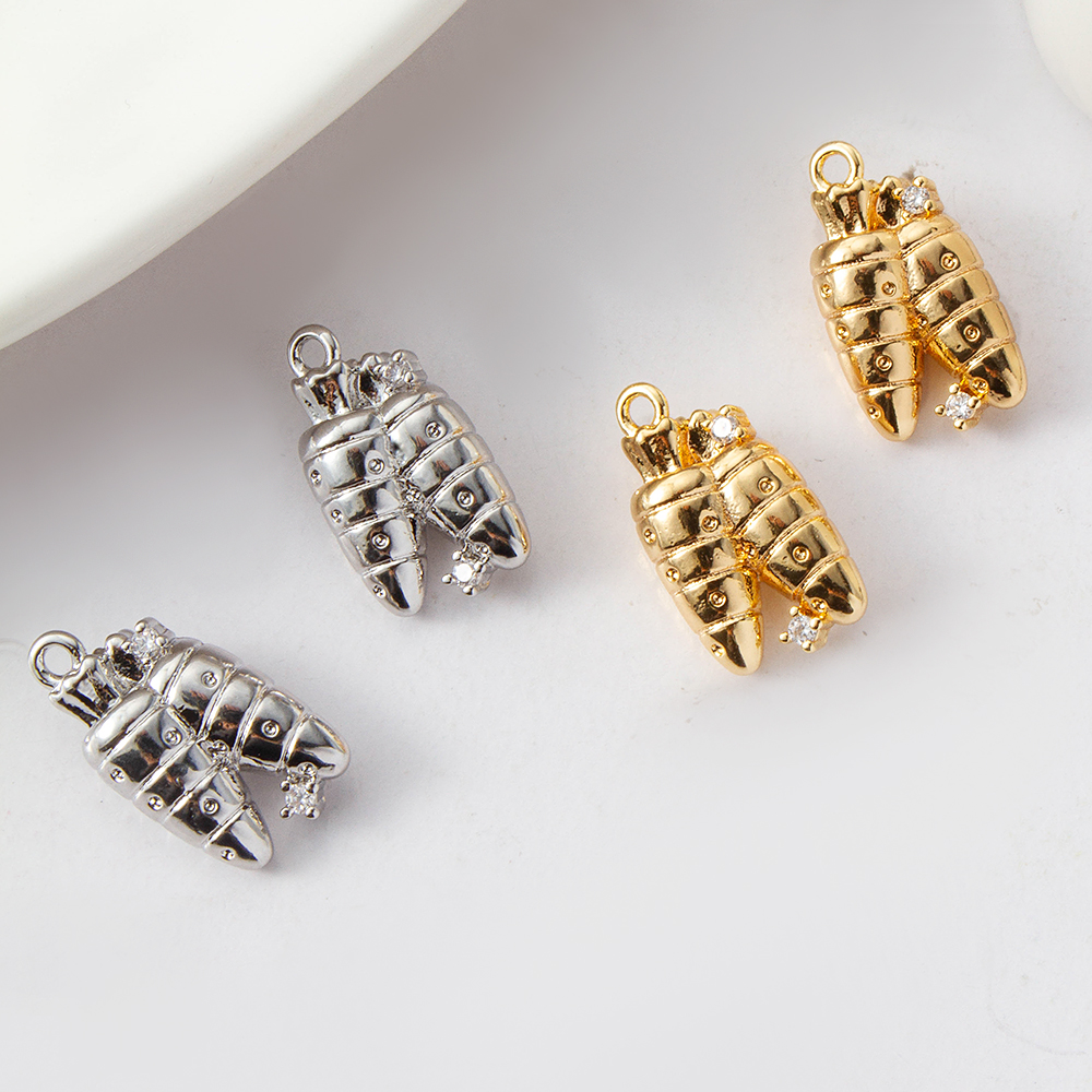 Cubique Pendentif en laiton zircon pavent, cerise, Placage, DIY & pavé de micro zircon, doré, protéger l'environnement, sans nickel, plomb et cadmium, 13.47x3.86x19.18mm, 20PC/sac, Vendu par sac