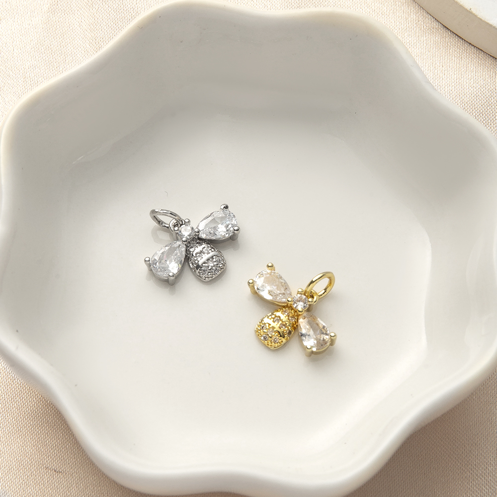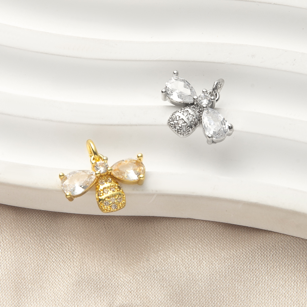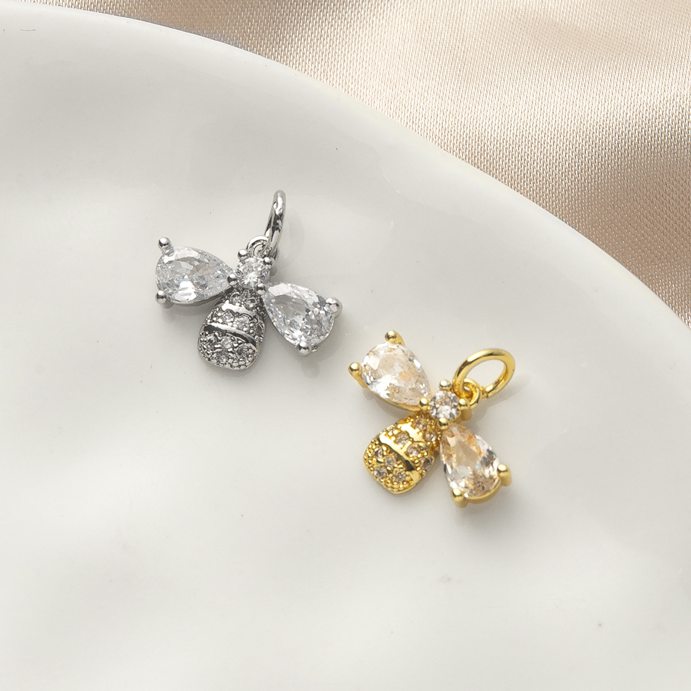 Cubique Pendentif en laiton zircon pavent, abeille, Placage, DIY & pavé de micro zircon, plus de couleurs à choisir, protéger l'environnement, sans nickel, plomb et cadmium, 14x3.50x13.86mm, Vendu par PC