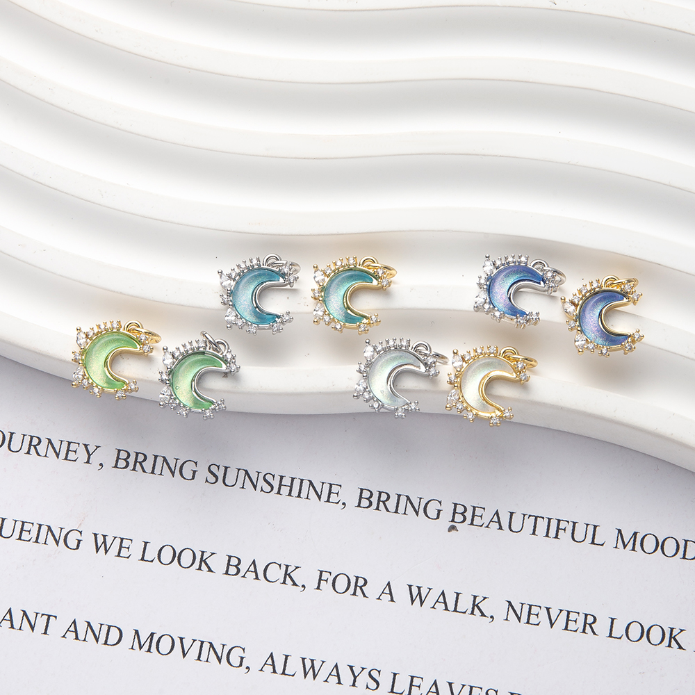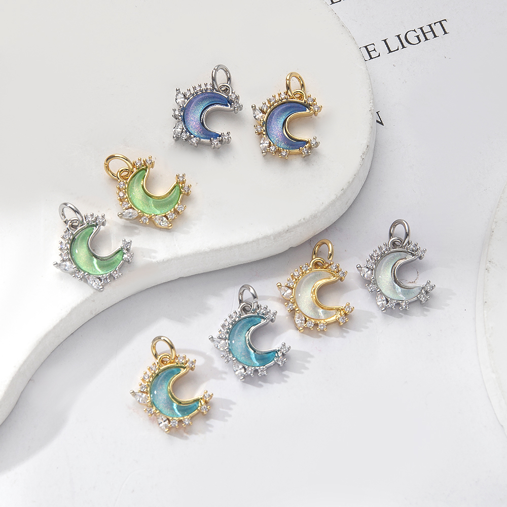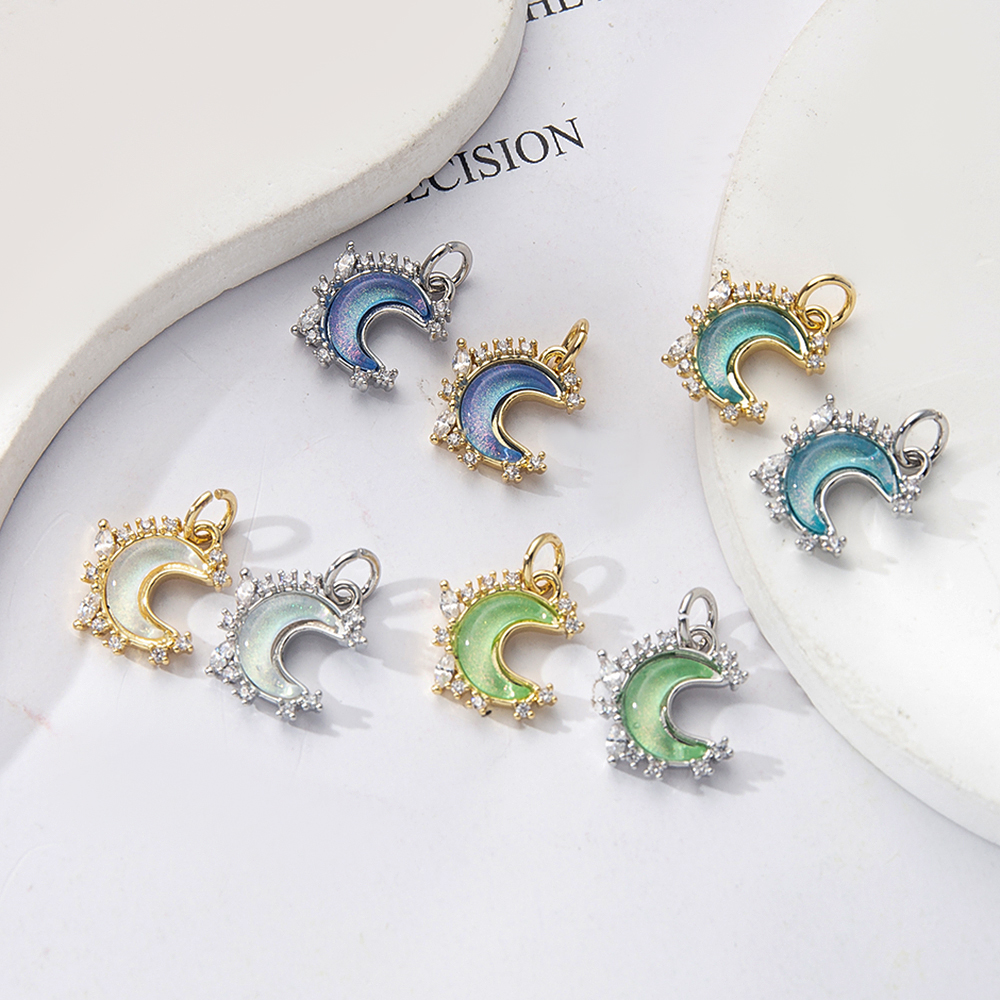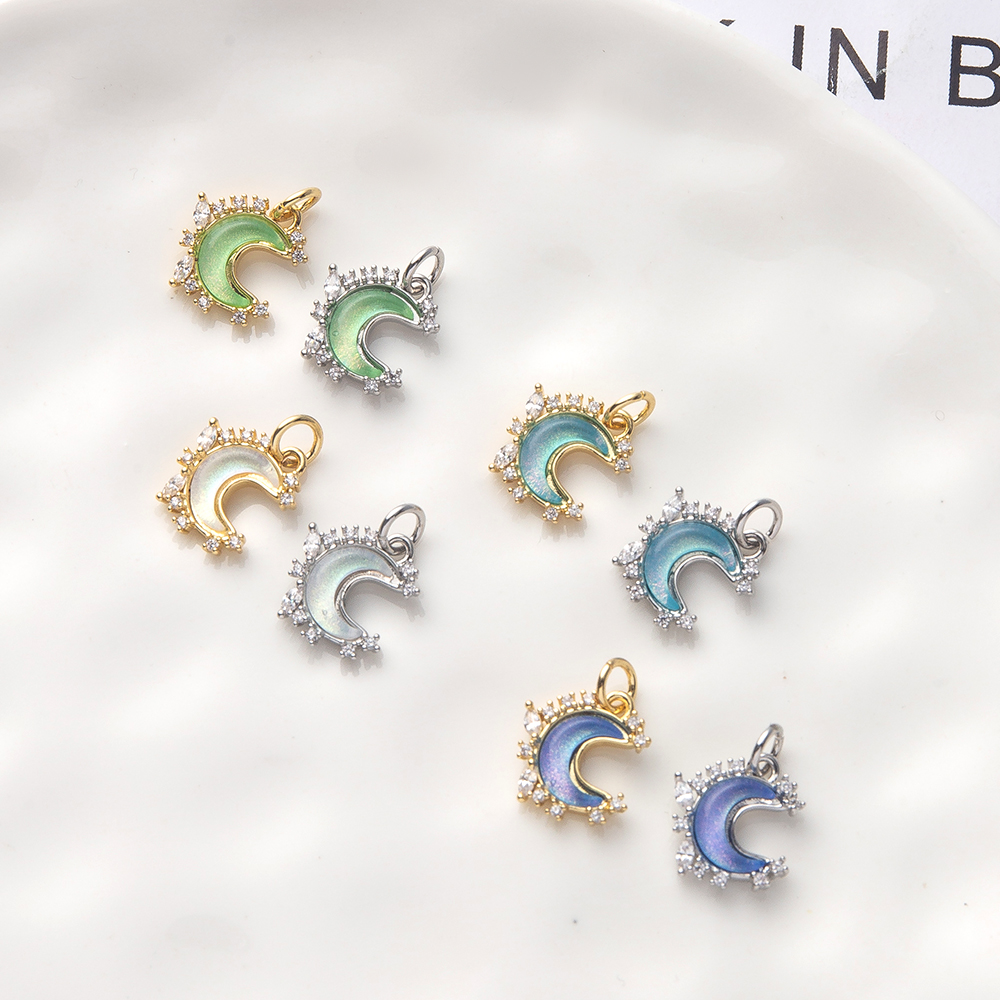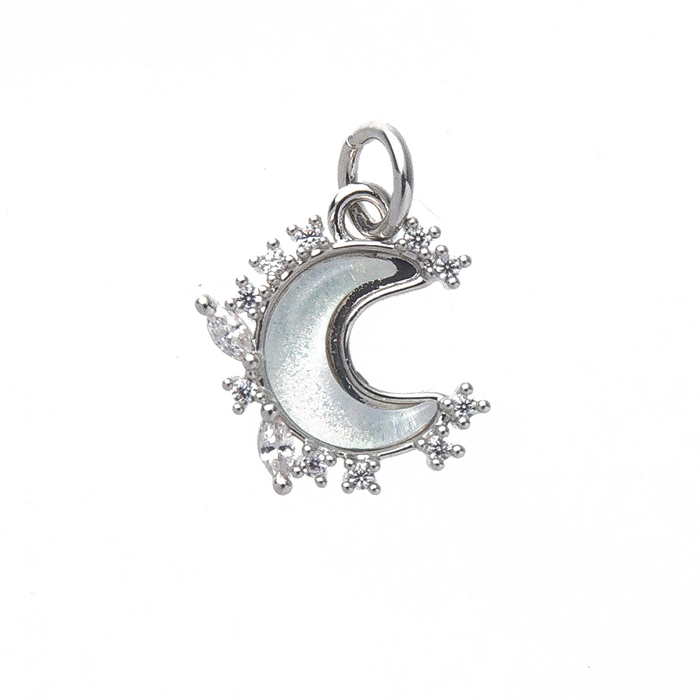 Cubique Pendentif en laiton zircon pavent, lune, Placage, DIY & pavé de micro zircon, plus de couleurs à choisir, protéger l'environnement, sans nickel, plomb et cadmium, 11.70x3x16.81mm, Vendu par PC