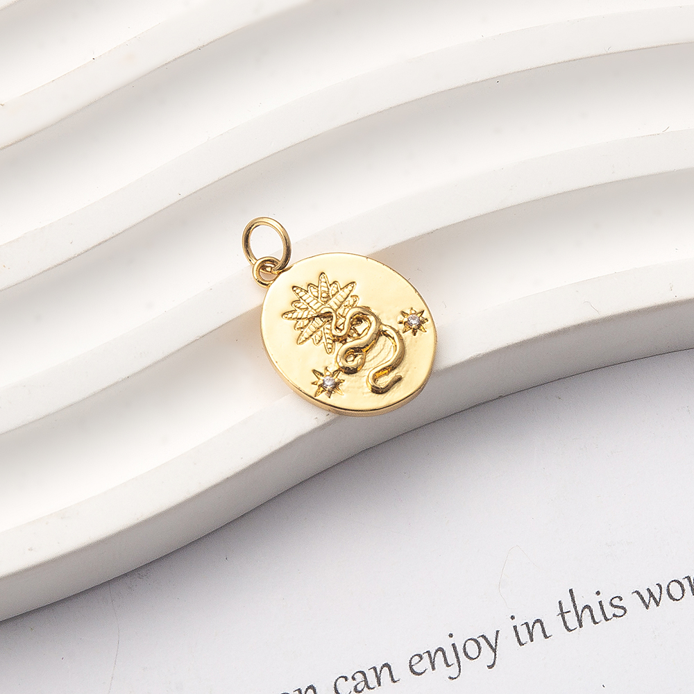 Cubique Pendentif en laiton zircon pavent, Rond, Placage de couleur d'or, DIY & pavé de micro zircon, protéger l'environnement, sans nickel, plomb et cadmium, 14x2.60x21mm, Vendu par PC