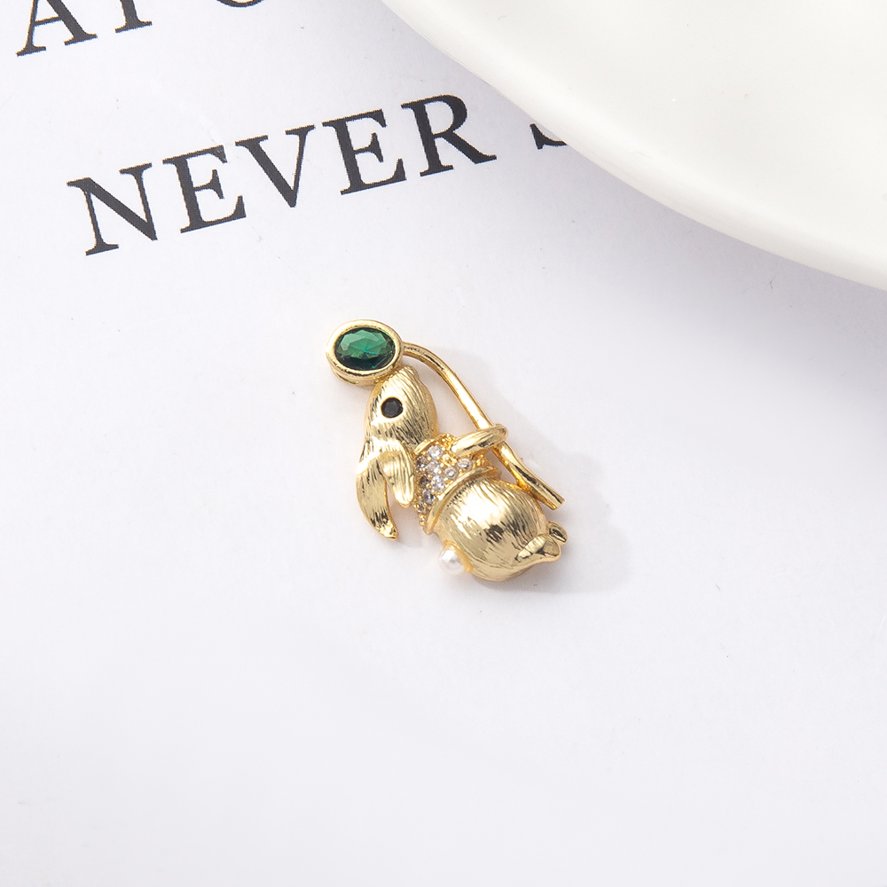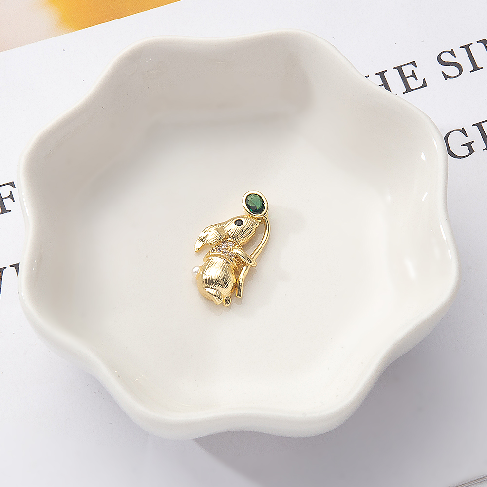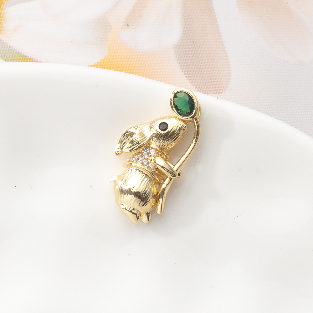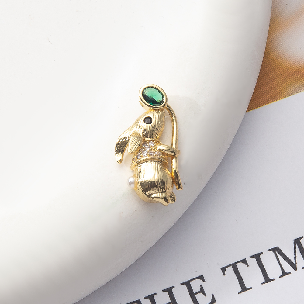 Cubique Pendentif en laiton zircon pavent, avec perle de plastique, lapin, Placage de couleur d'or, DIY & pavé de micro zircon, protéger l'environnement, sans nickel, plomb et cadmium, 11x4x21mm, Vendu par PC