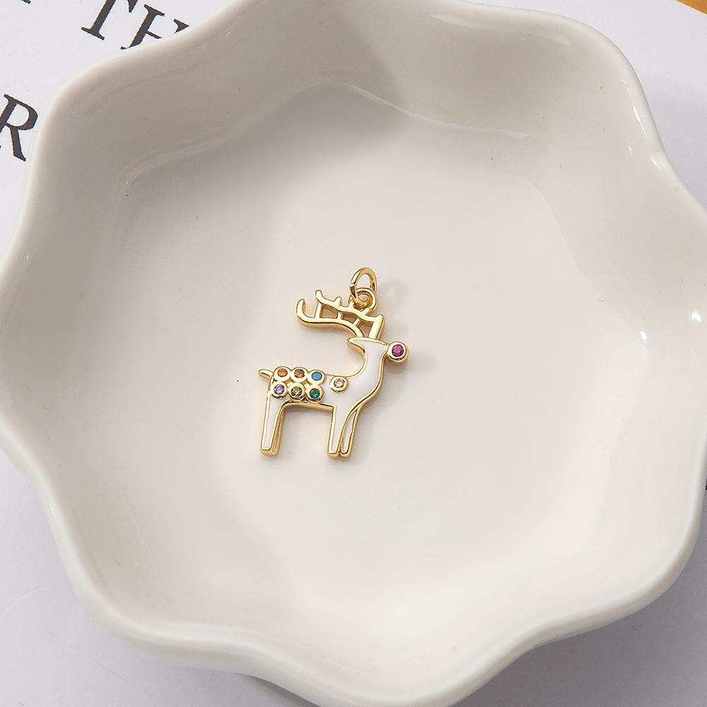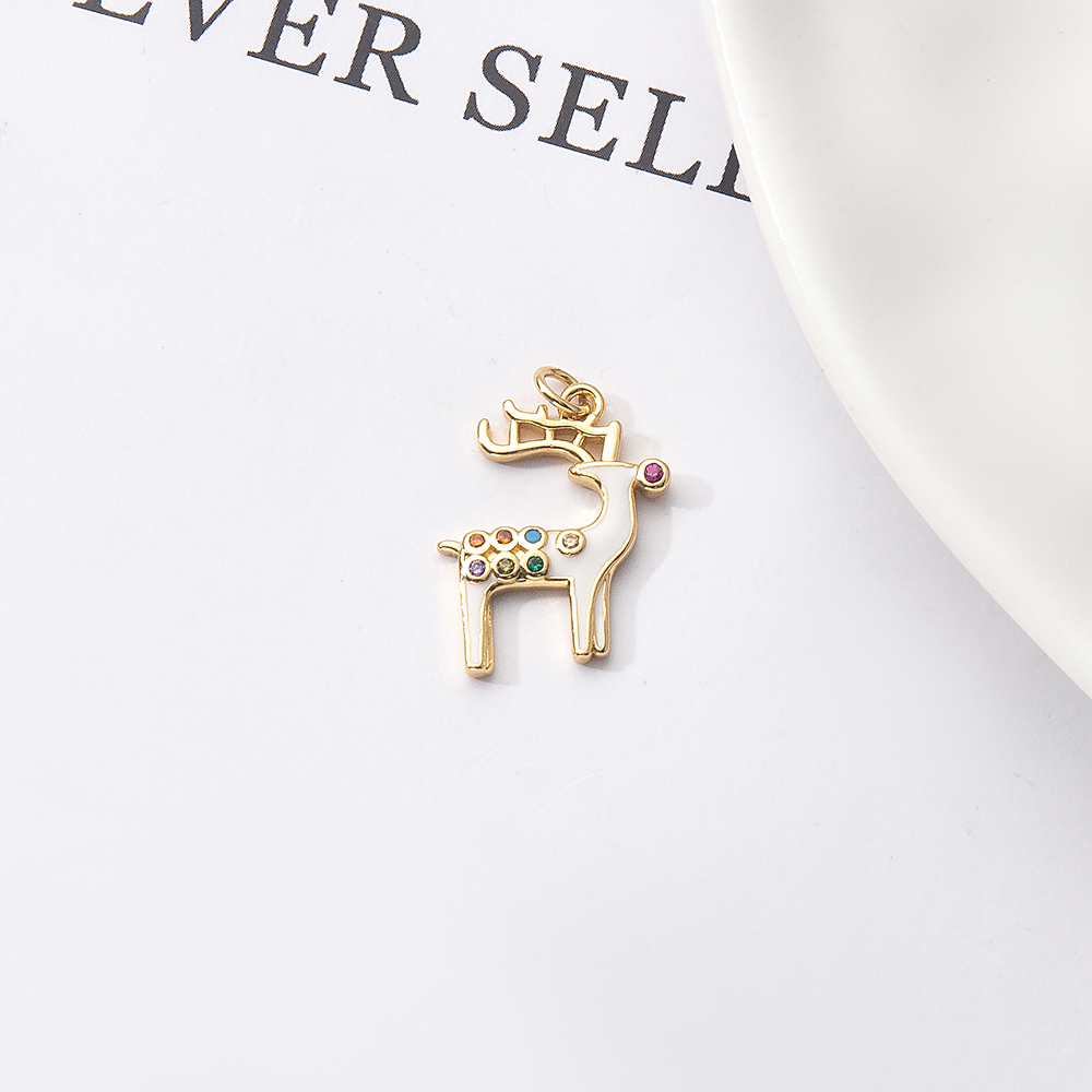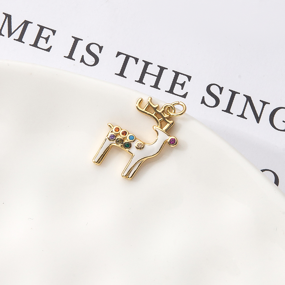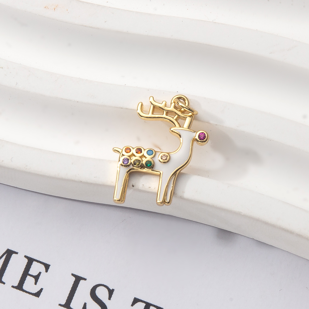 Cubique Pendentif en laiton zircon pavent, gazelle, Placage de couleur d'or, DIY & pavé de micro zircon & émail, blanc, protéger l'environnement, sans nickel, plomb et cadmium, 16x2x11mm, Vendu par PC