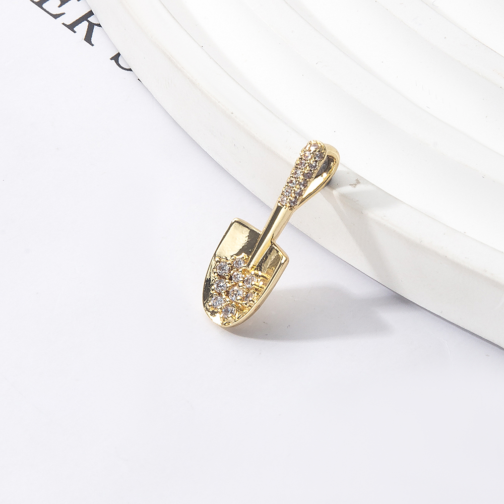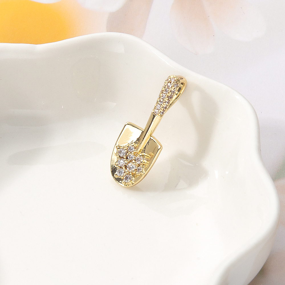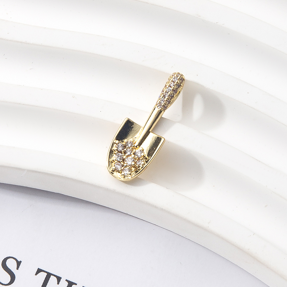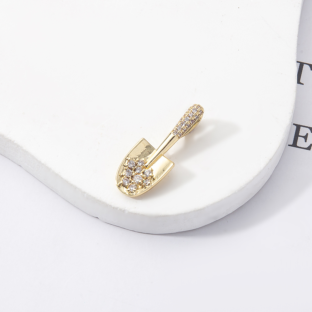 Cubique Pendentif en laiton zircon pavent, Pelle, Placage de couleur d'or, DIY & pavé de micro zircon, protéger l'environnement, sans nickel, plomb et cadmium, 8x6x23mm, Vendu par PC