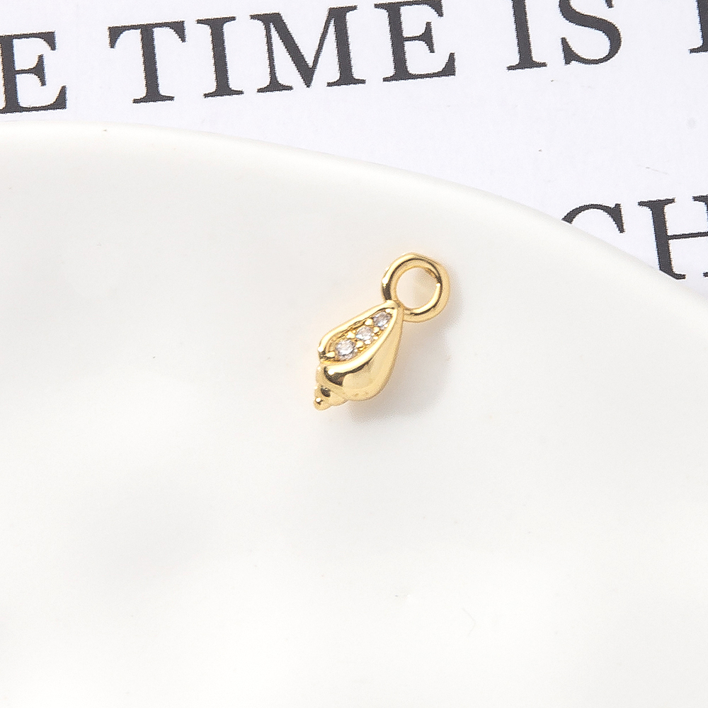 Cubique Pendentif en laiton zircon pavent, conque, Placage de couleur d'or, DIY & pavé de micro zircon, protéger l'environnement, sans nickel, plomb et cadmium, 4x3x11mm, Vendu par PC