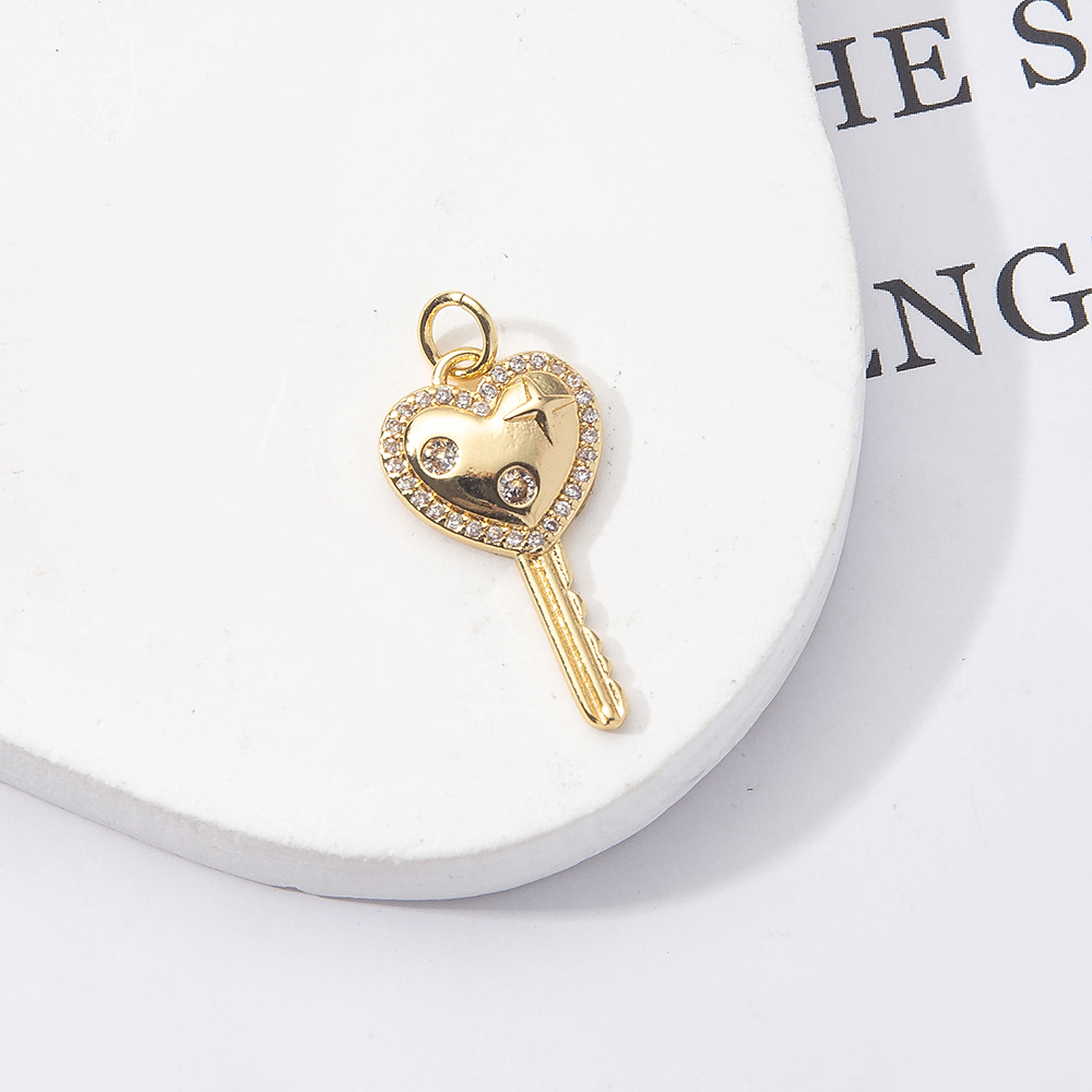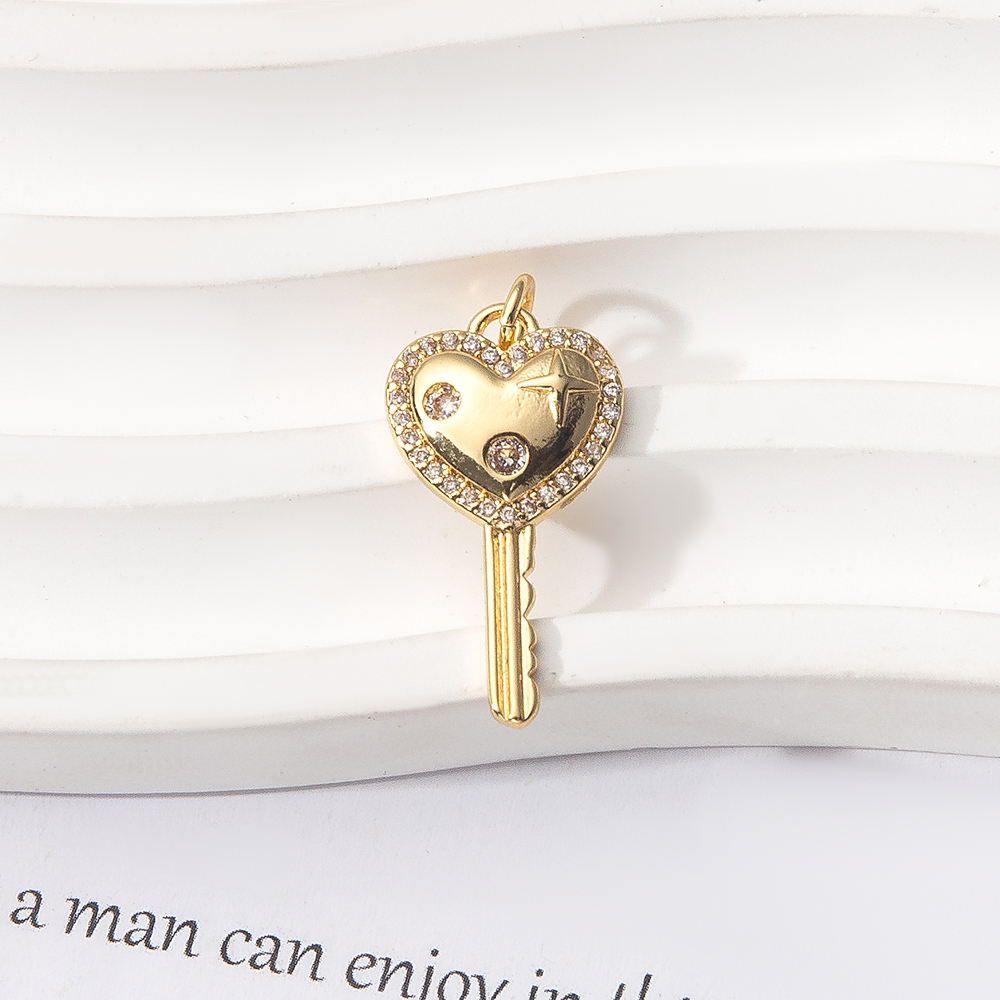 Cubique Pendentif en laiton zircon pavent, clé, Placage de couleur d'or, DIY & pavé de micro zircon, protéger l'environnement, sans nickel, plomb et cadmium, 12x3x26mm, Vendu par PC