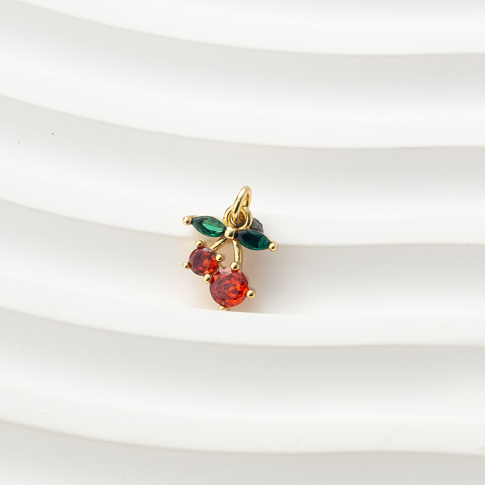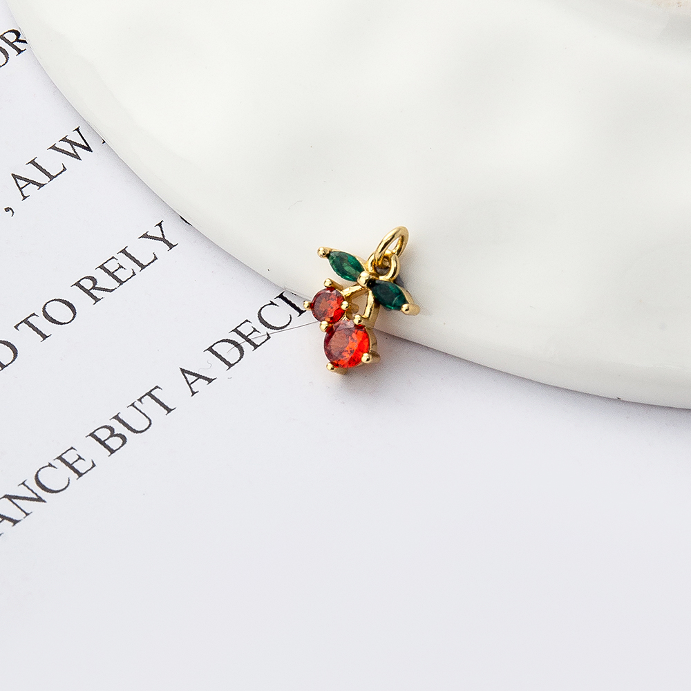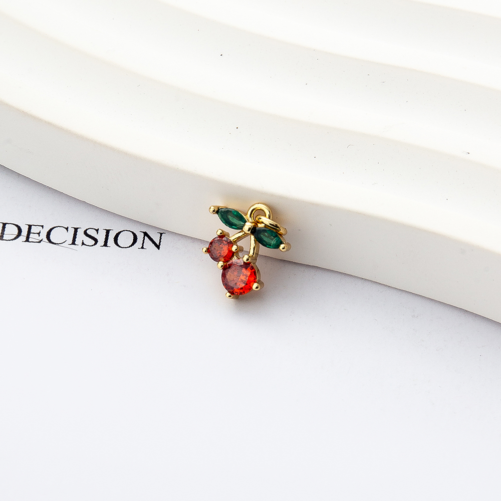 Cubique Pendentif en laiton zircon pavent, cerise, Placage de couleur d'or, DIY & pavé de micro zircon, protéger l'environnement, sans nickel, plomb et cadmium, 9x3x13mm, Vendu par PC