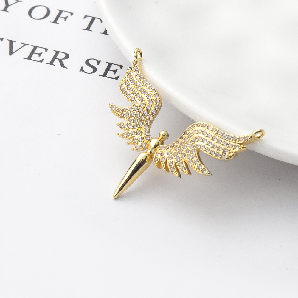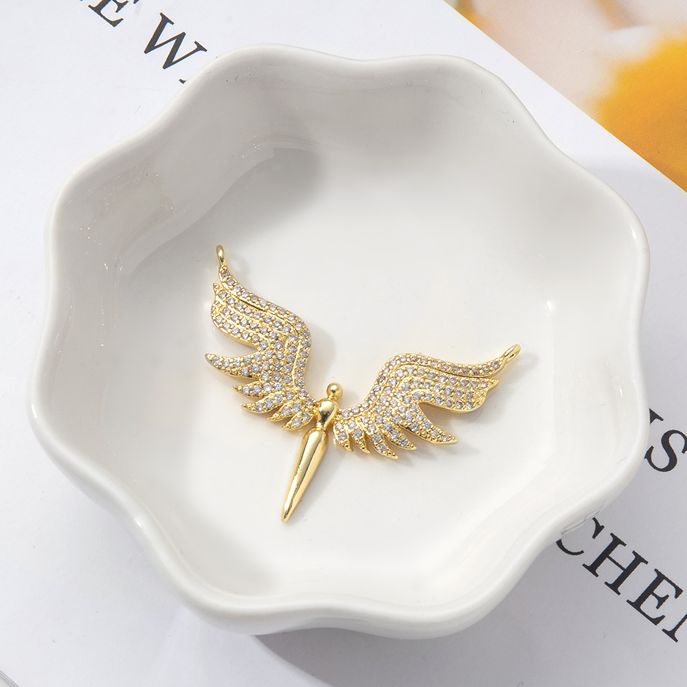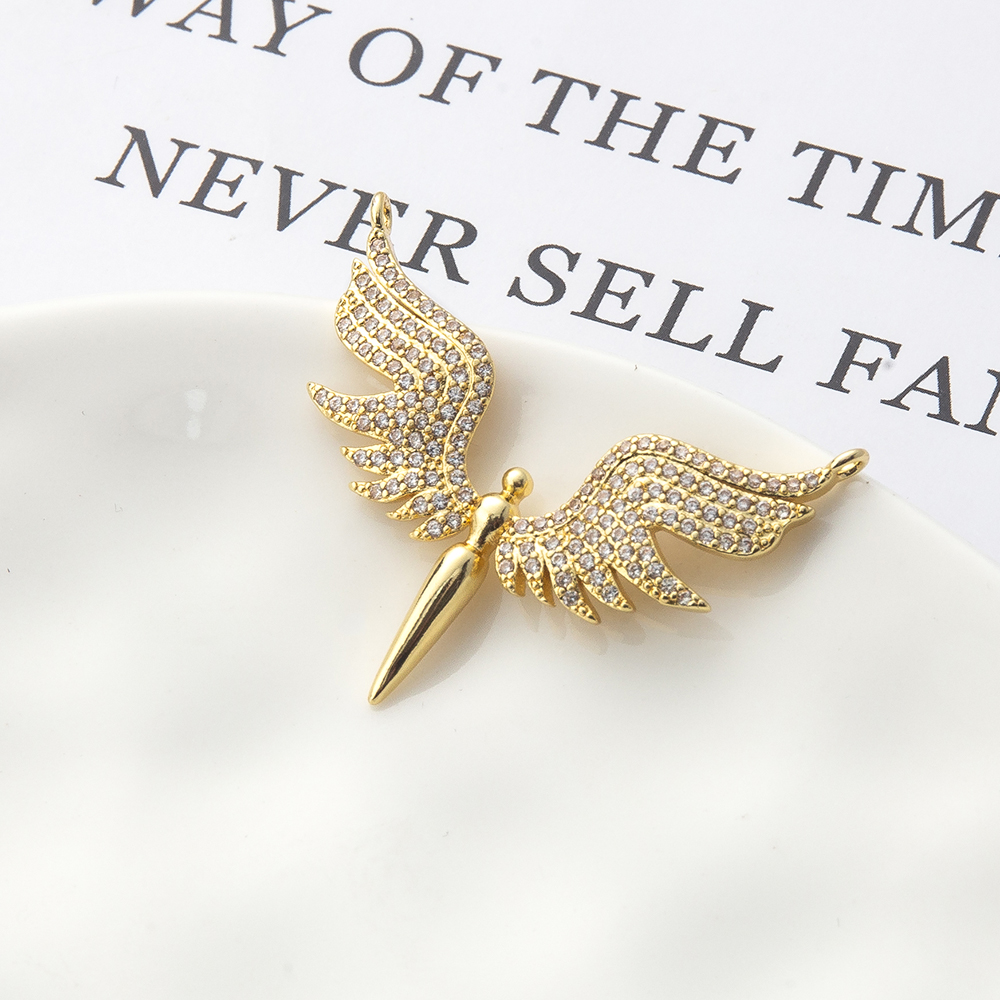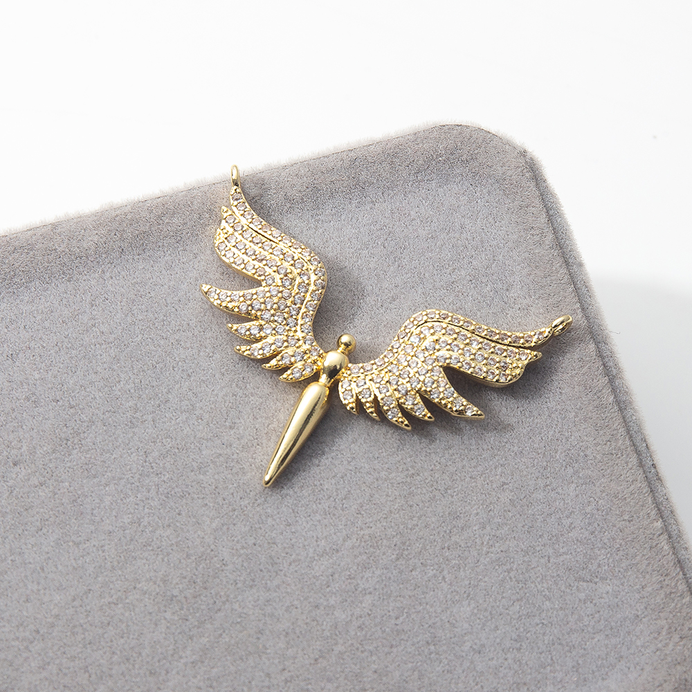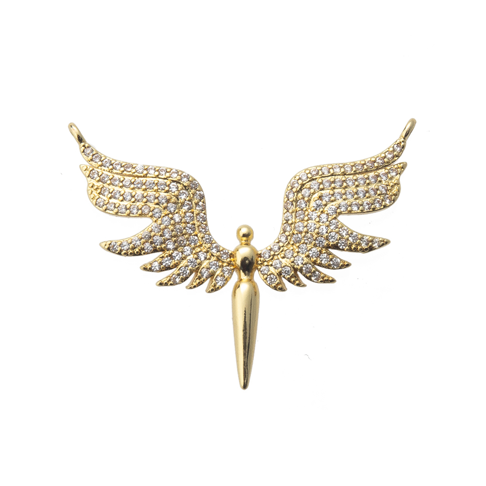 Cubique Pendentif en laiton zircon pavent, forme d'aile, Placage de couleur d'or, DIY & pavé de micro zircon, protéger l'environnement, sans nickel, plomb et cadmium, 38x3x29mm, Vendu par PC