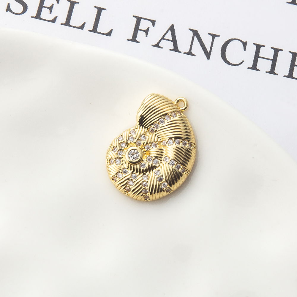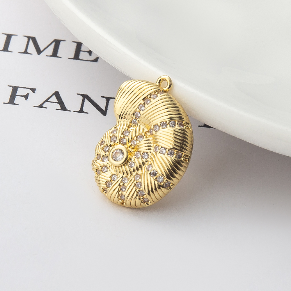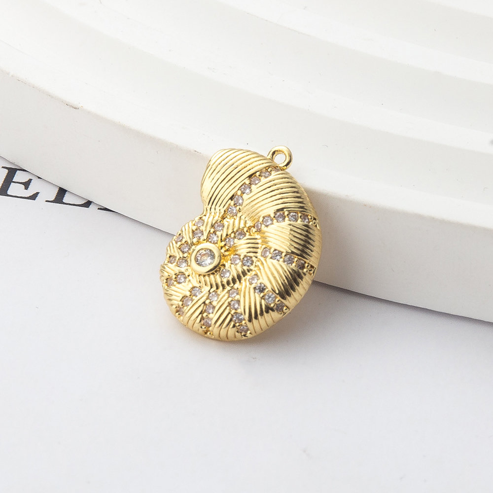 Cubique Pendentif en laiton zircon pavent, conque, Placage de couleur d'or, DIY & pavé de micro zircon, protéger l'environnement, sans nickel, plomb et cadmium, 14x3x19mm, Vendu par PC
