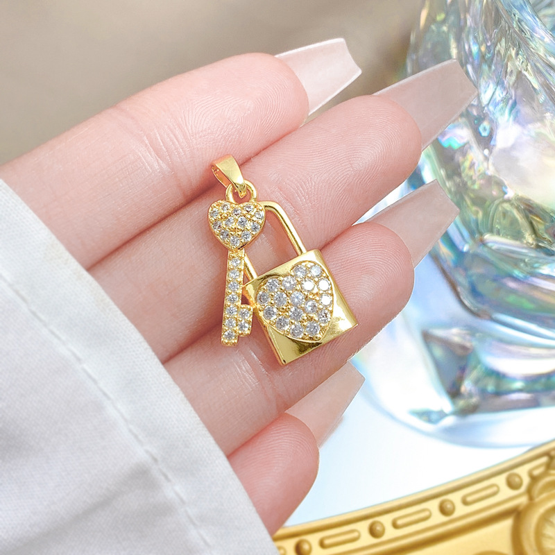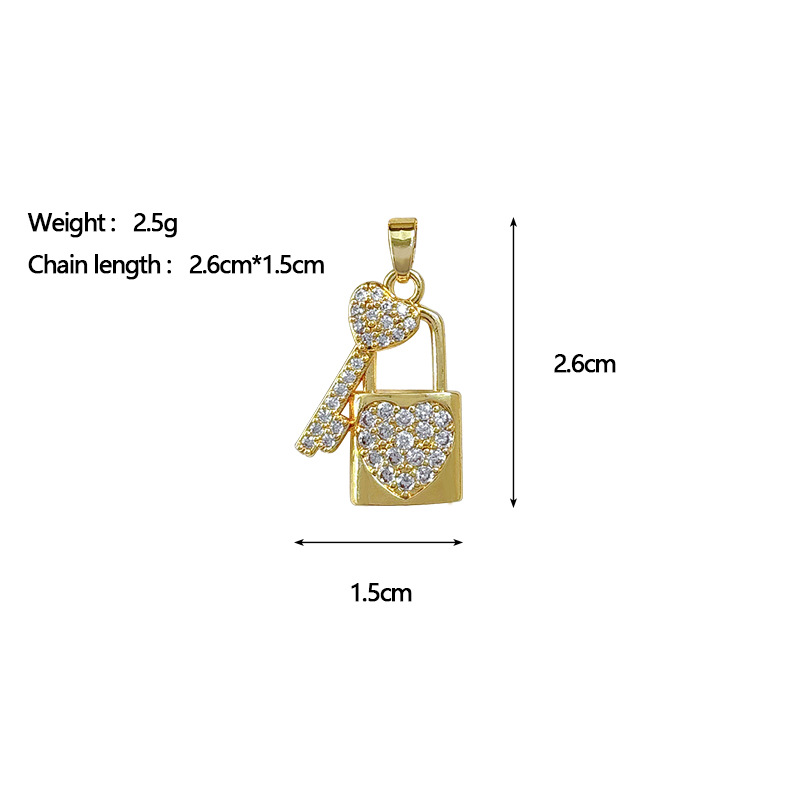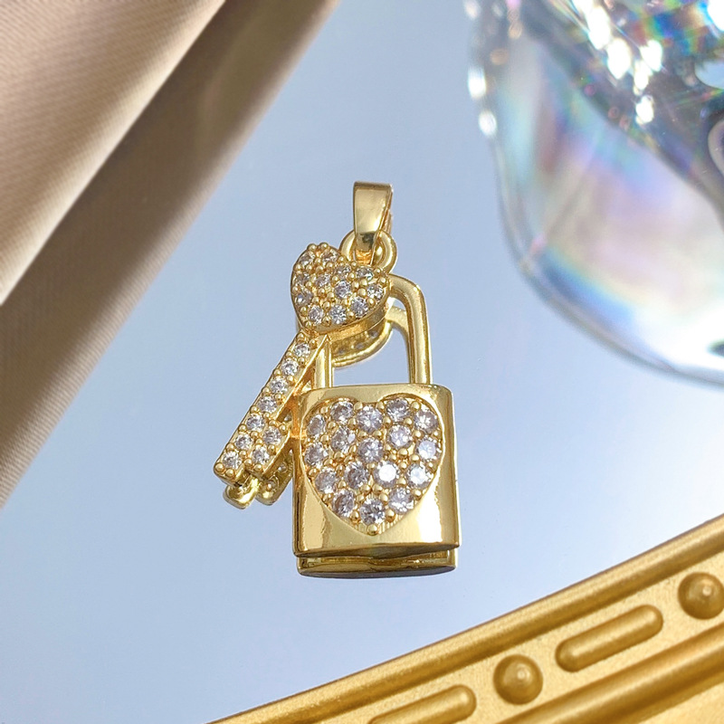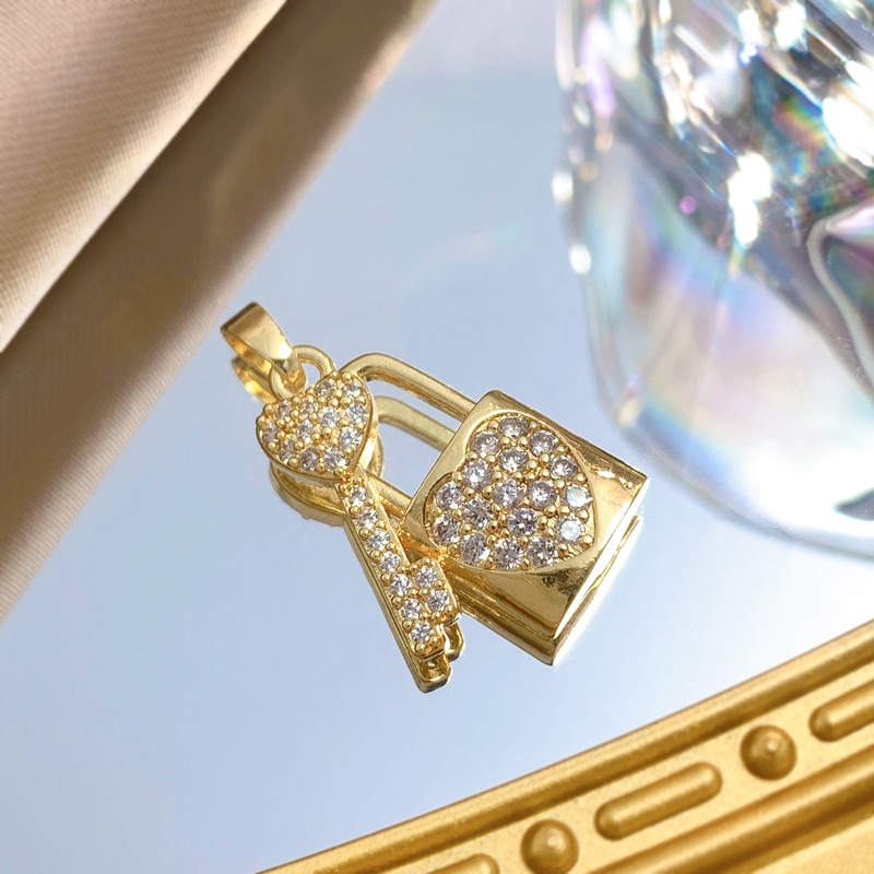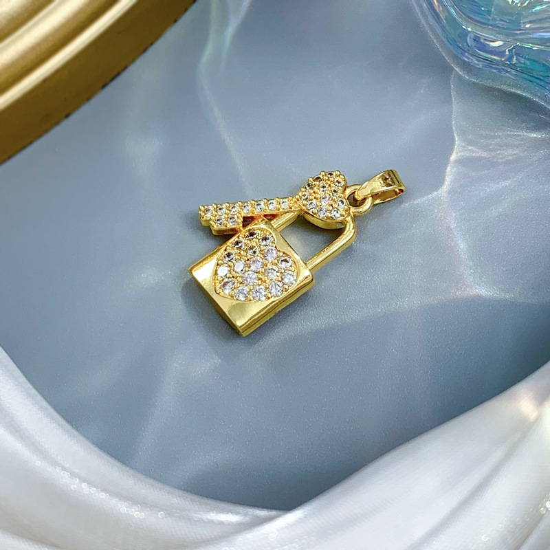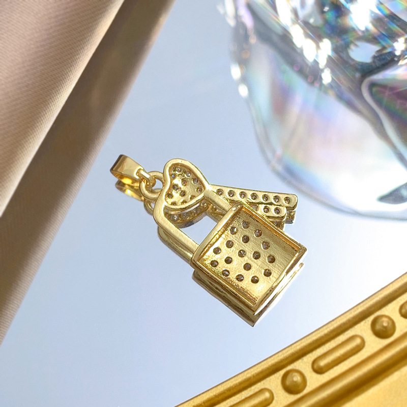 Cubique Pendentif en laiton zircon pavent, Blocage et clé, Plaqué d'or, DIY & pavé de micro zircon, Vendu par PC