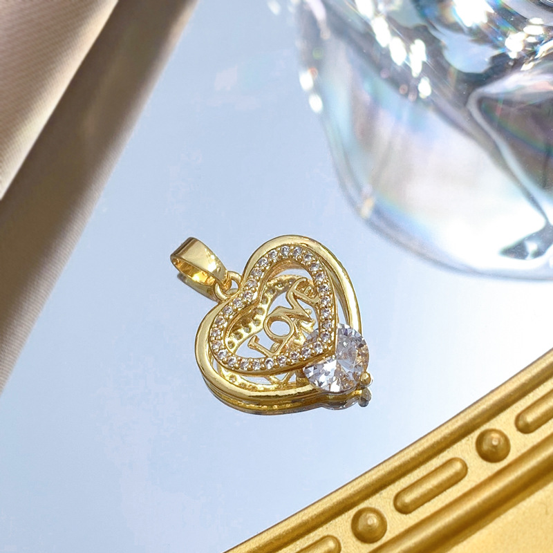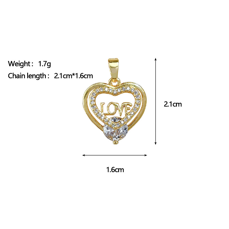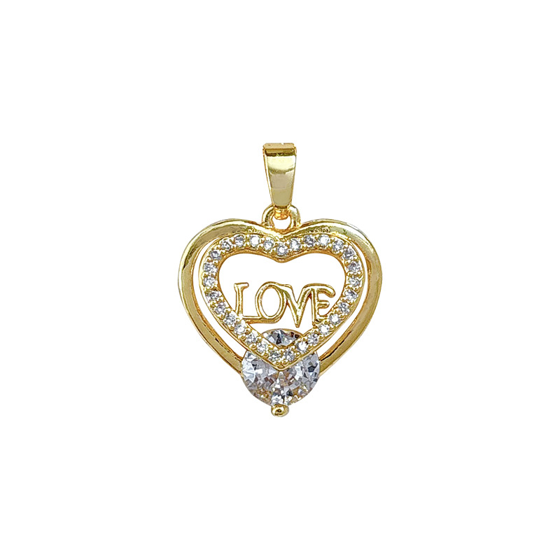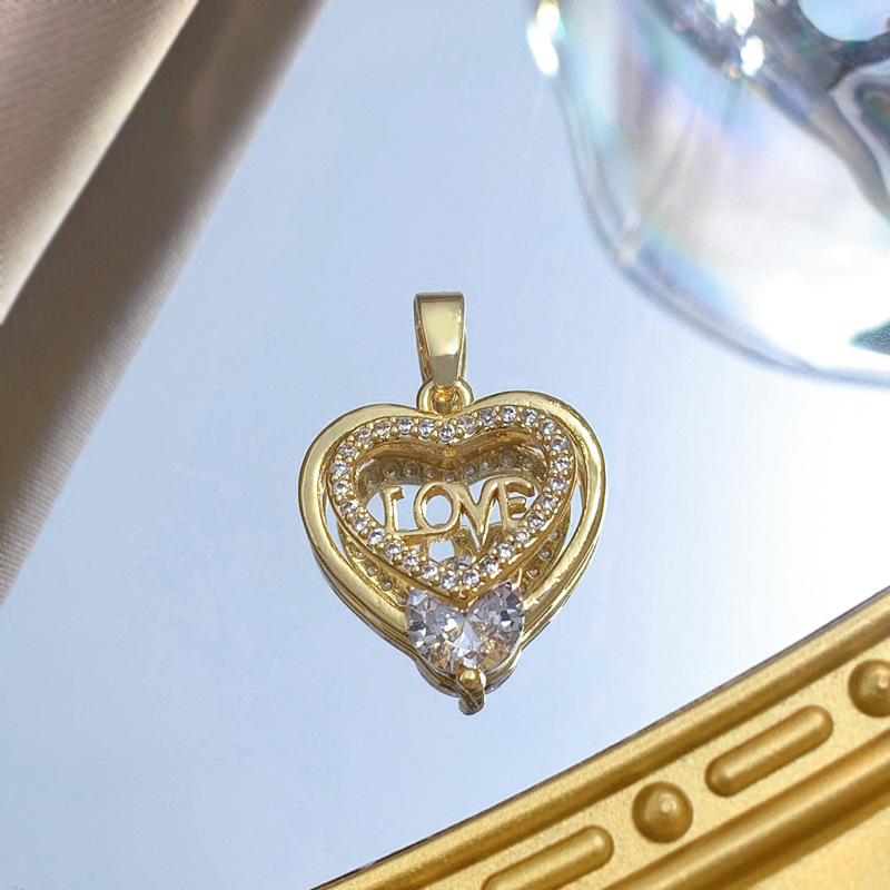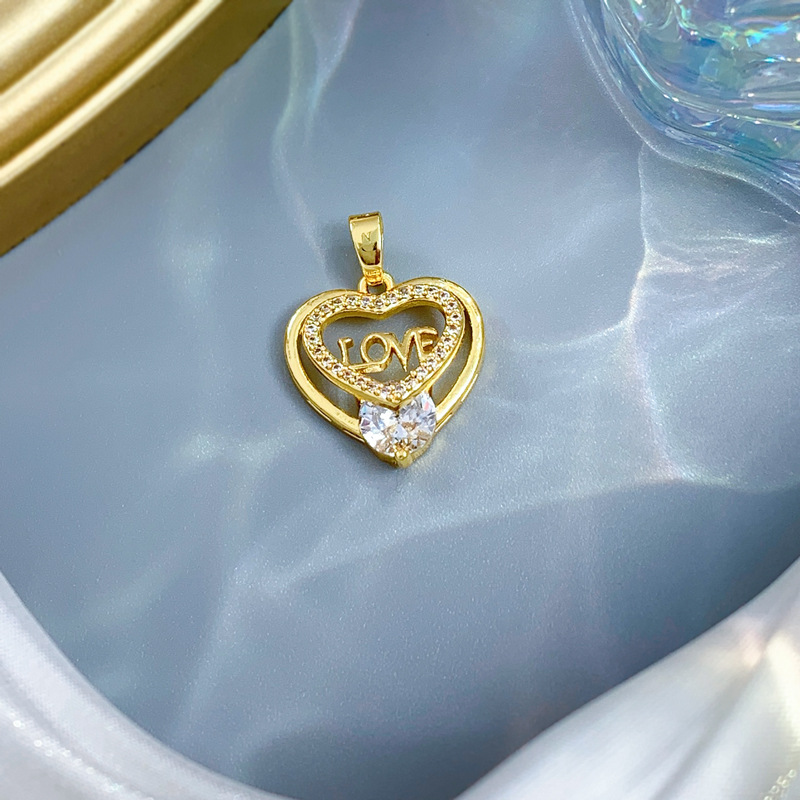 Cubique Pendentif en laiton zircon pavent, coeur, Plaqué d'or, DIY & pavé de micro zircon & creux, Vendu par PC