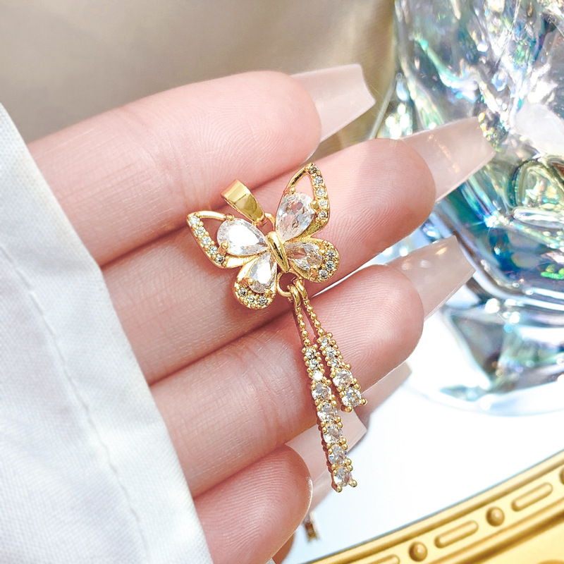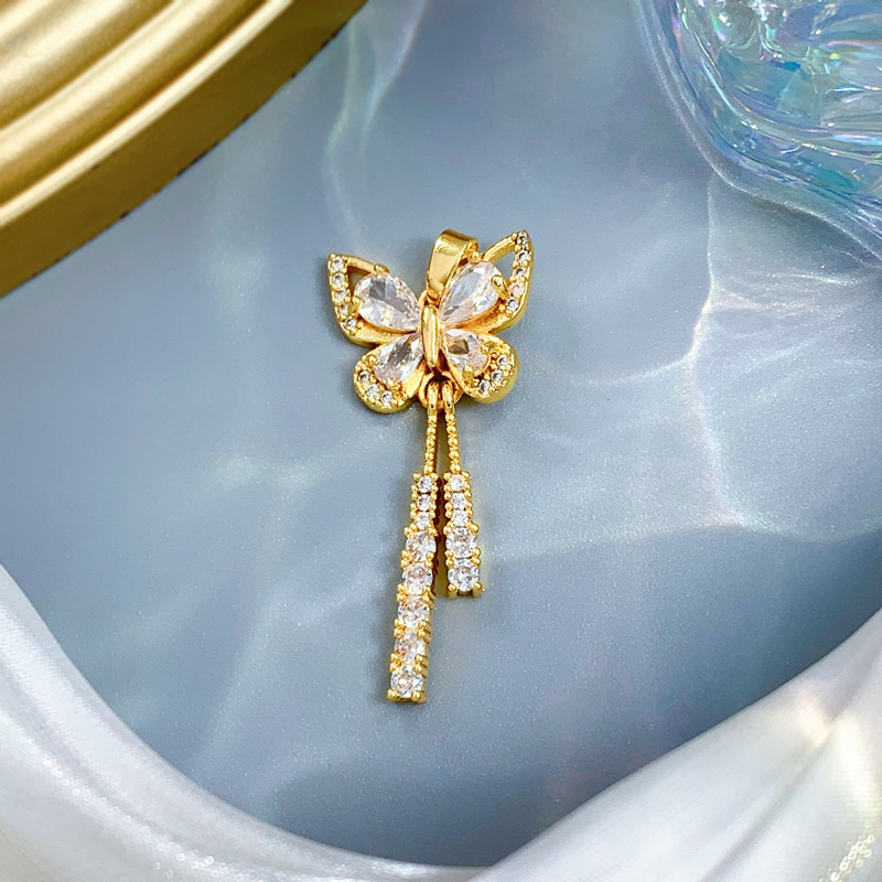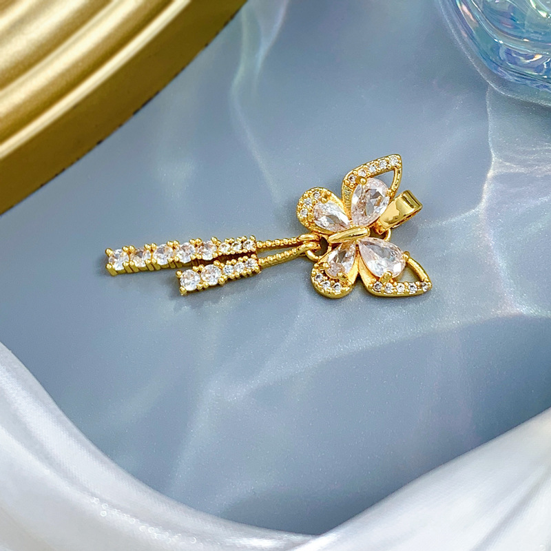 Cubique Pendentif en laiton zircon pavent, papillon, Plaqué d'or, DIY & pavé de micro zircon & creux, Vendu par PC