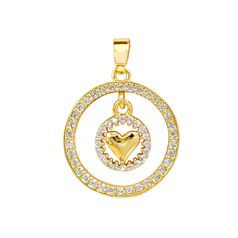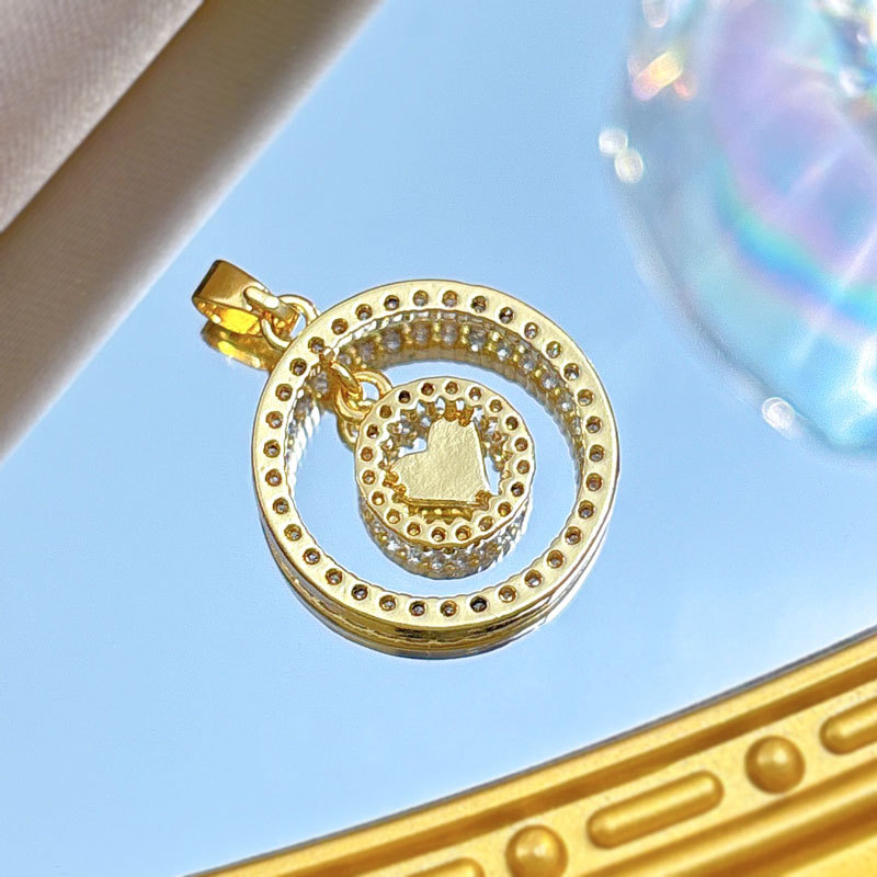 Cubique Pendentif en laiton zircon pavent, Rond, Plaqué d'or, DIY & pavé de micro zircon & creux, doré, Vendu par PC