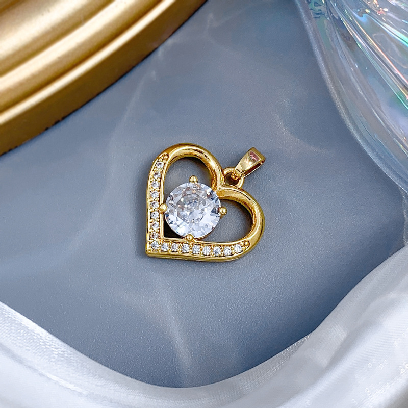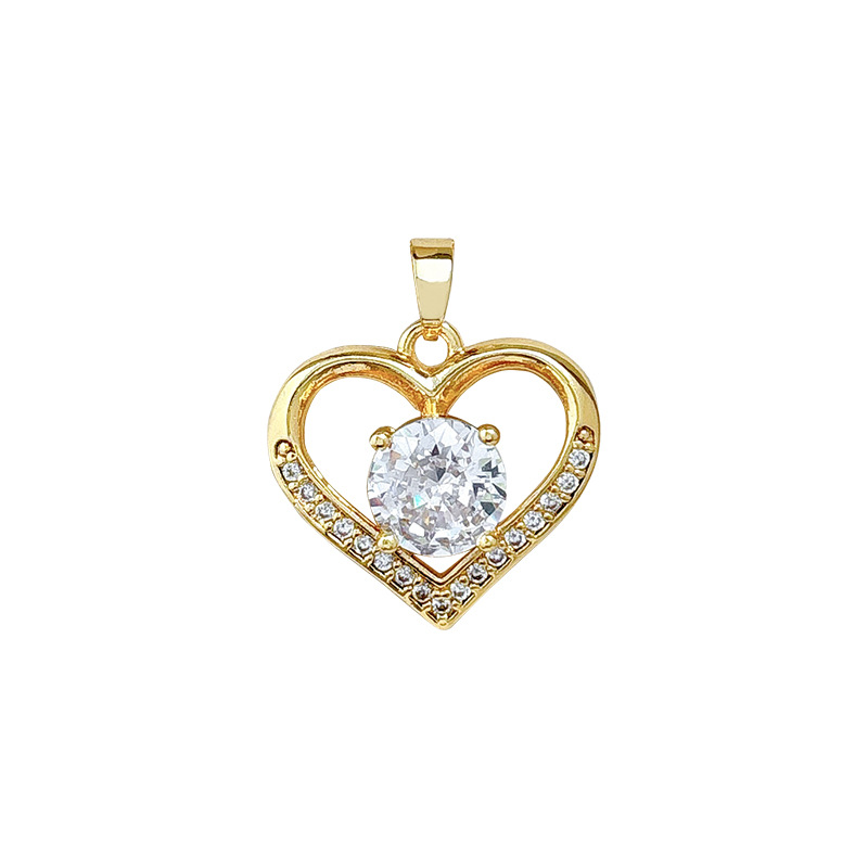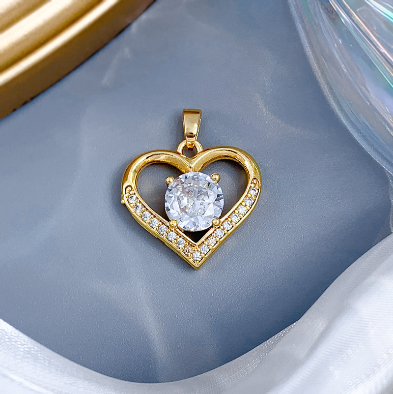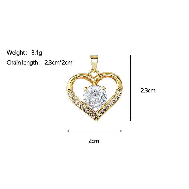 Cubique Pendentif en laiton zircon pavent, coeur, Plaqué d'or, DIY & pavé de micro zircon & creux, Vendu par PC