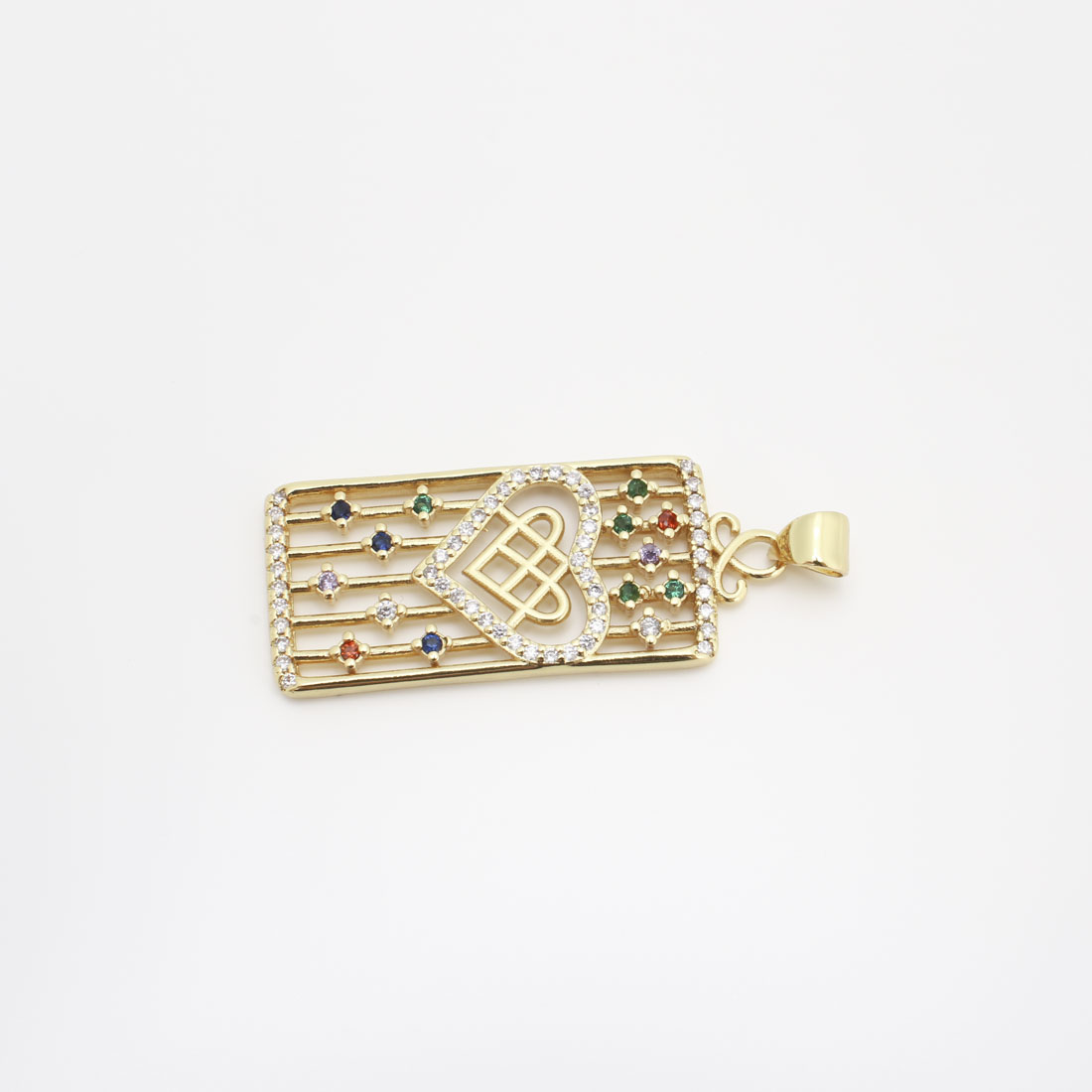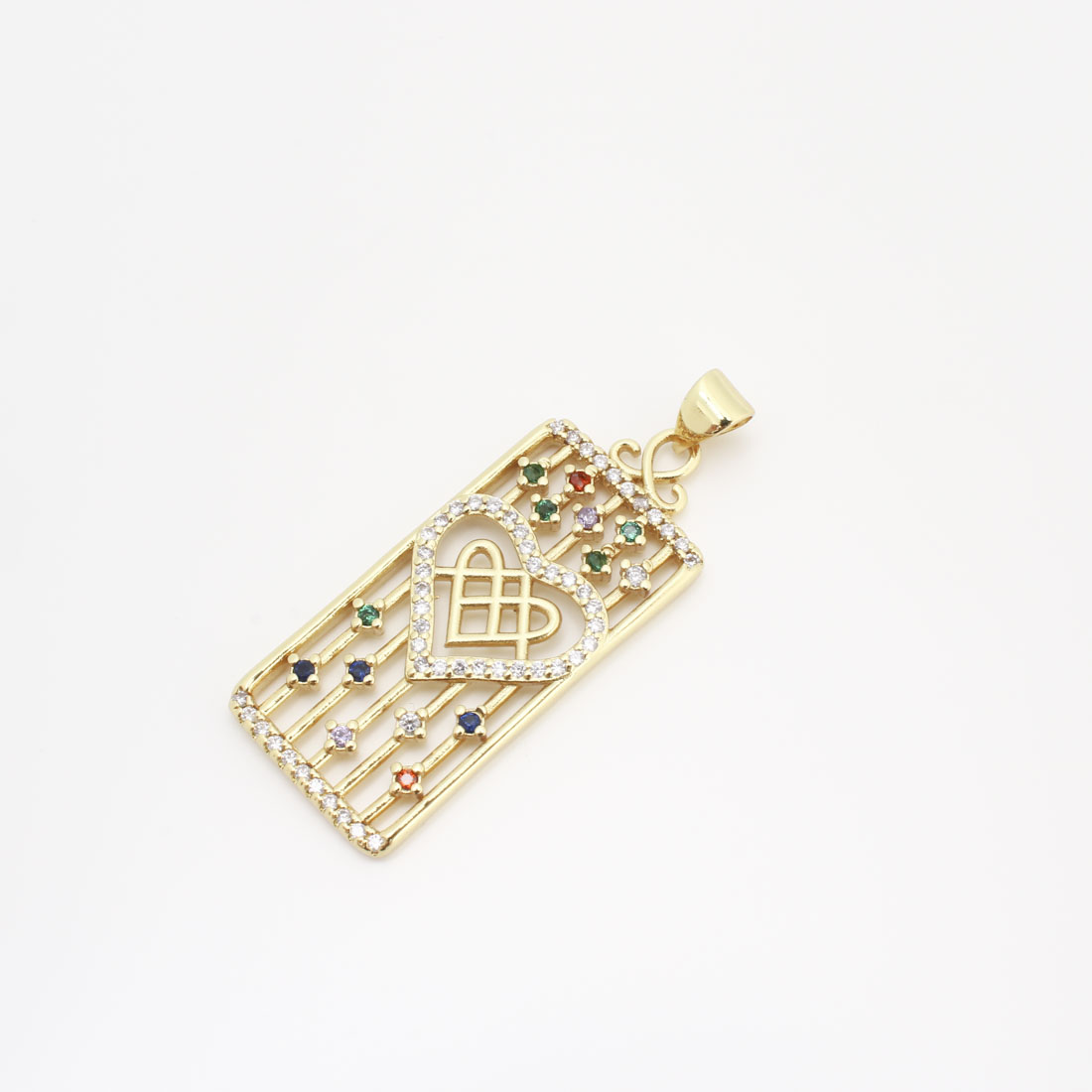 Cubique Pendentif en laiton zircon pavent, rectangle, DIY & pavé de micro zircon & creux, doré, 28x13x1mm, Vendu par PC