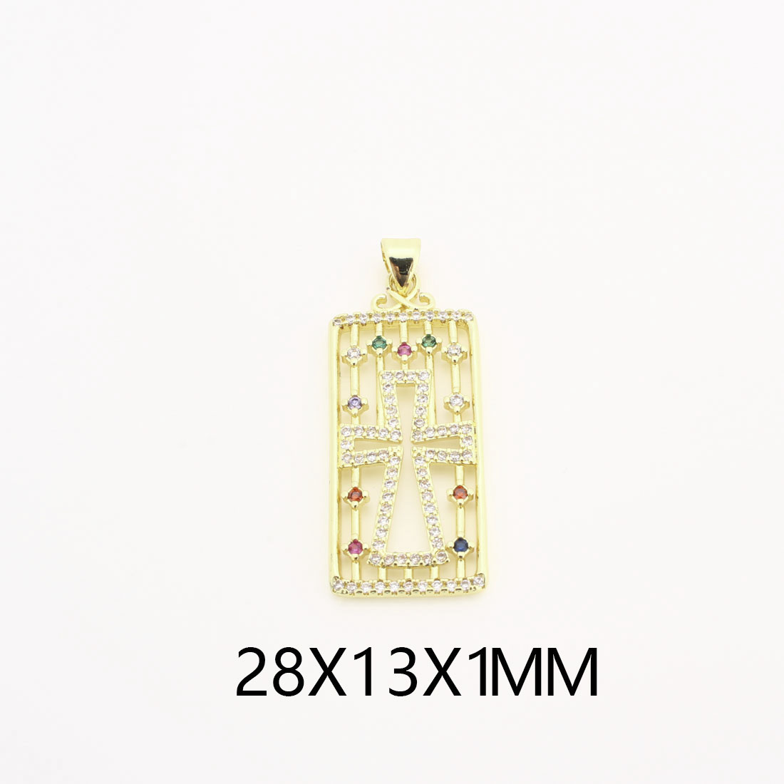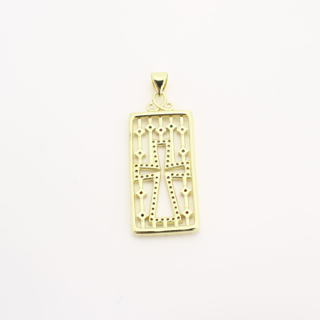 Cubique Pendentif en laiton zircon pavent, rectangle, DIY & pavé de micro zircon & creux, doré, 28x13x1mm, Vendu par PC