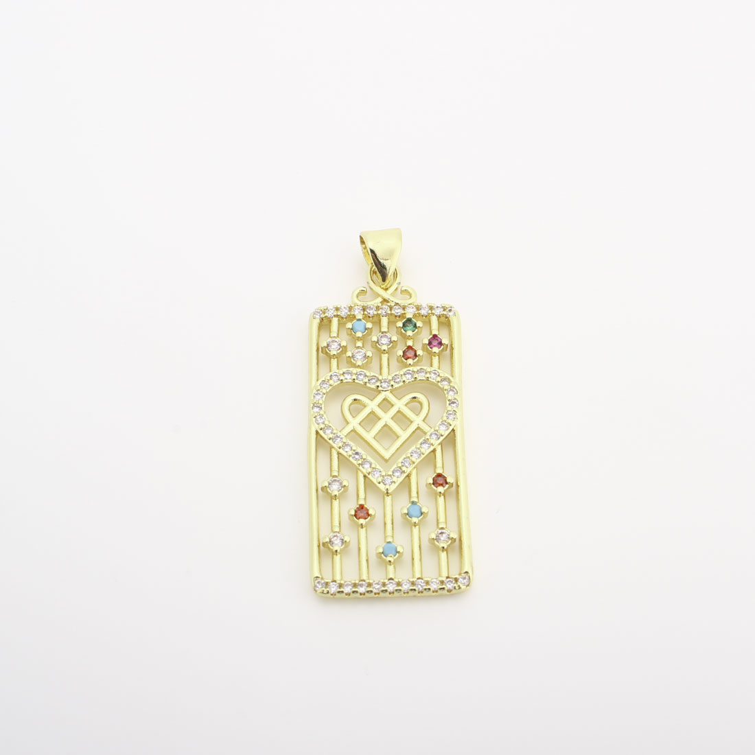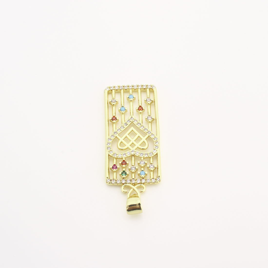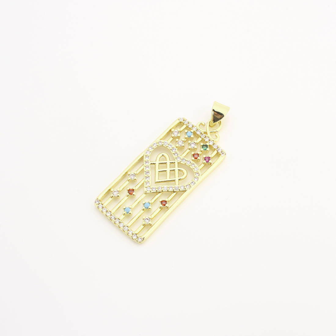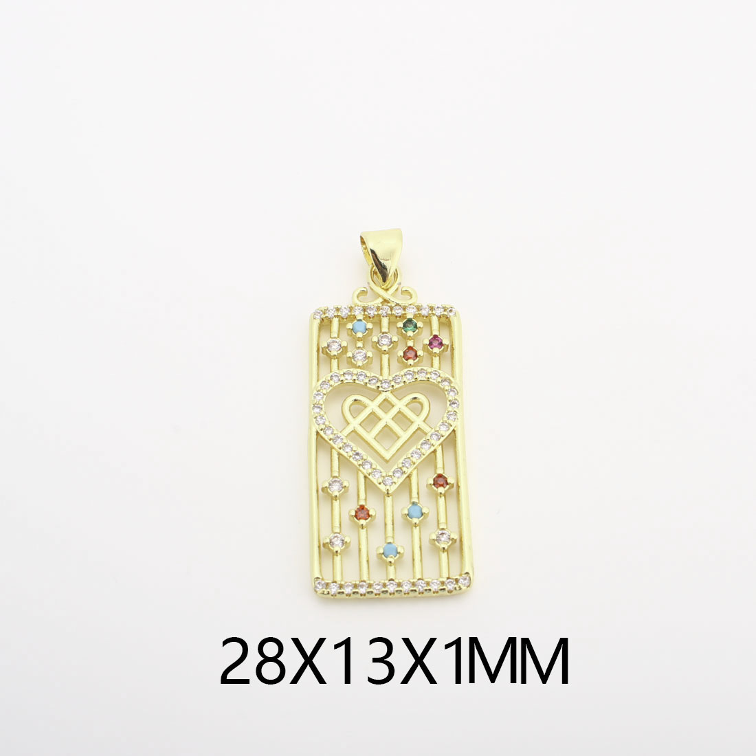 Cubique Pendentif en laiton zircon pavent, rectangle, DIY & pavé de micro zircon & creux, doré, 28x13x1mm, Vendu par PC