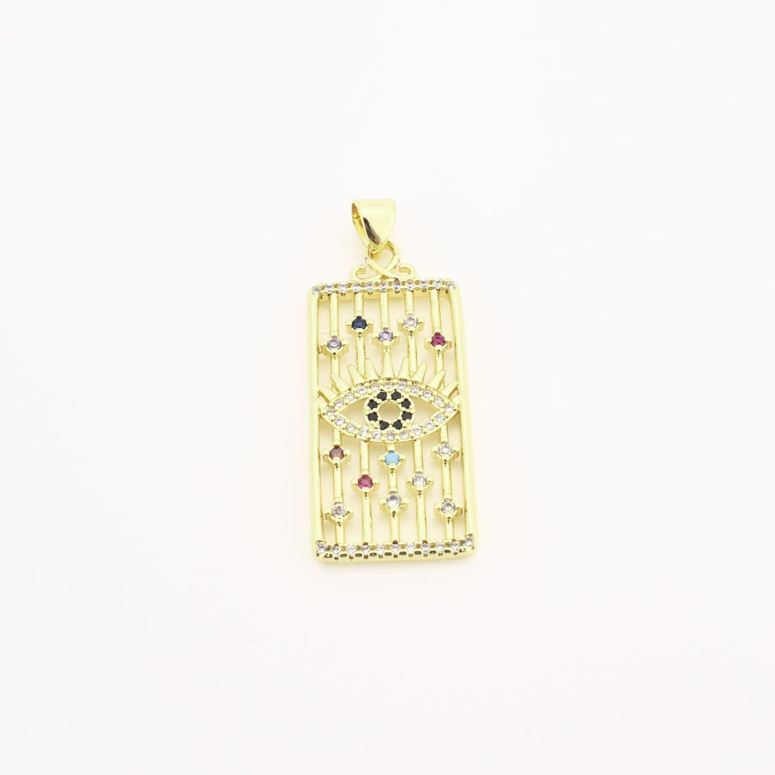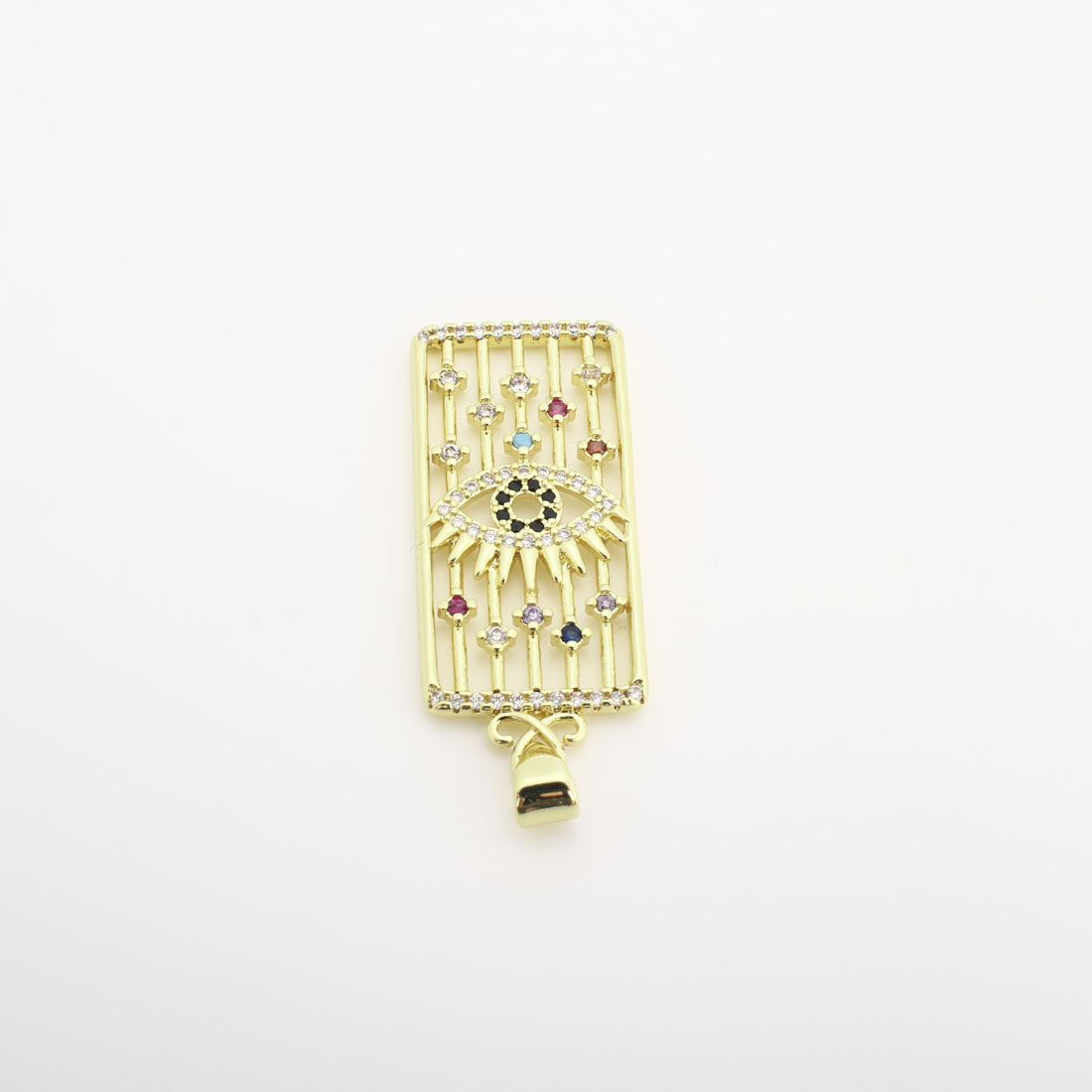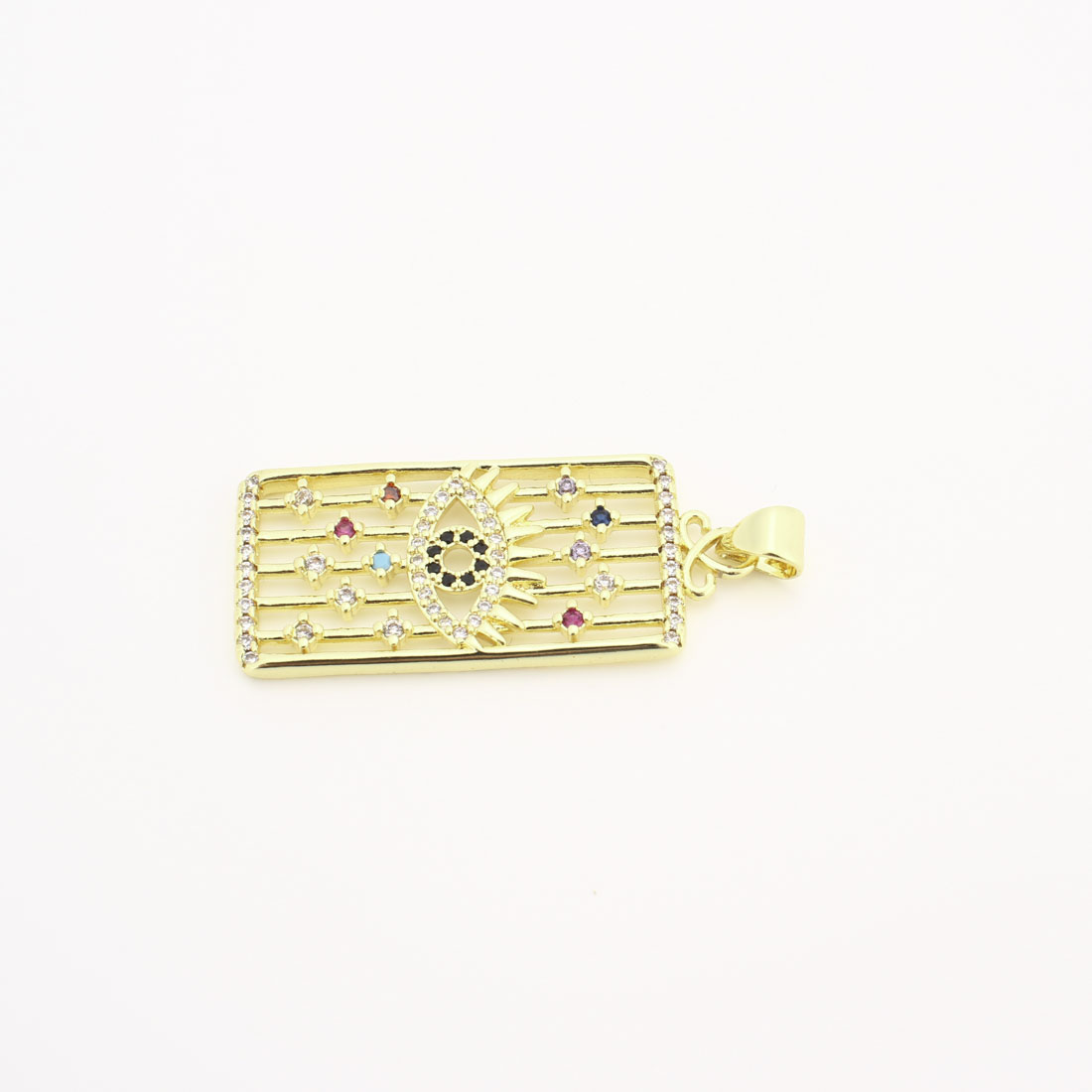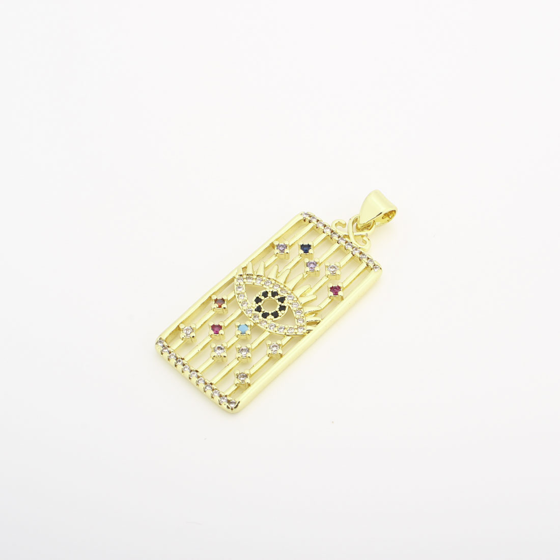 Cubique Pendentif en laiton zircon pavent, rectangle, DIY & pavé de micro zircon & creux, doré, 28x13x1mm, Vendu par PC