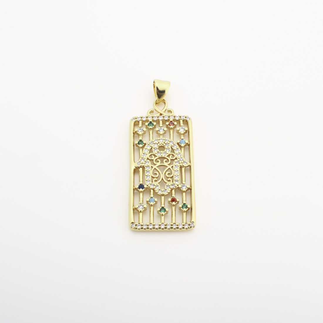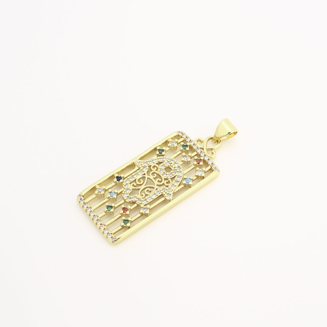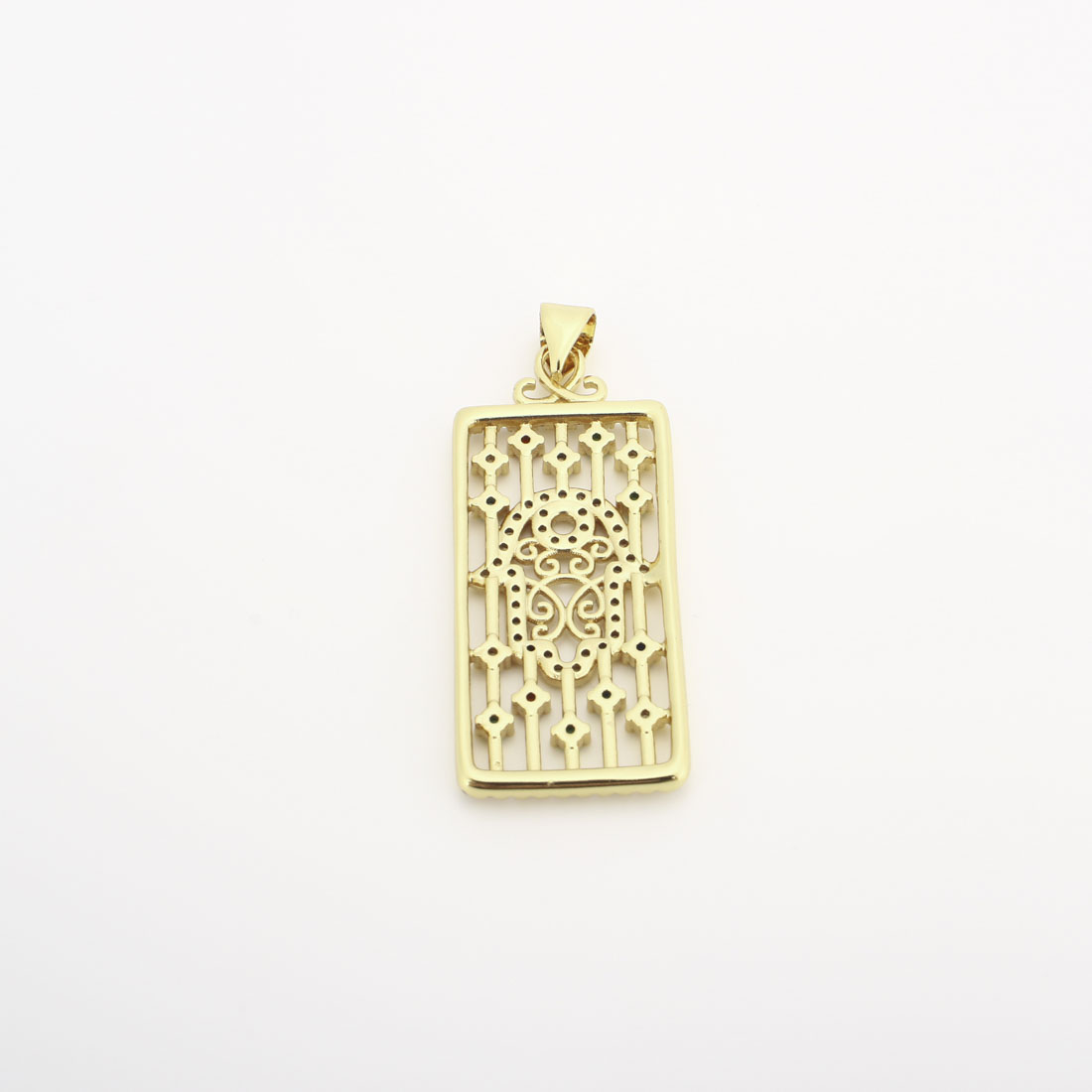 Cubique Pendentif en laiton zircon pavent, rectangle, DIY & pavé de micro zircon & creux, doré, 28x13x1mm, Vendu par PC