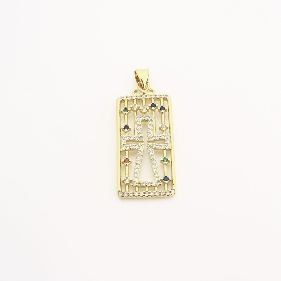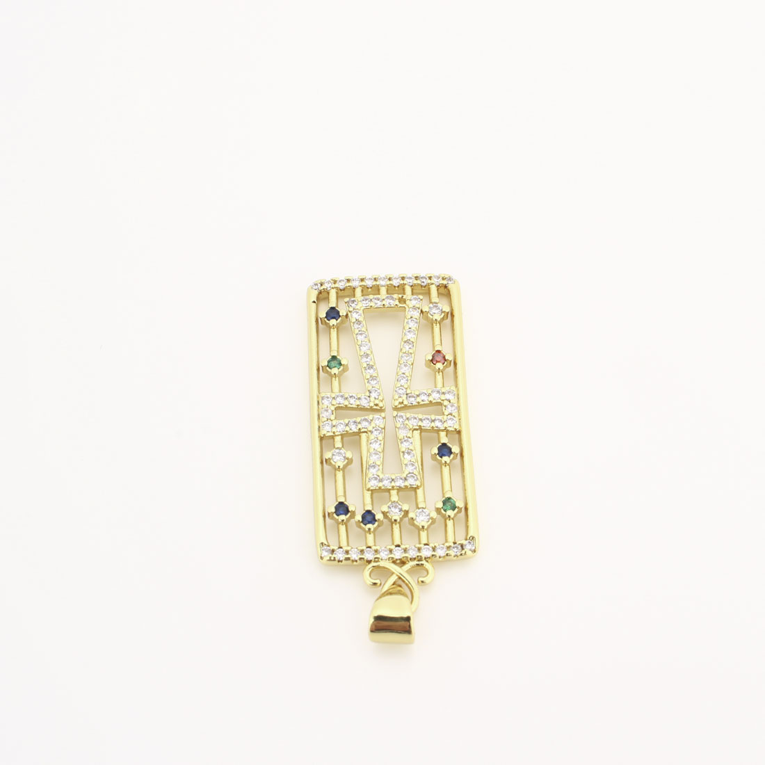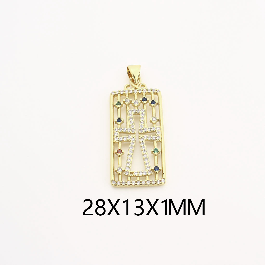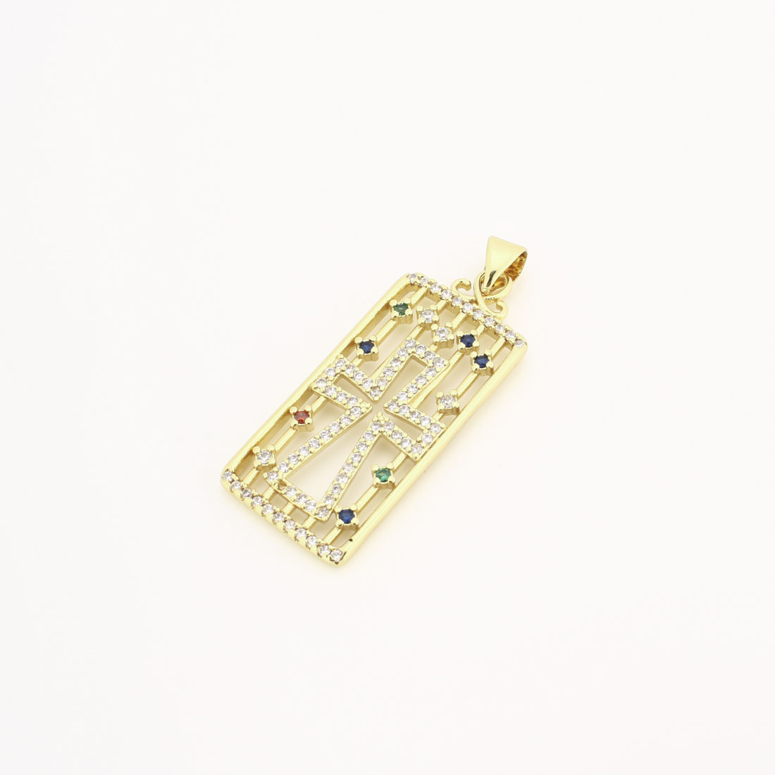 Cubique Pendentif en laiton zircon pavent, croix, Placage, DIY & pavé de micro zircon, plus de couleurs à choisir, protéger l'environnement, sans nickel, plomb et cadmium, 39x25.20x3.60mm, Vendu par PC