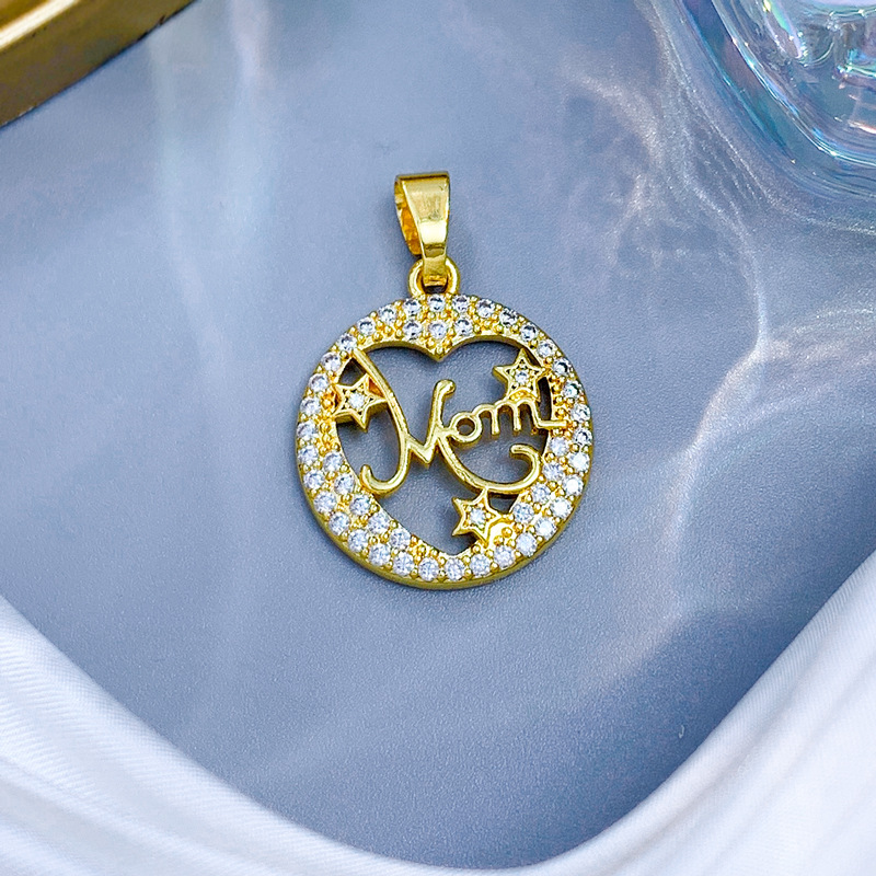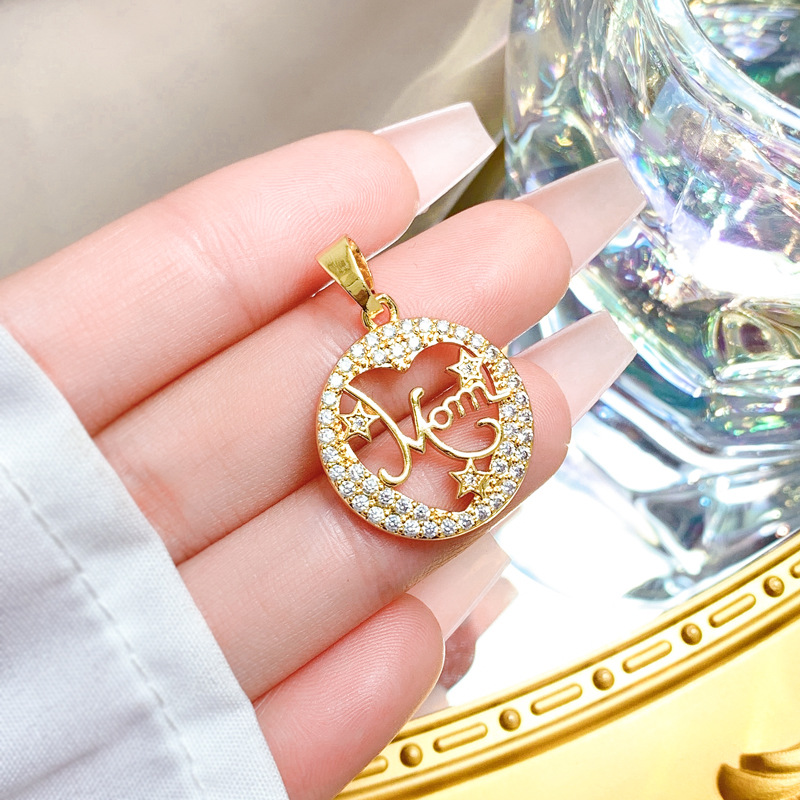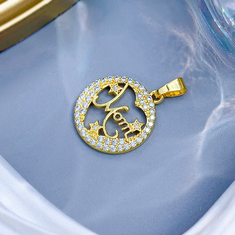 Cubique Pendentif en laiton zircon pavent, Rond, Plaqué d'or, DIY & pavé de micro zircon & creux, Vendu par PC