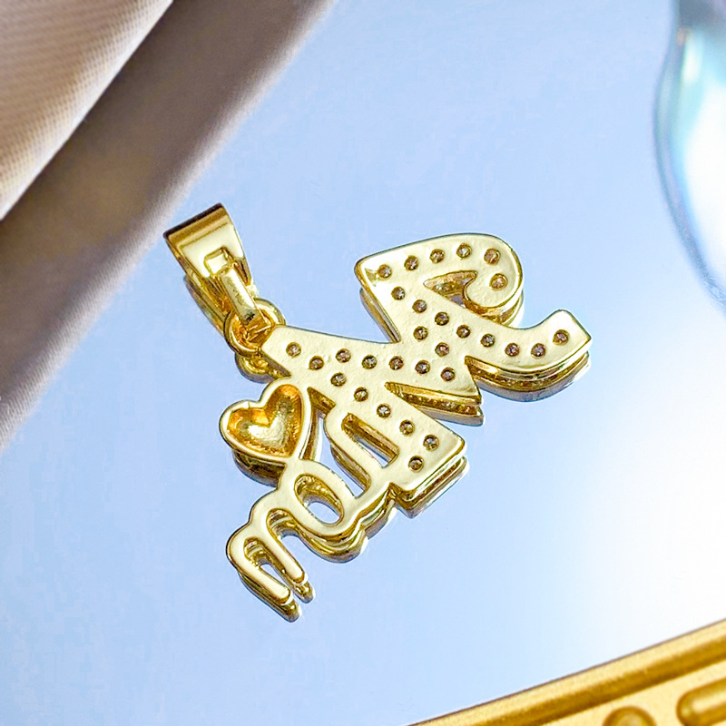 Cubique Pendentif en laiton zircon pavent, Lettre d’alphabet, Plaqué d'or, DIY & pavé de micro zircon & creux, Vendu par PC