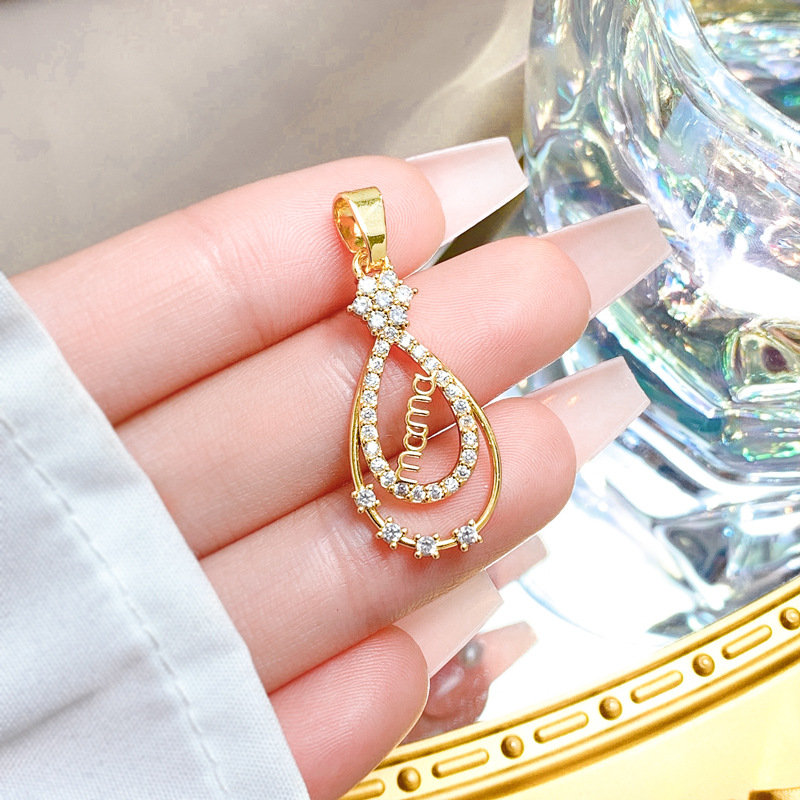 Cubique Pendentif en laiton zircon pavent, larme, Plaqué d'or, DIY & pavé de micro zircon & creux, Vendu par PC