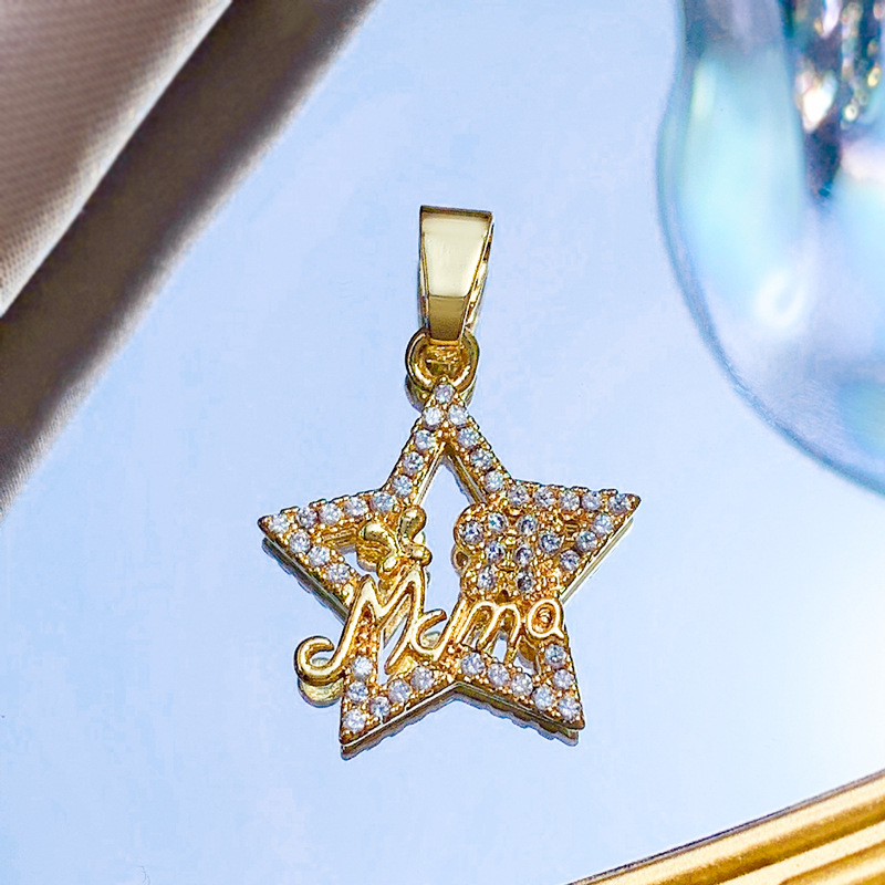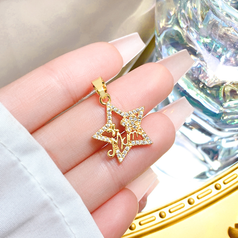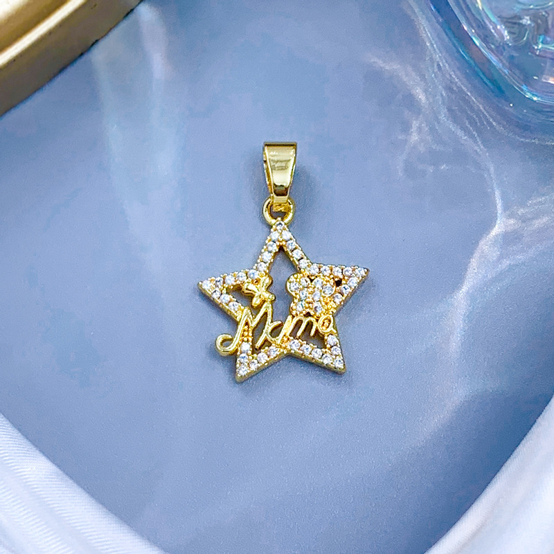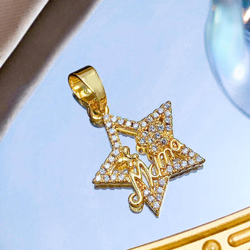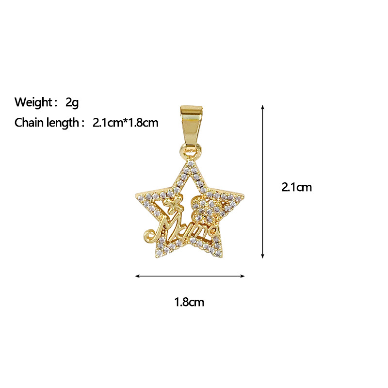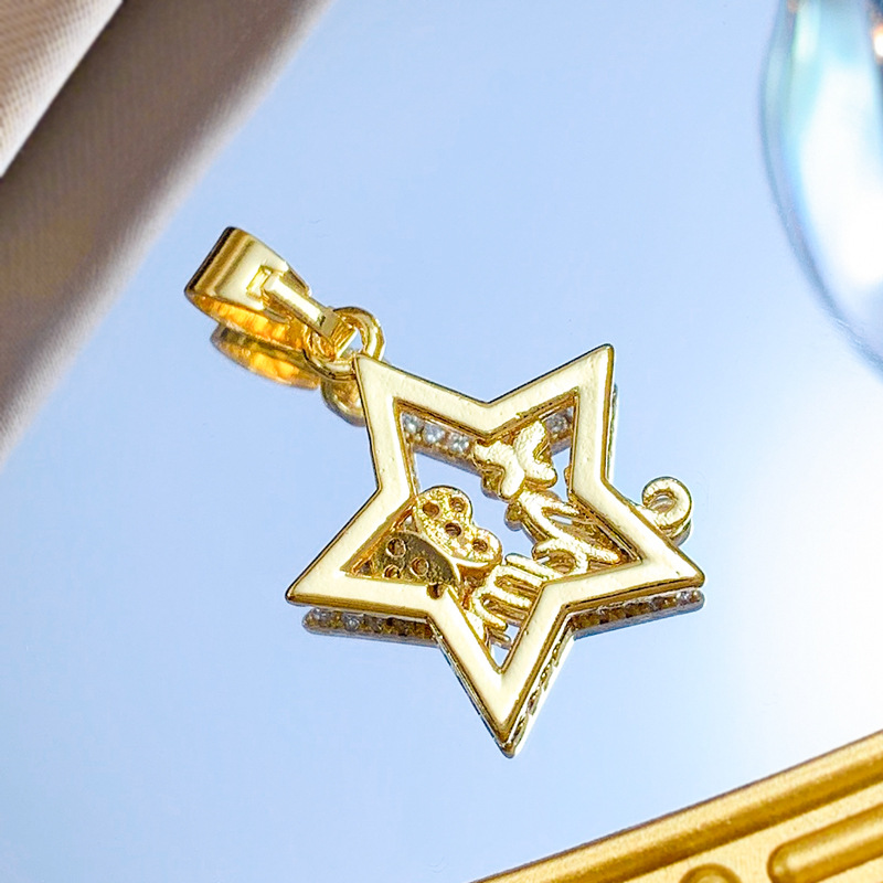 Cubique Pendentif en laiton zircon pavent, étoile, Plaqué d'or, DIY & pavé de micro zircon & creux, Vendu par PC