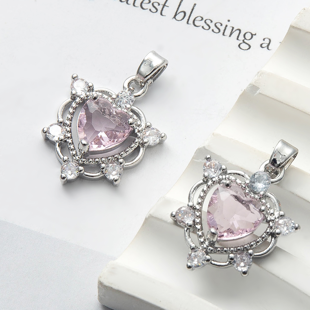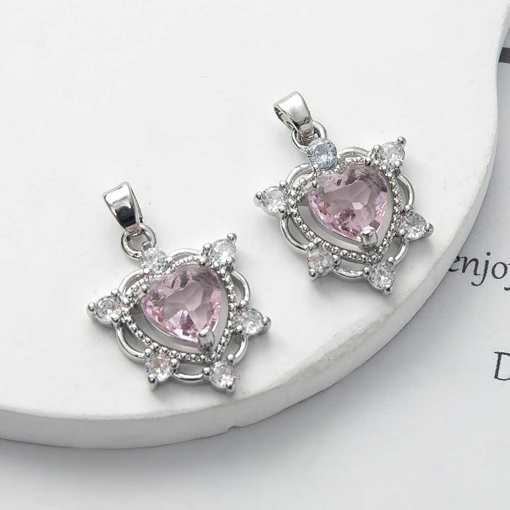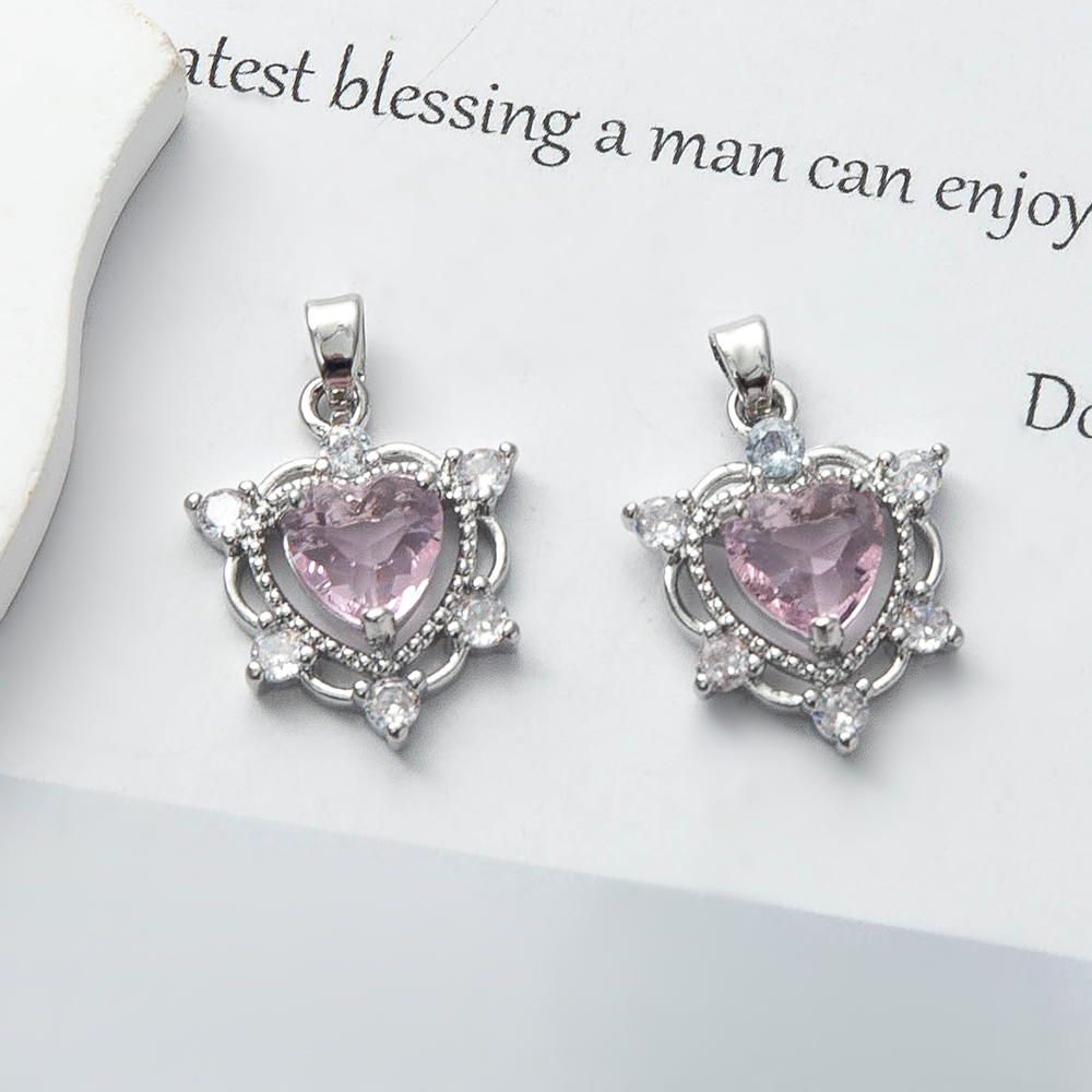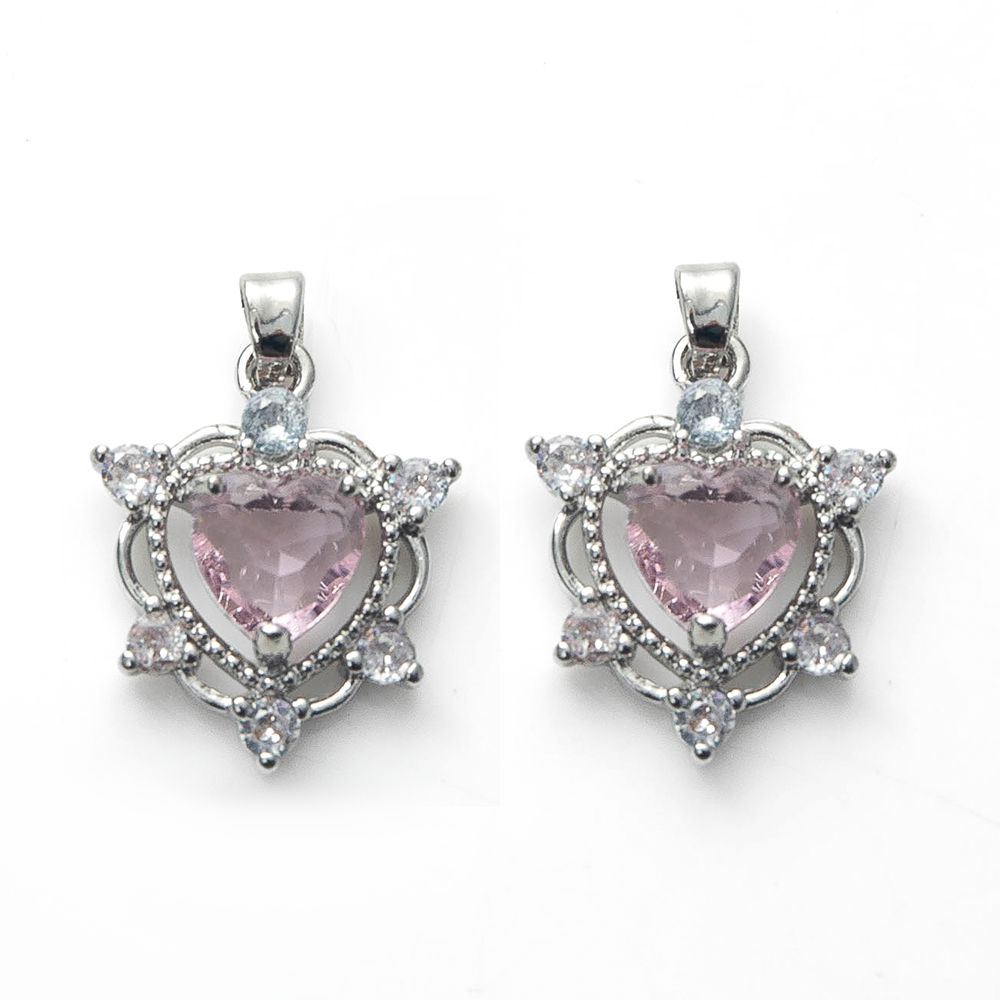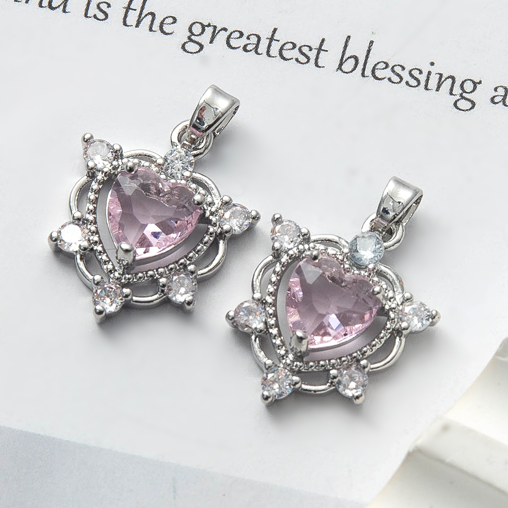 Cubique Pendentif en laiton zircon pavent, coeur, Placage de couleur argentée, DIY & pavé de micro zircon, protéger l'environnement, sans nickel, plomb et cadmium, 17.26x5.63x25mm, 20PC/sac, Vendu par sac