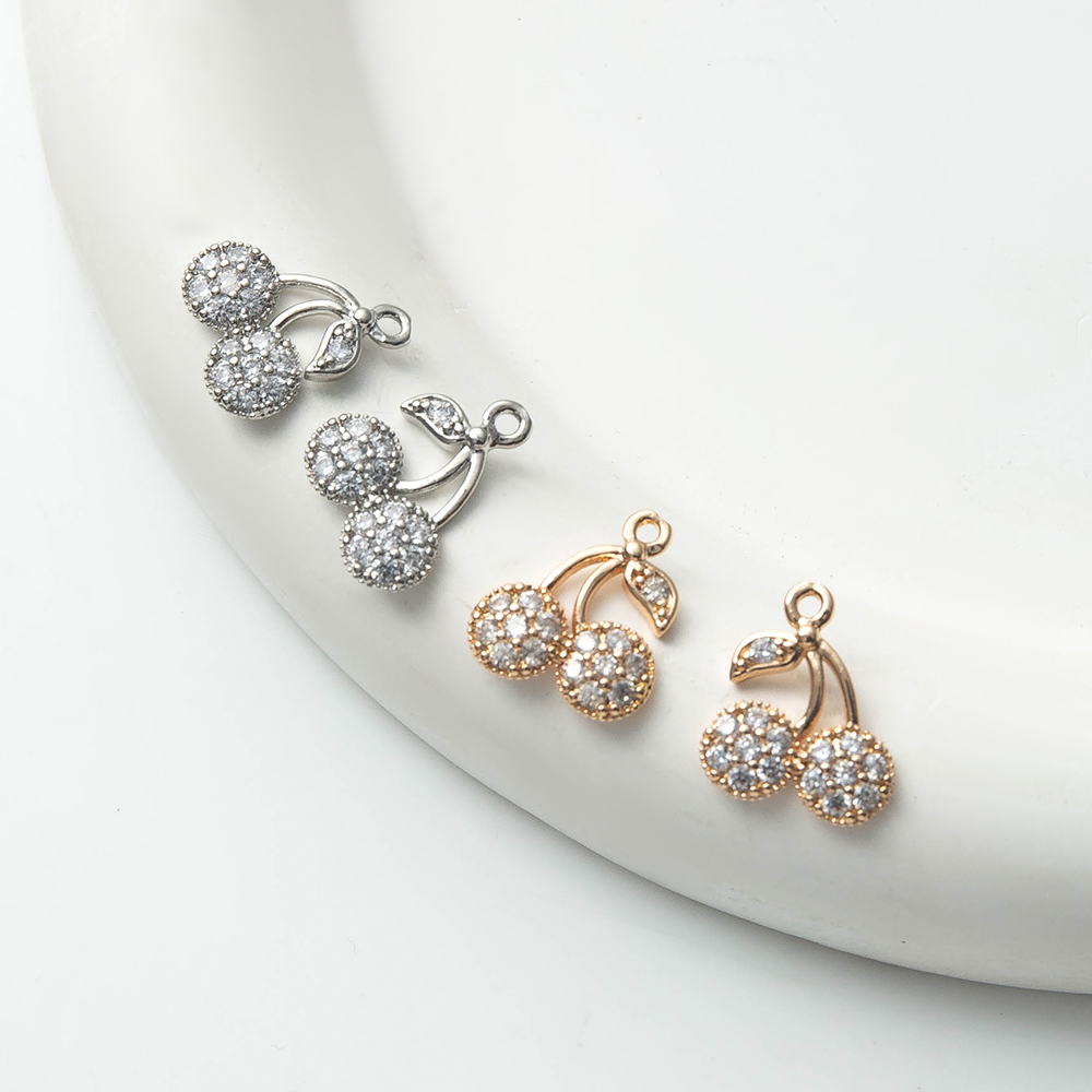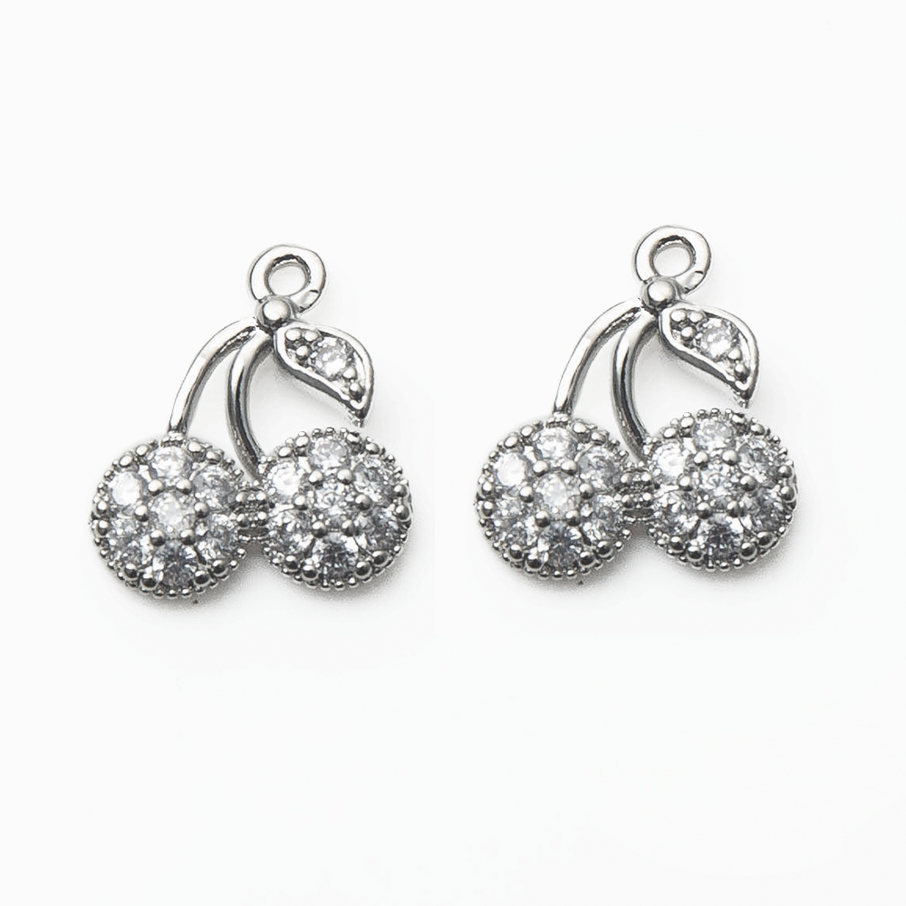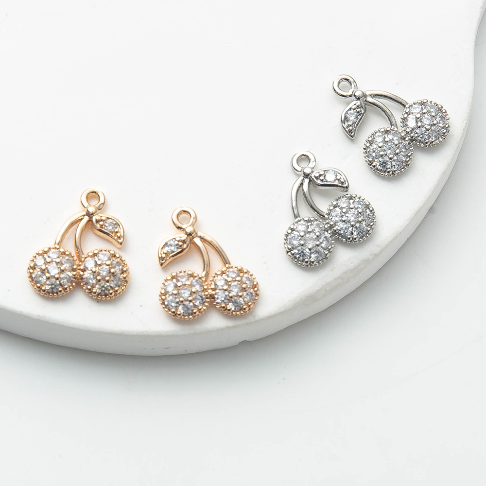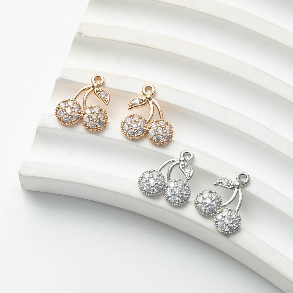 Cubique Pendentif en laiton zircon pavent, cerise, Placage, DIY & pavé de micro zircon, plus de couleurs à choisir, protéger l'environnement, sans nickel, plomb et cadmium, 12.26x2.39x14.17mm, 20PC/sac, Vendu par sac