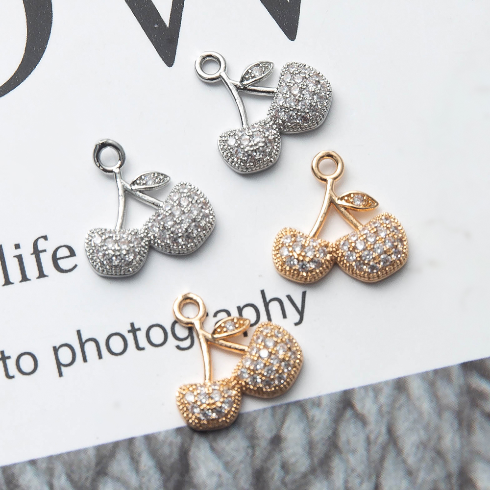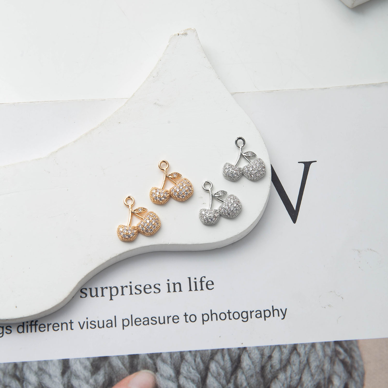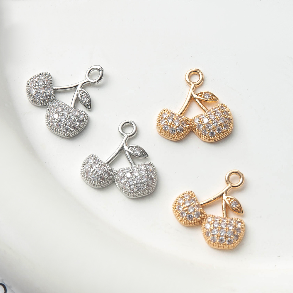 Cubique Pendentif en laiton zircon pavent, cerise, Placage, DIY & pavé de micro zircon, plus de couleurs à choisir, protéger l'environnement, sans nickel, plomb et cadmium, 15.33x3.50x15.60mm, 20PC/sac, Vendu par sac