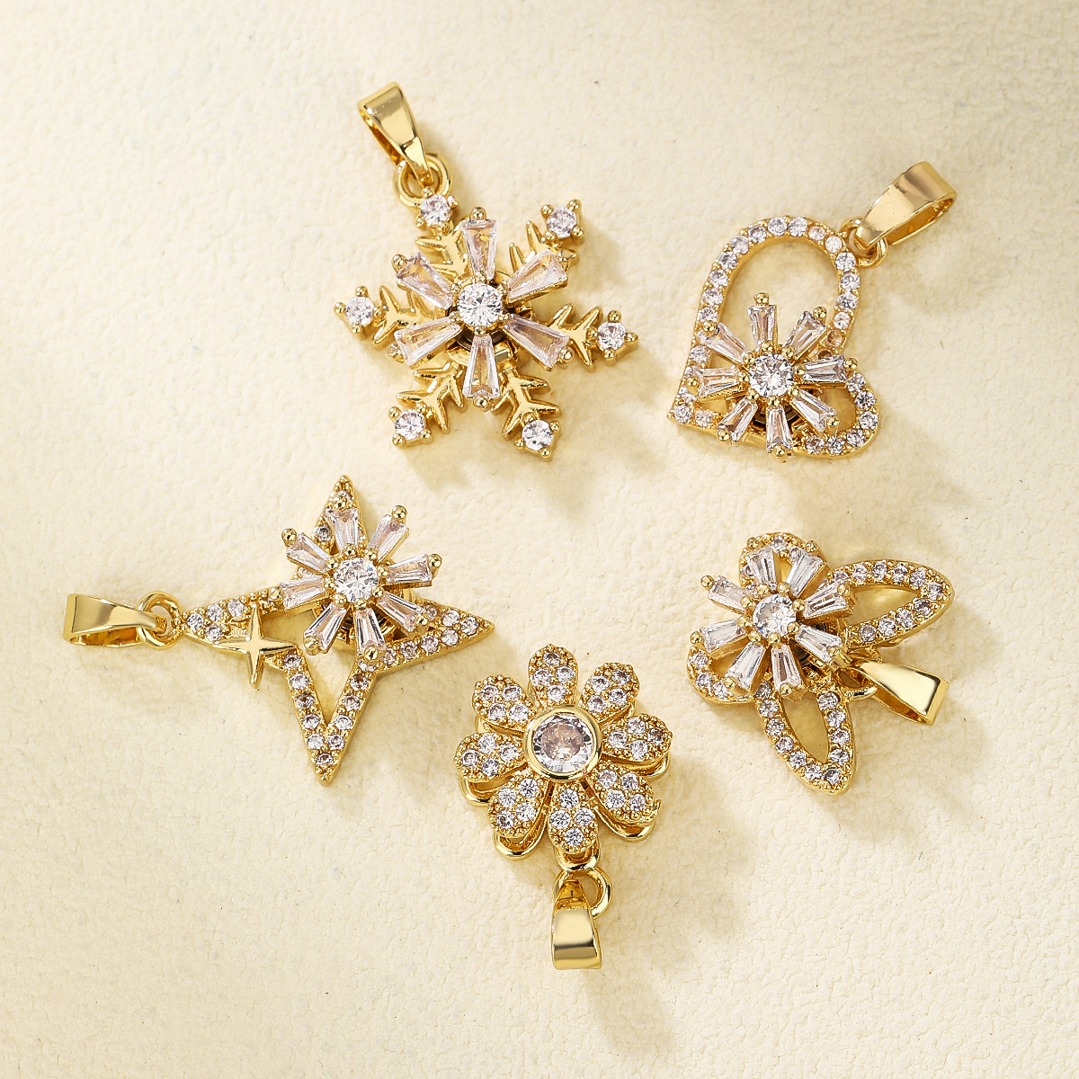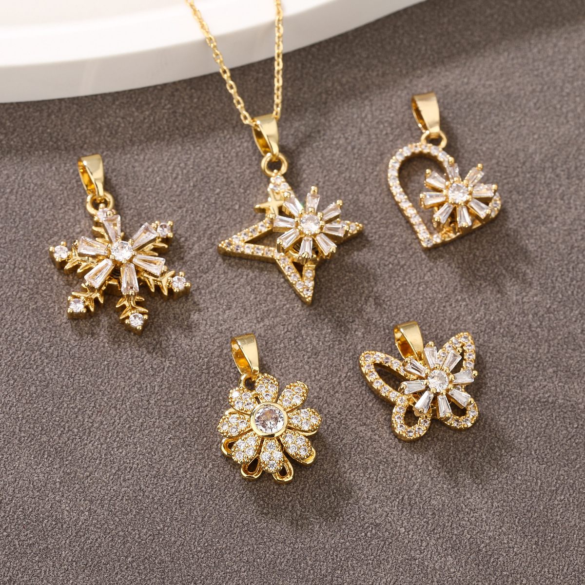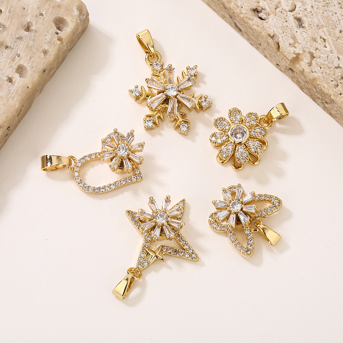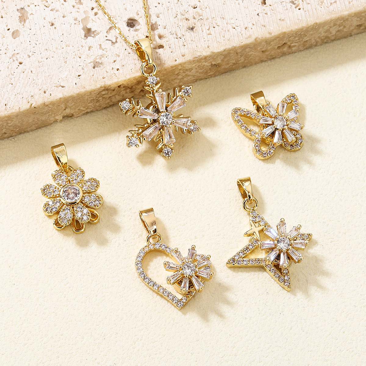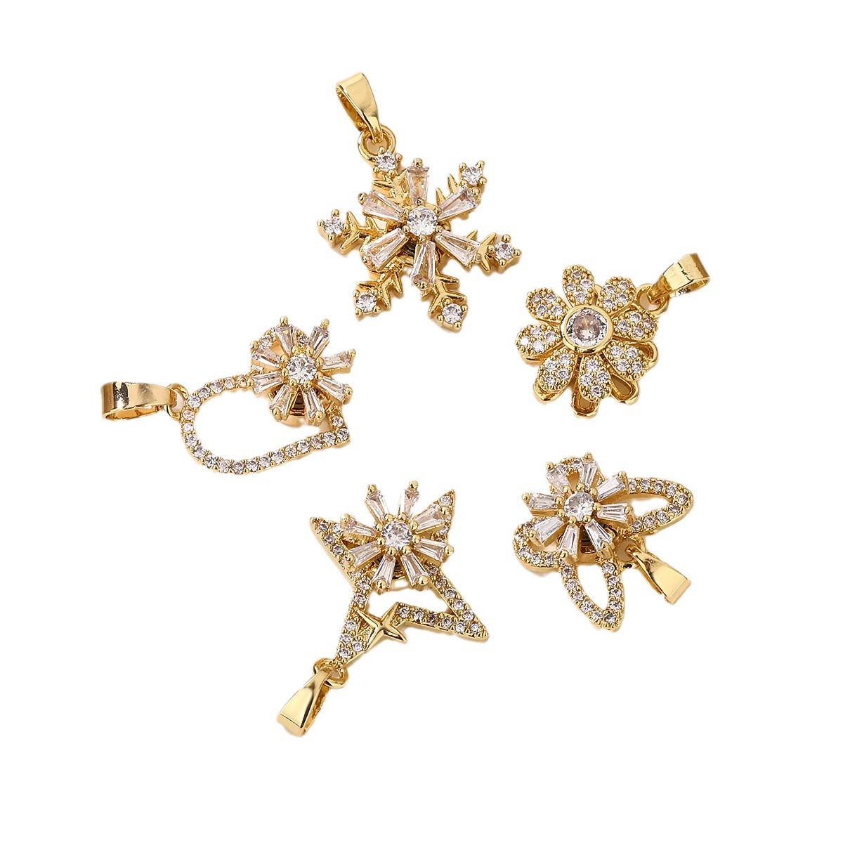 Cubique Pendentif en laiton zircon pavent, fleur, Plaqué or 18K, styles différents pour le choix & pavé de micro zircon & pour femme, Vendu par PC