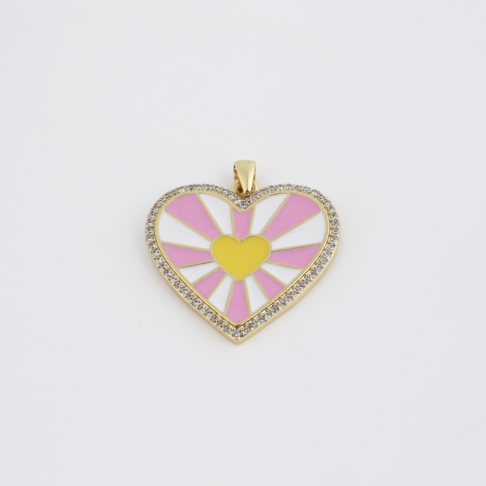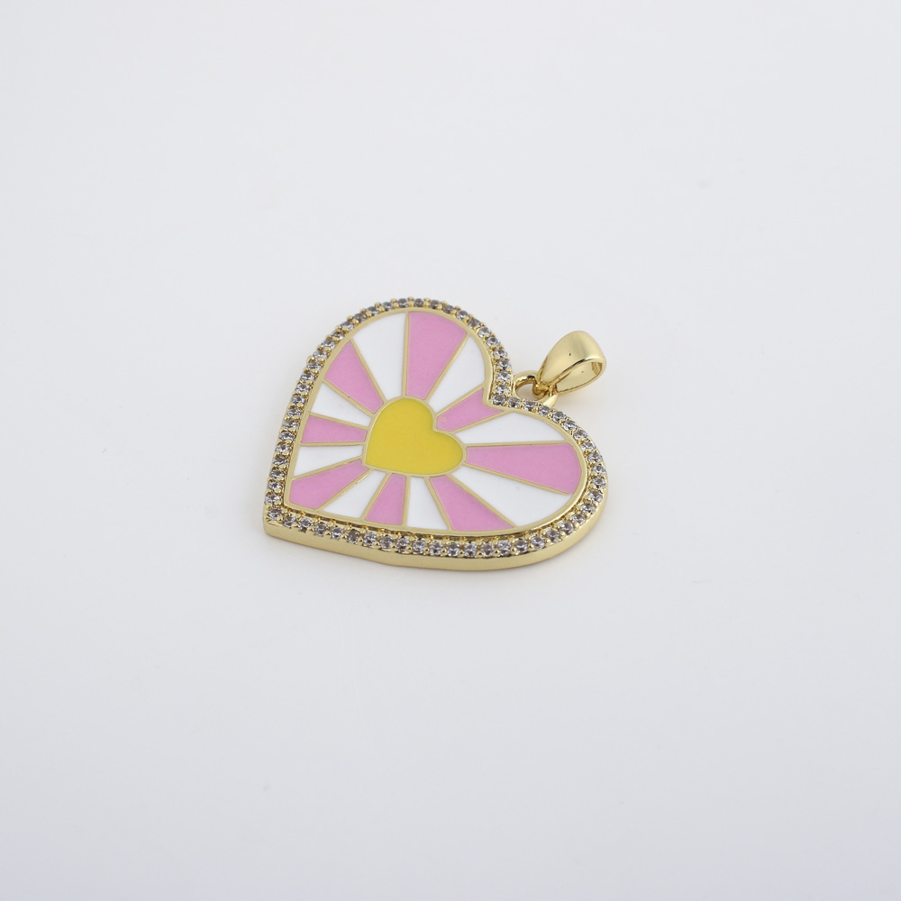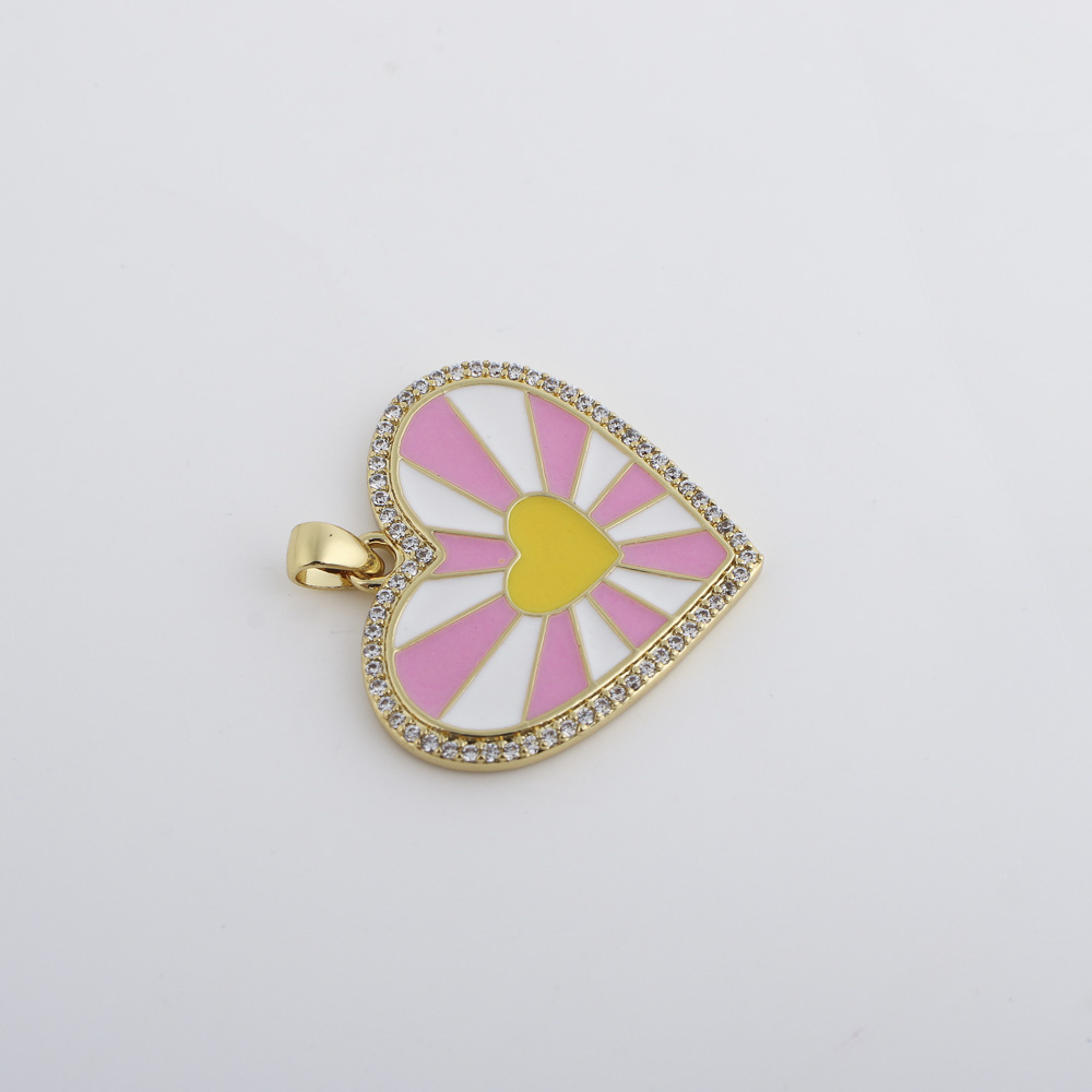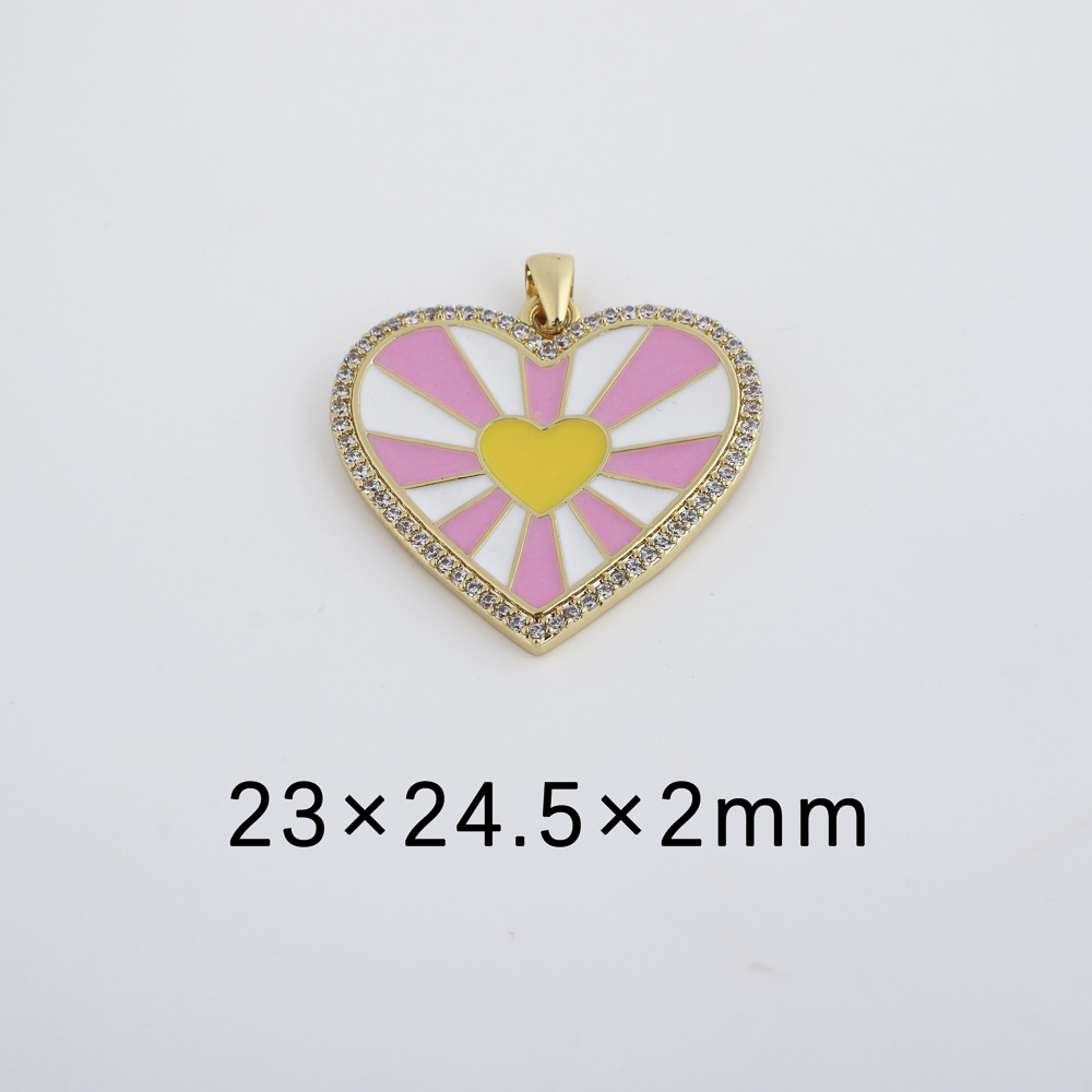Cubique Pendentif en laiton zircon pavent, coeur, Placage de couleur d'or, DIY & pavé de micro zircon & émail, 23x24.50x2mm, Vendu par PC