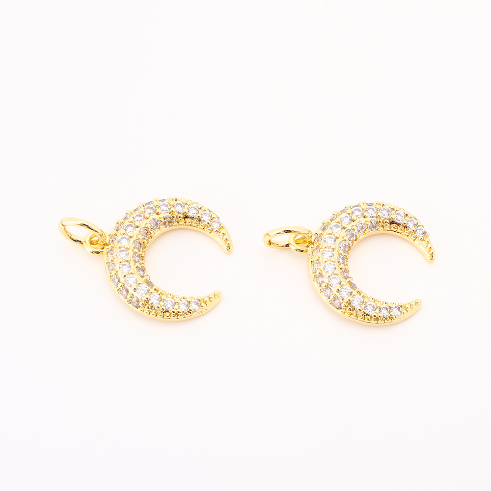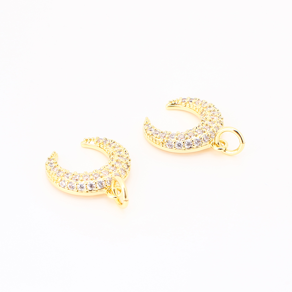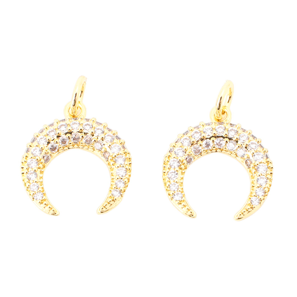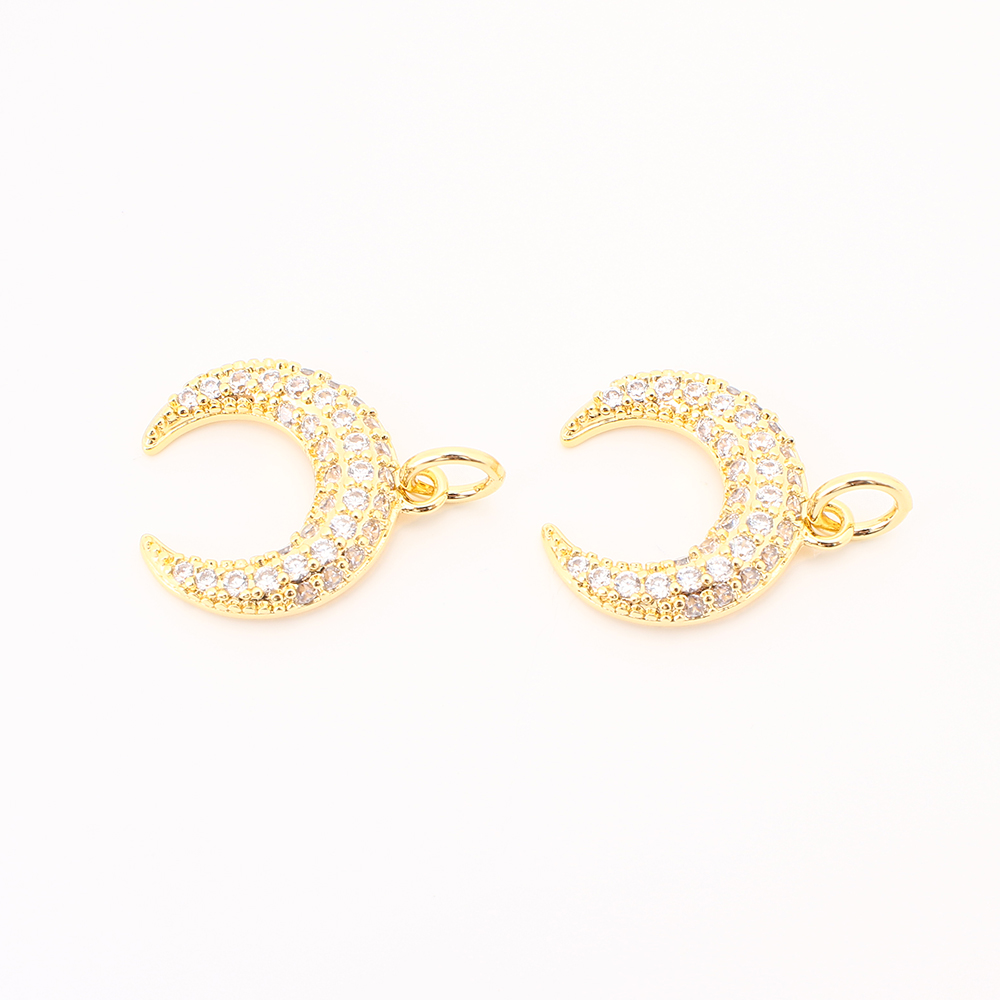 Cubique Pendentif en laiton zircon pavent, lune, DIY & pavé de micro zircon, Or, 15x13x2.50mm, Vendu par PC