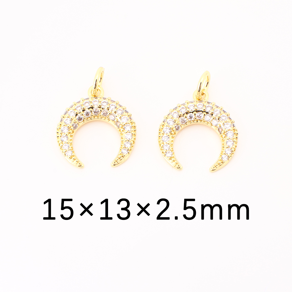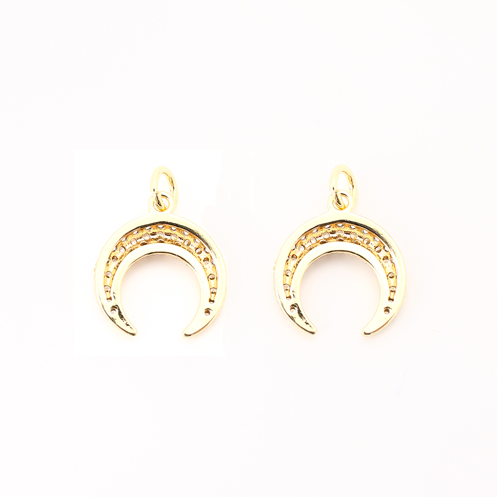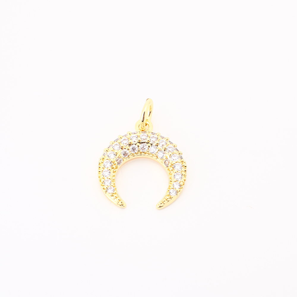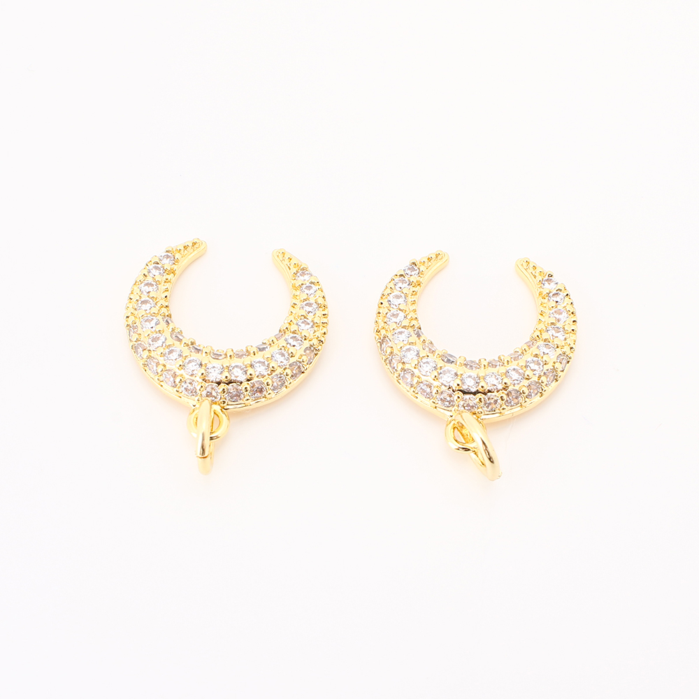 Cubique Pendentif en laiton zircon pavent, lune, DIY & pavé de micro zircon, Or, 15x13x2.50mm, Vendu par PC