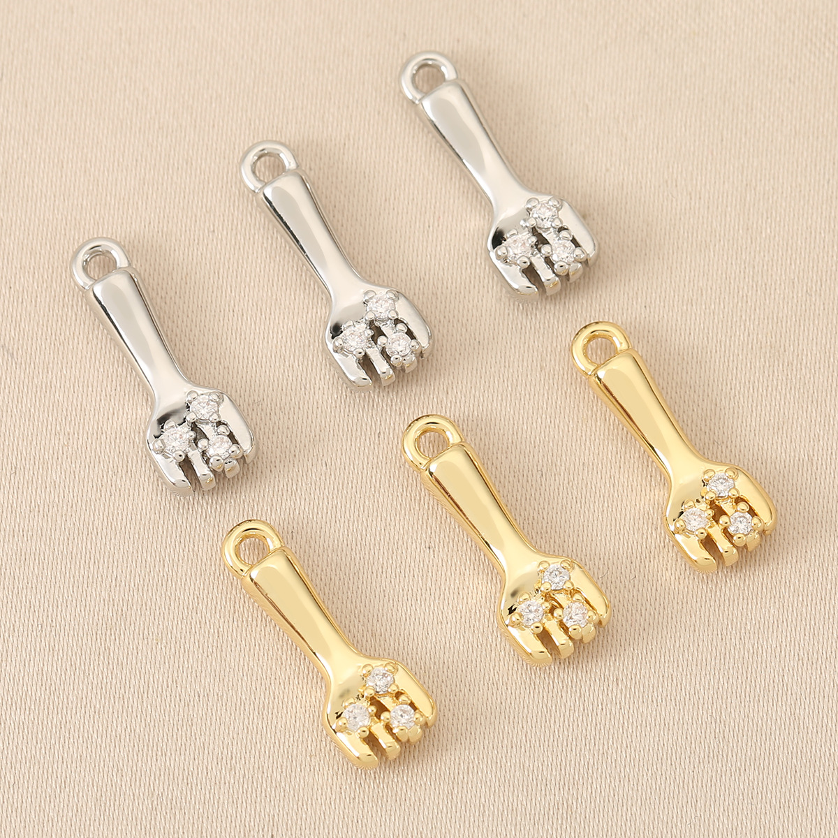 Cubique Pendentif en laiton zircon pavent, Fourche, Placage, DIY & pavé de micro zircon, plus de couleurs à choisir, protéger l'environnement, sans nickel, plomb et cadmium, 10PC/sac, Vendu par sac