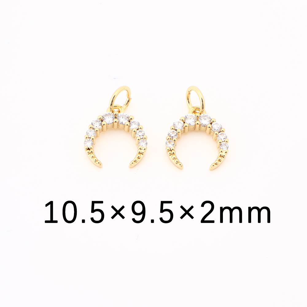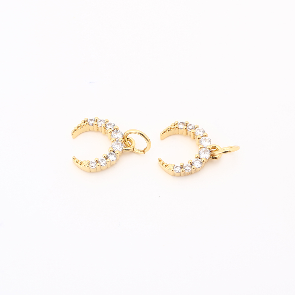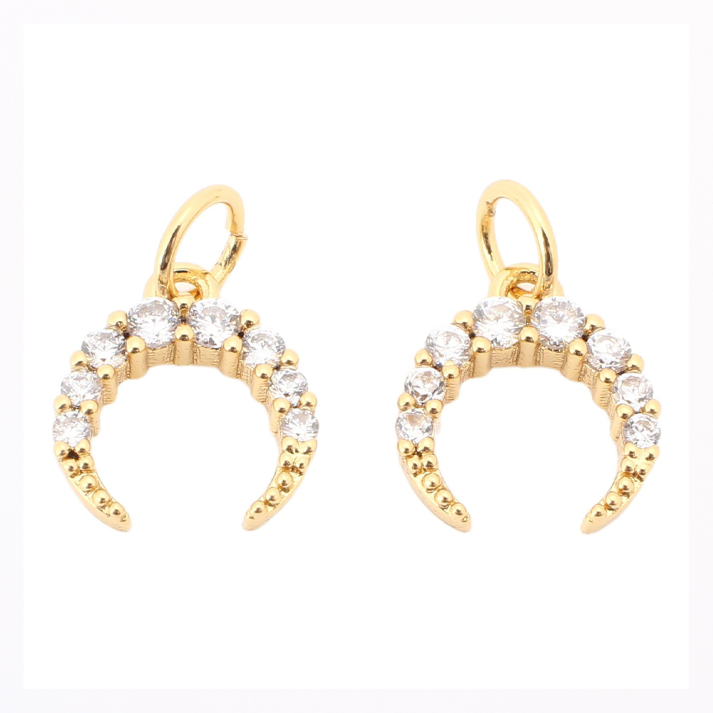 Cubique Pendentif en laiton zircon pavent, lune, DIY & pavé de micro zircon, Or, 10.50x9.50x2mm, Vendu par PC