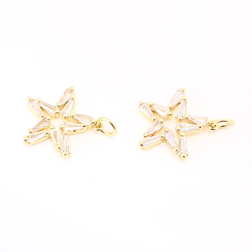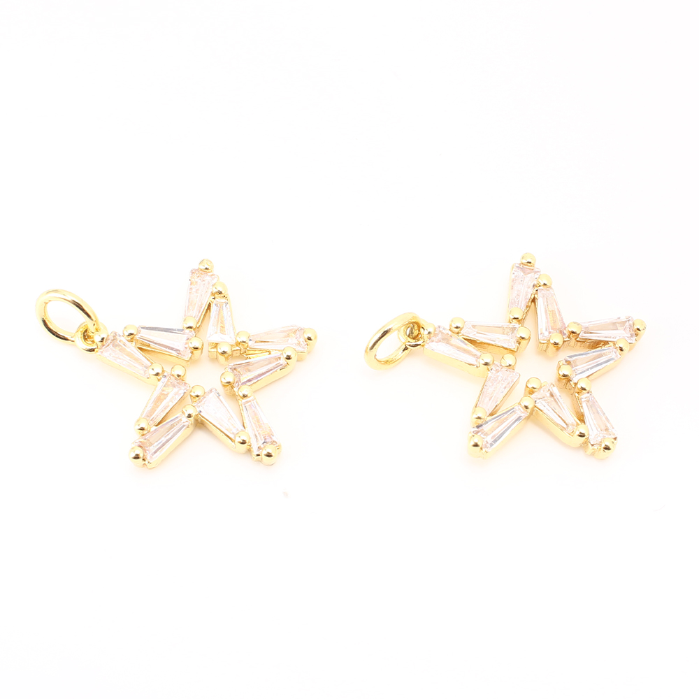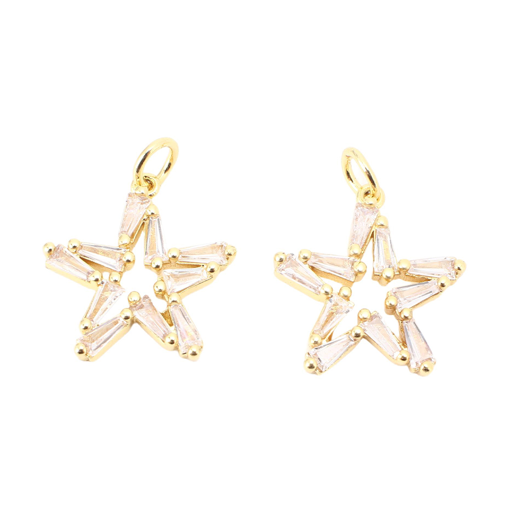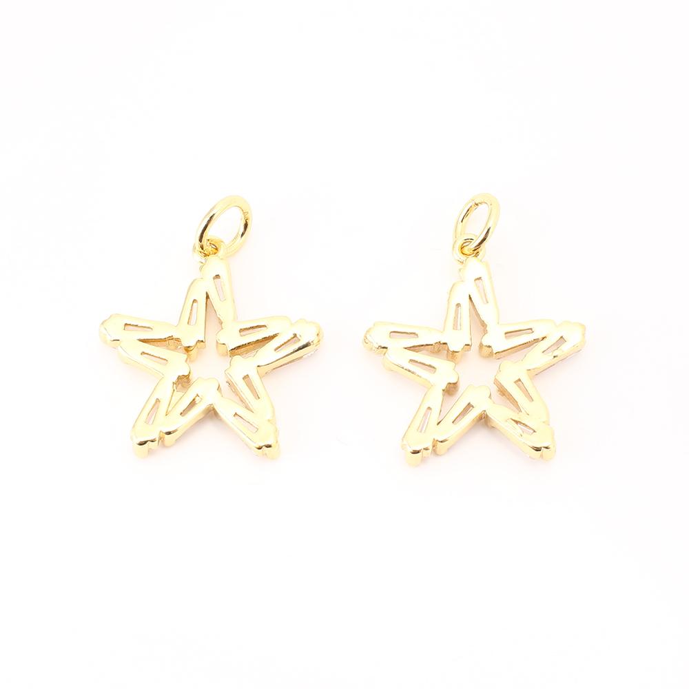 Cubique Pendentif en laiton zircon pavent, étoile, DIY & pavé de micro zircon & creux, doré, 16.50x16x3mm, Vendu par PC