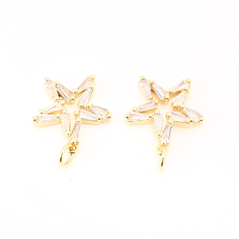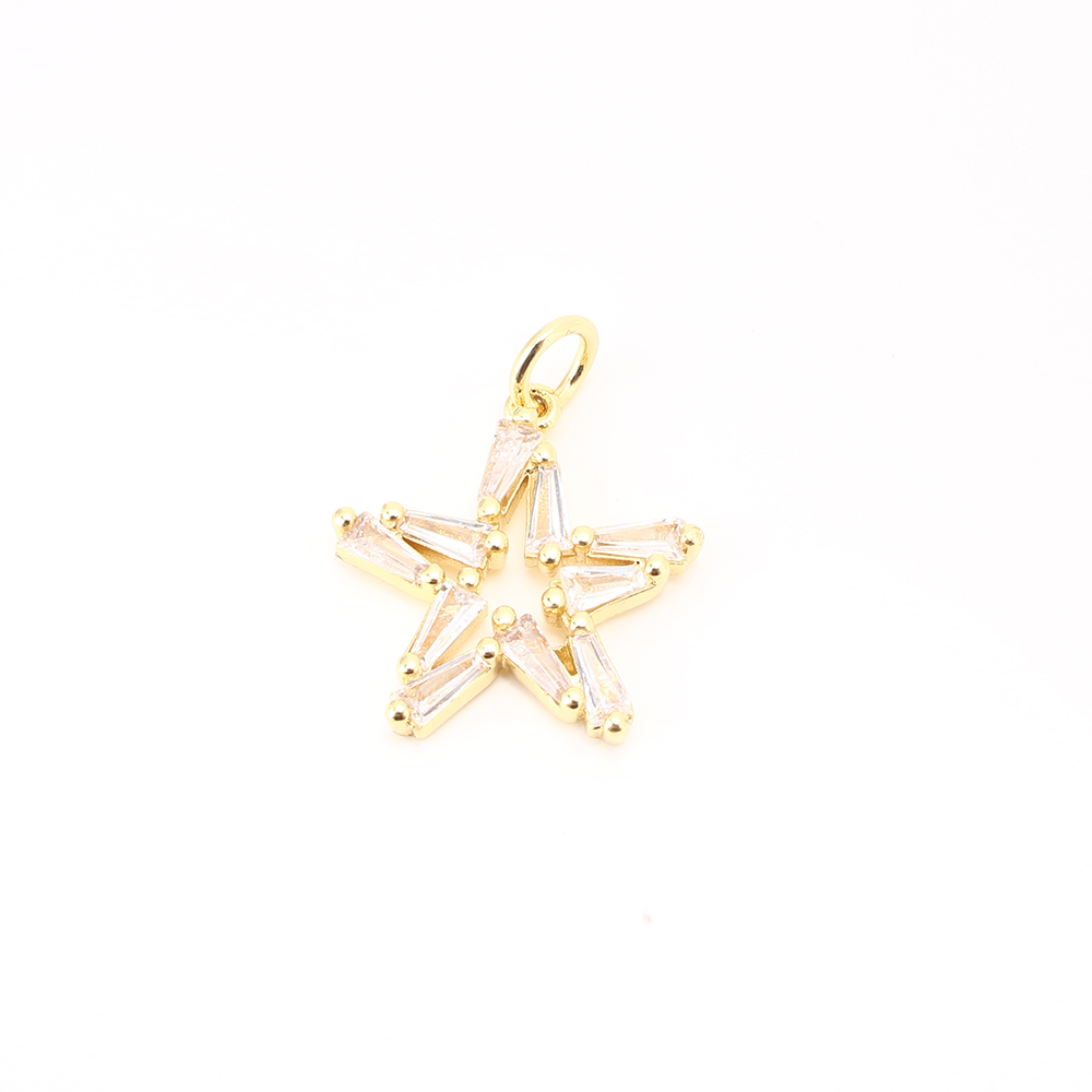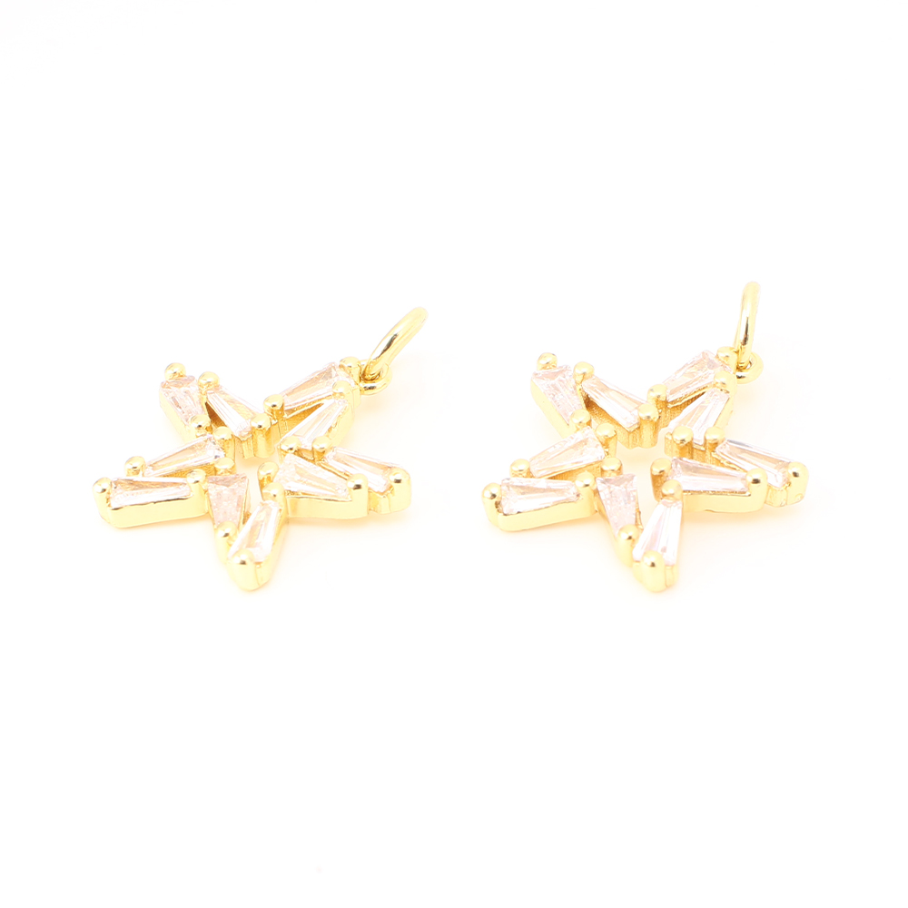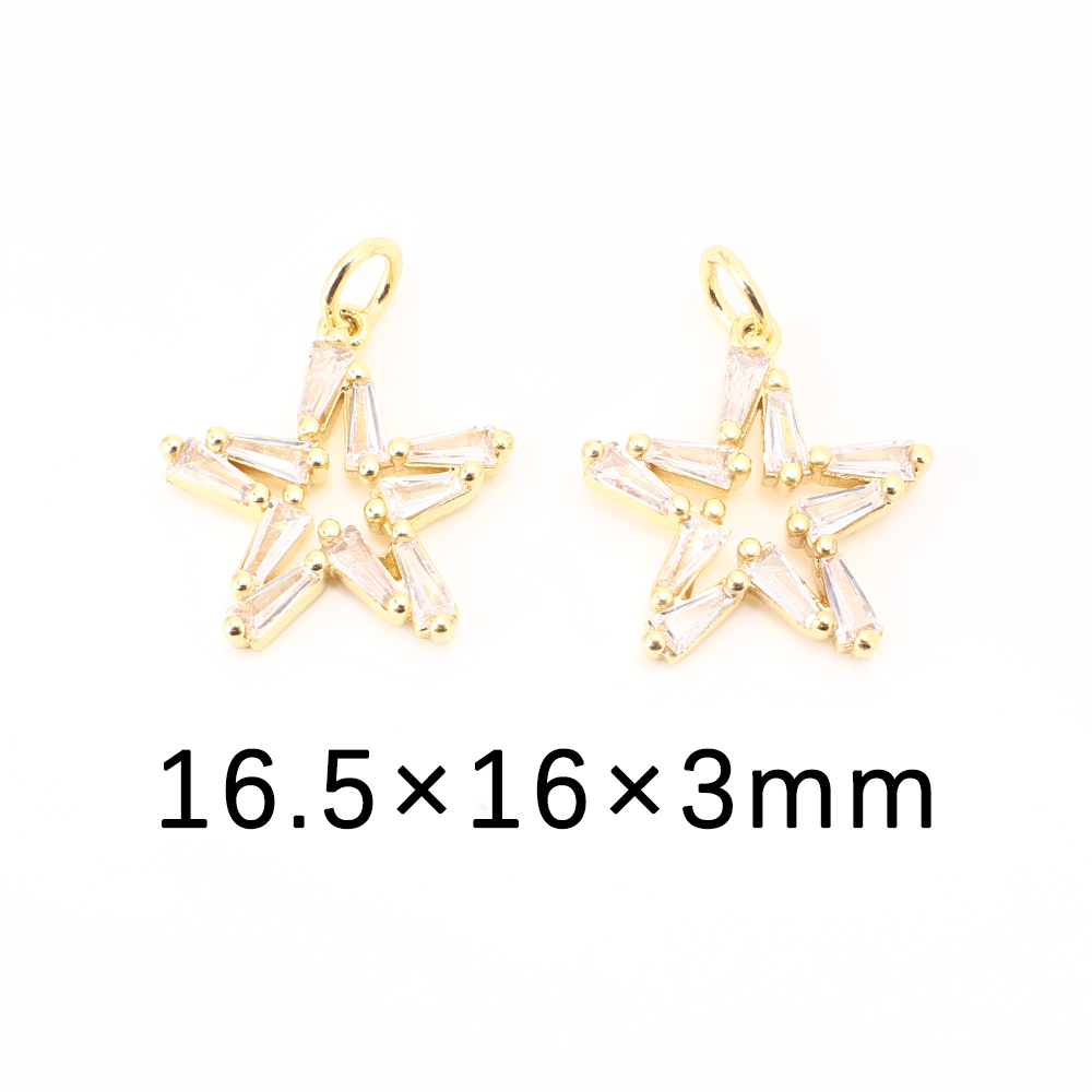 Cubique Pendentif en laiton zircon pavent, étoile, DIY & pavé de micro zircon & creux, doré, 16.50x16x3mm, Vendu par PC