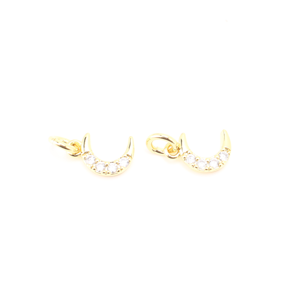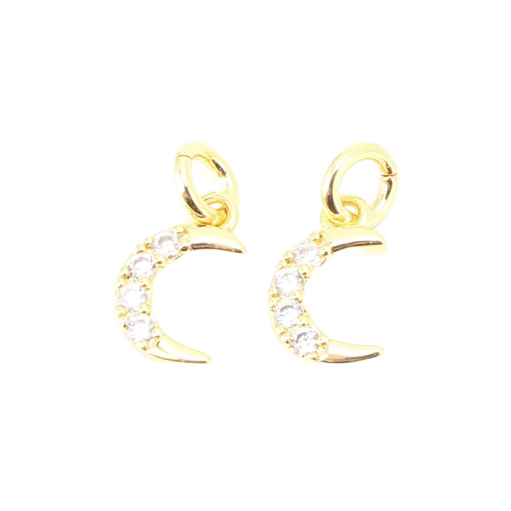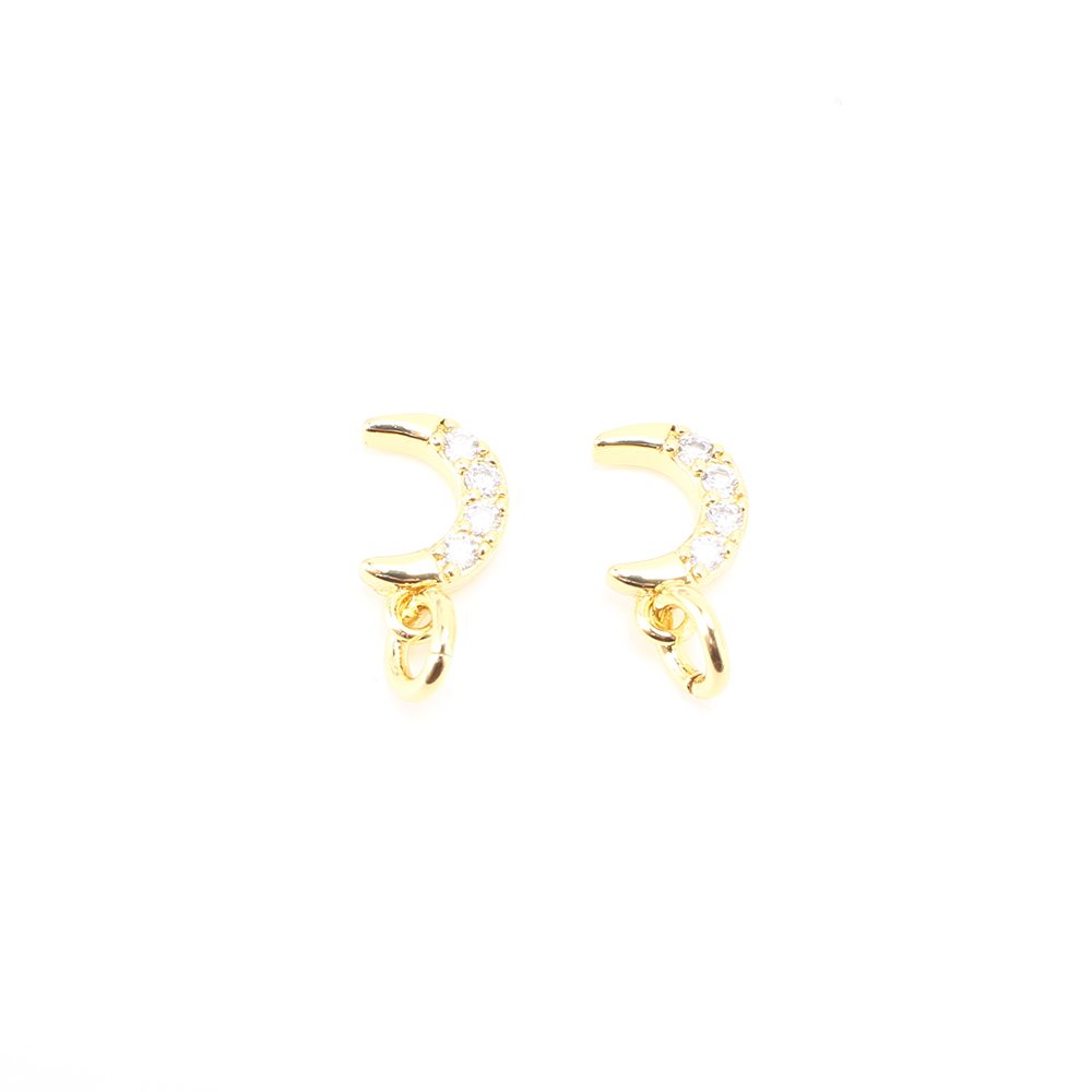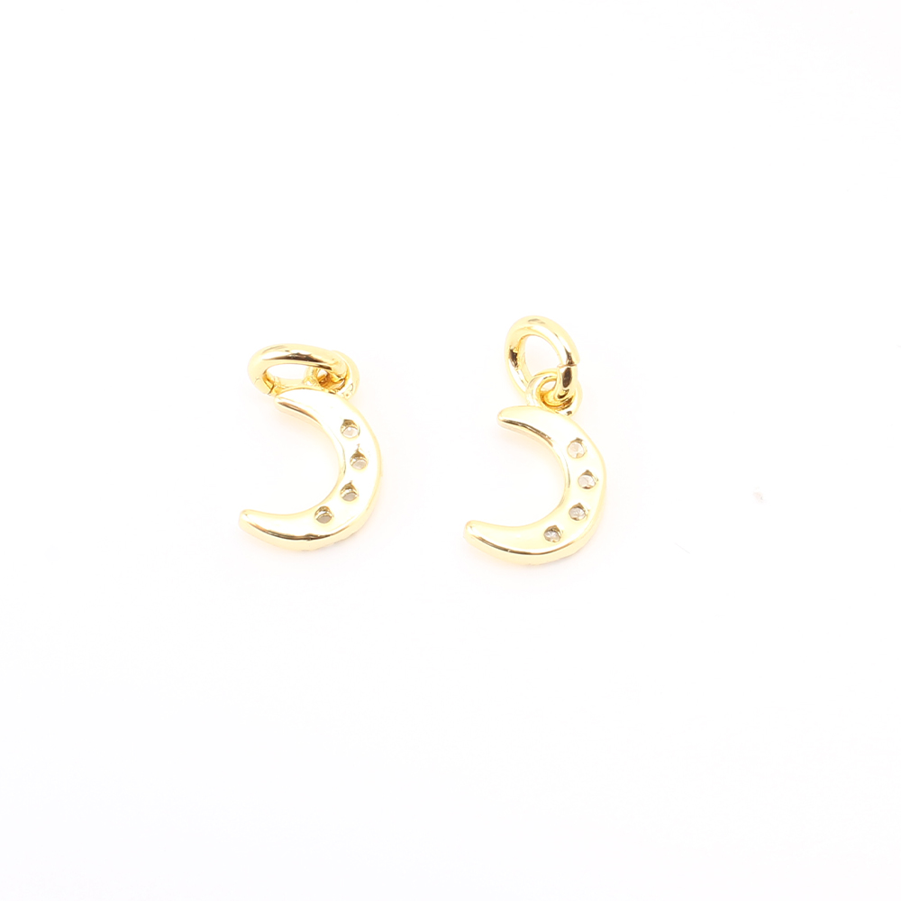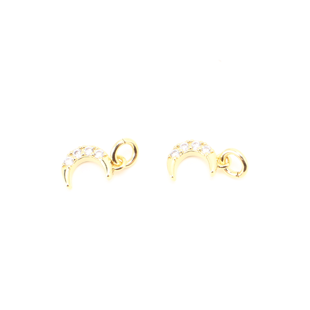 Cubique Pendentif en laiton zircon pavent, lune, DIY & pavé de micro zircon, doré, 8x5x1.50mm, Vendu par PC