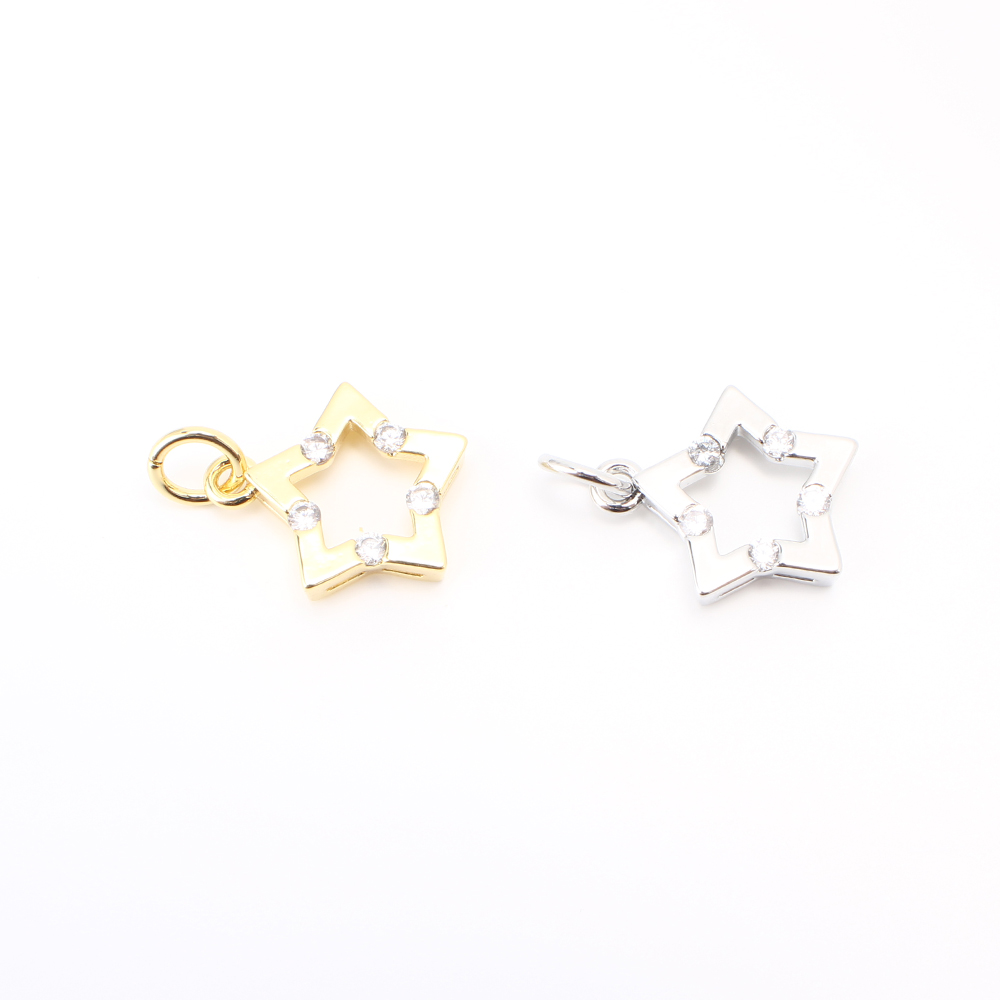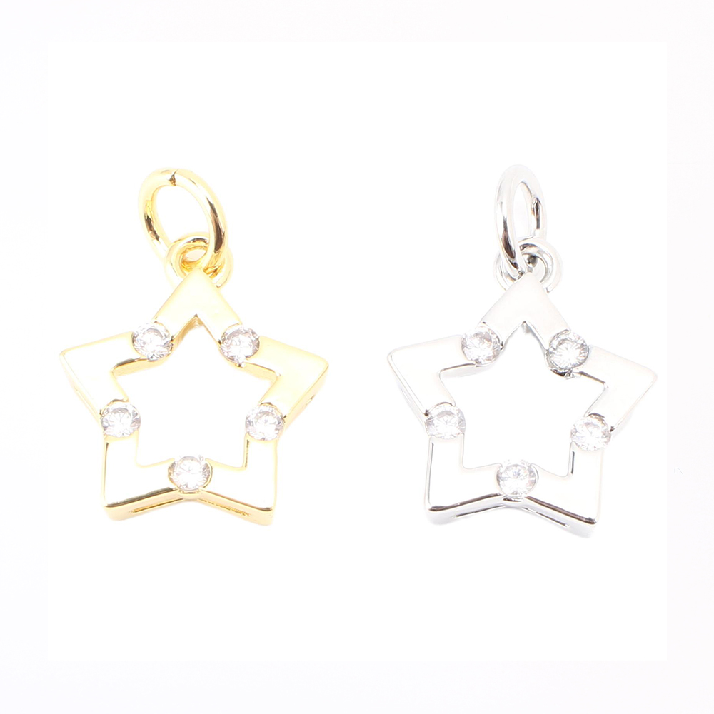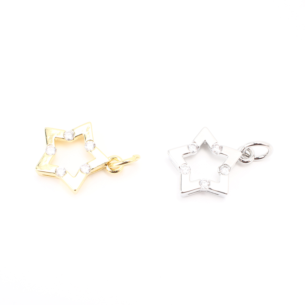Cubique Pendentif en laiton zircon pavent, étoile, DIY & pavé de micro zircon & creux, plus de couleurs à choisir, 13x11x3mm, Vendu par PC