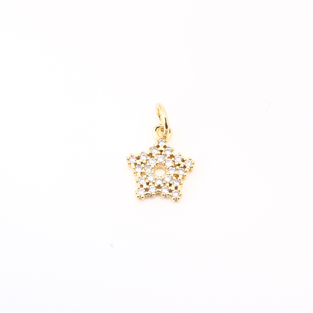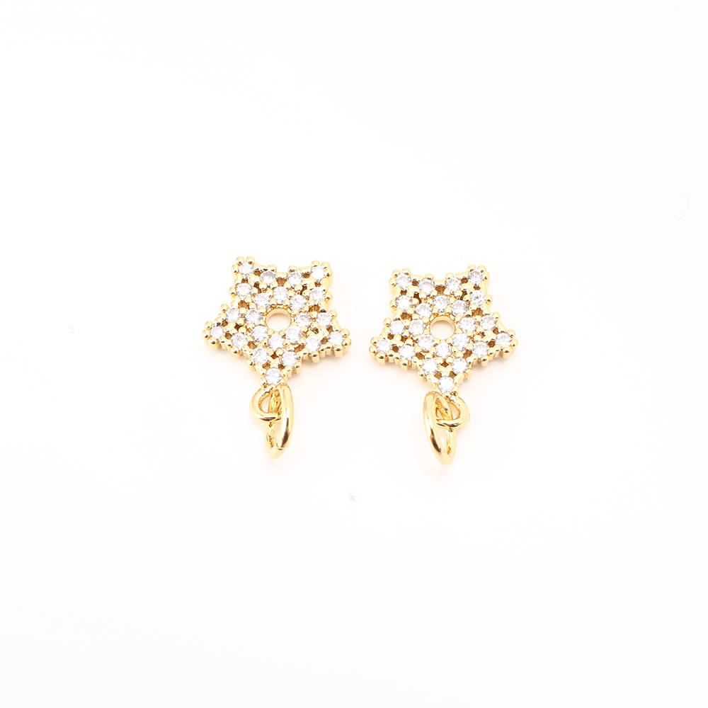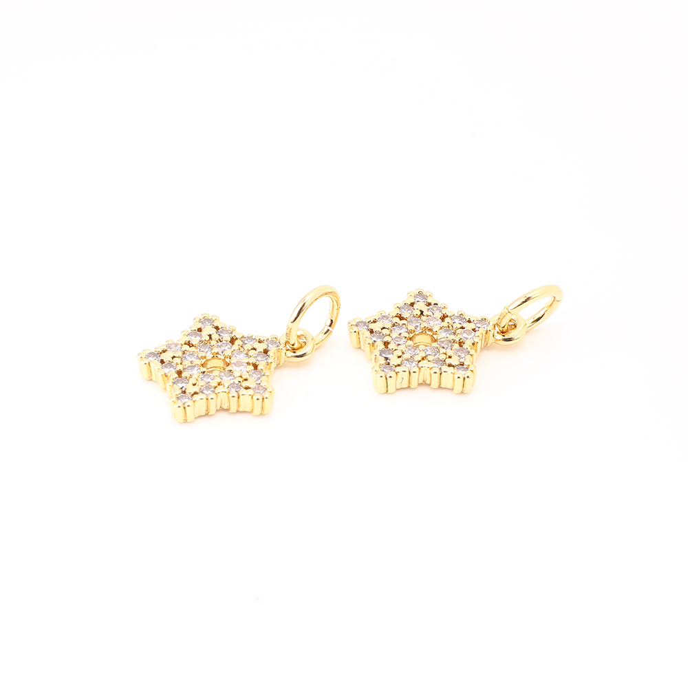 Cubique Pendentif en laiton zircon pavent, étoile, DIY & pavé de micro zircon & creux, Or, 12x10x2mm, Vendu par PC